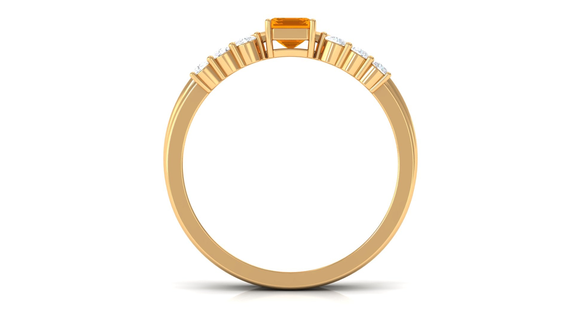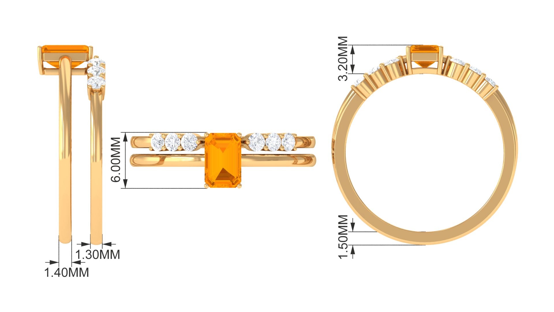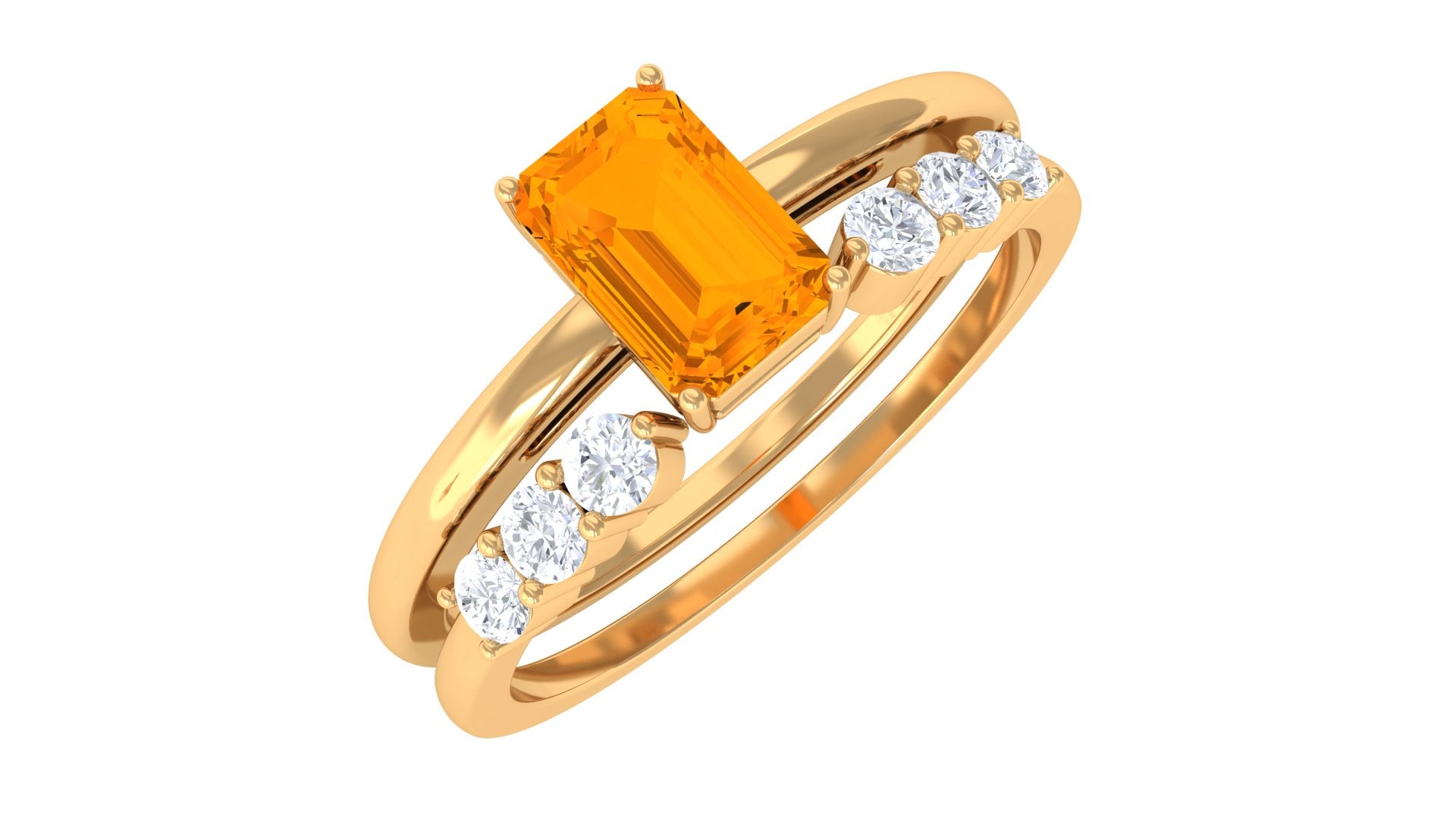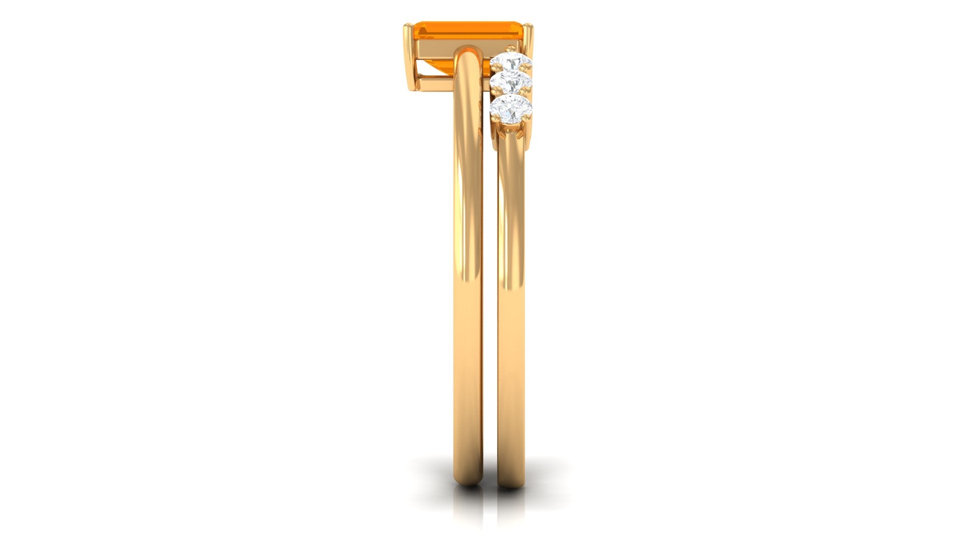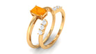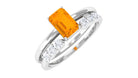 She will always love this minimal Ring Set with an Open Cuff Band studded with Diamond and Emerald Cut Fire Opal as Solitaire in Prong Setting.