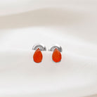 Real Fire Opal Solitaire Teardrop Stud Earrings