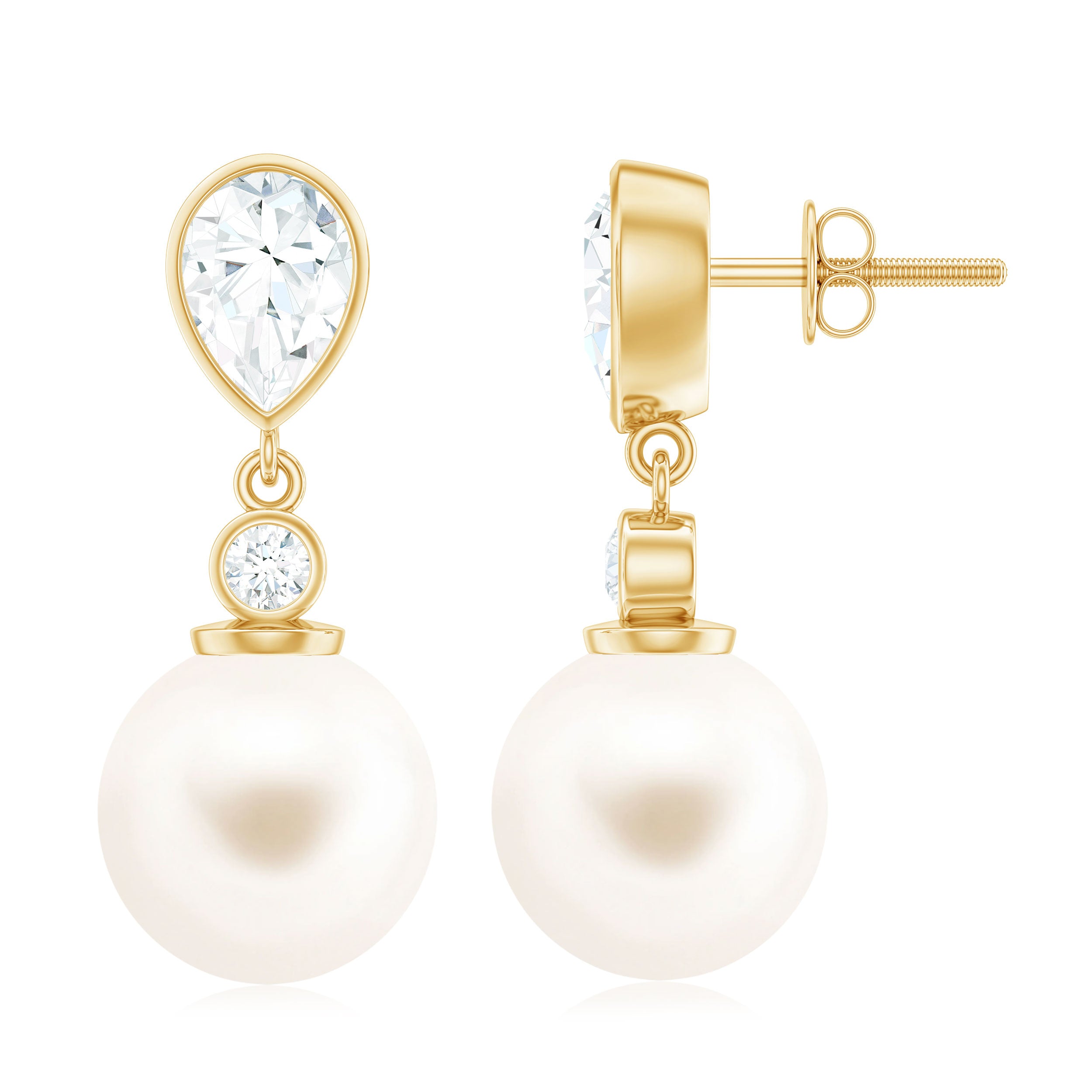 Radiate elegance with Handpicked Freshwater Pearl Drop earrings, adorned with a pear-cut Moissanite gemstone for timeless beauty.