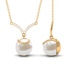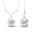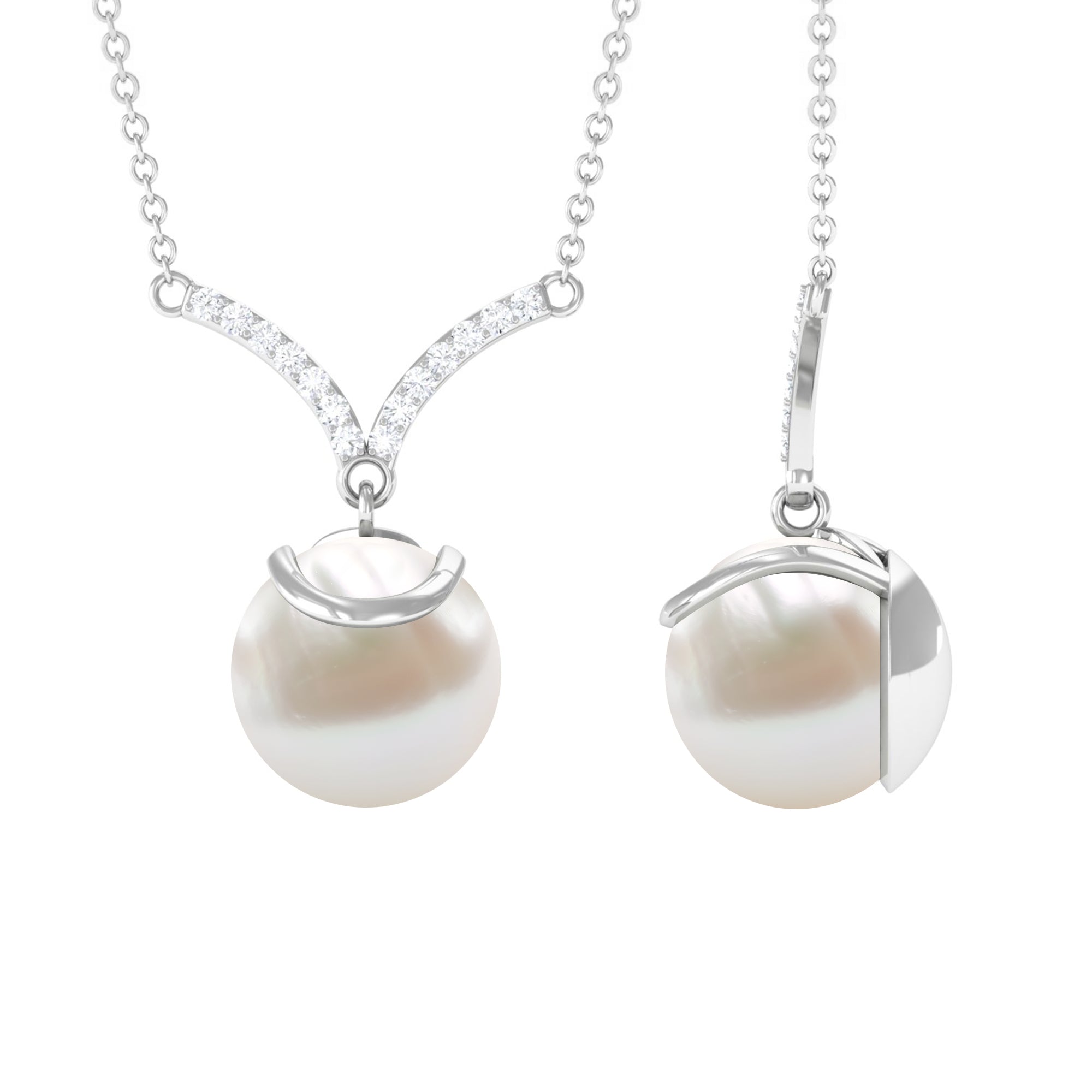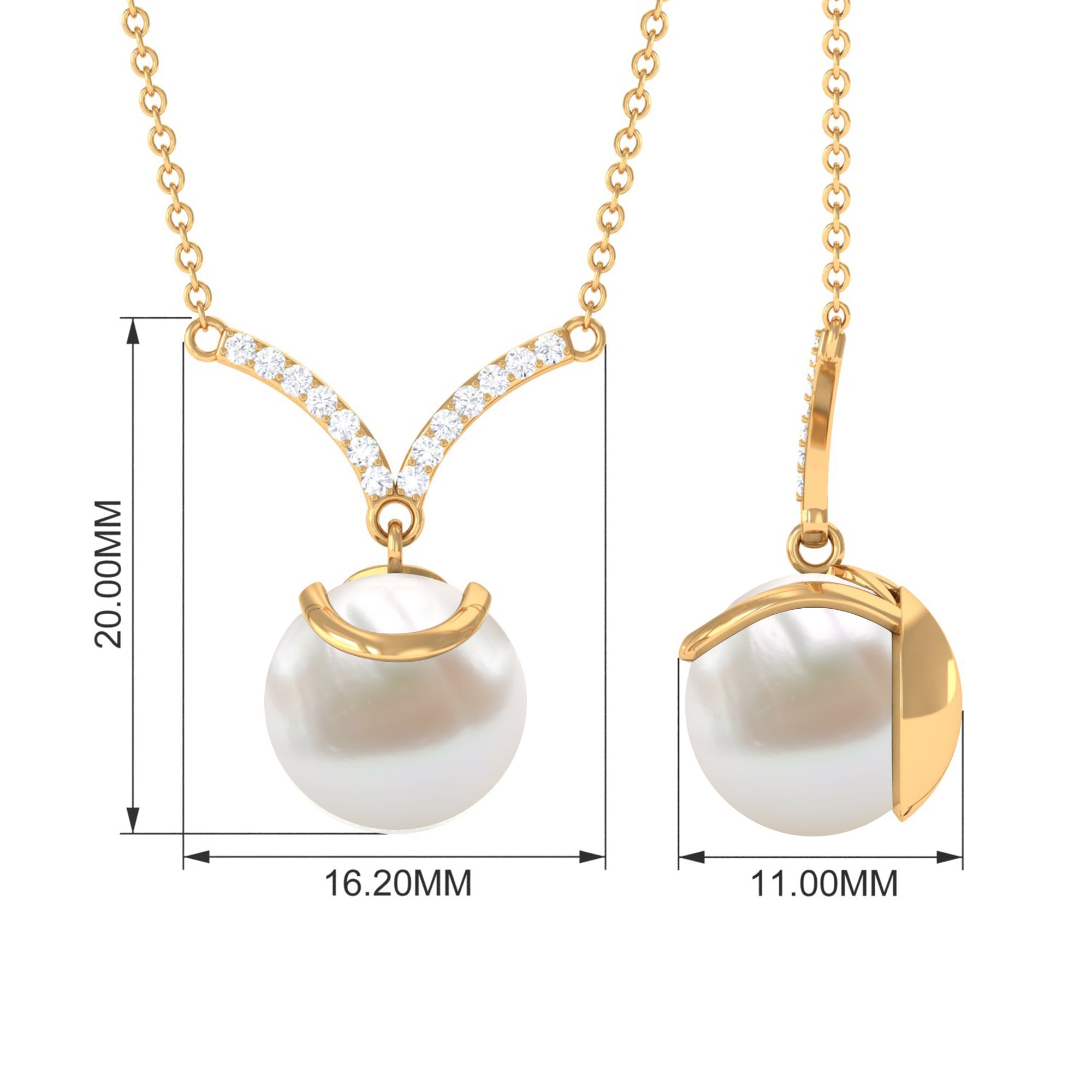 This elegant Drop Necklace is embellished with Round Shape Freshwater Pearl and dainty Round Diamonds studded on a V shape design, composed of Hallmarked Metal. Grab this unique Pearl Pendant Necklace for your special ones as a Birthday Gift, Graduation Gift, Anniversary Gift, or Bridesmaid Gift.