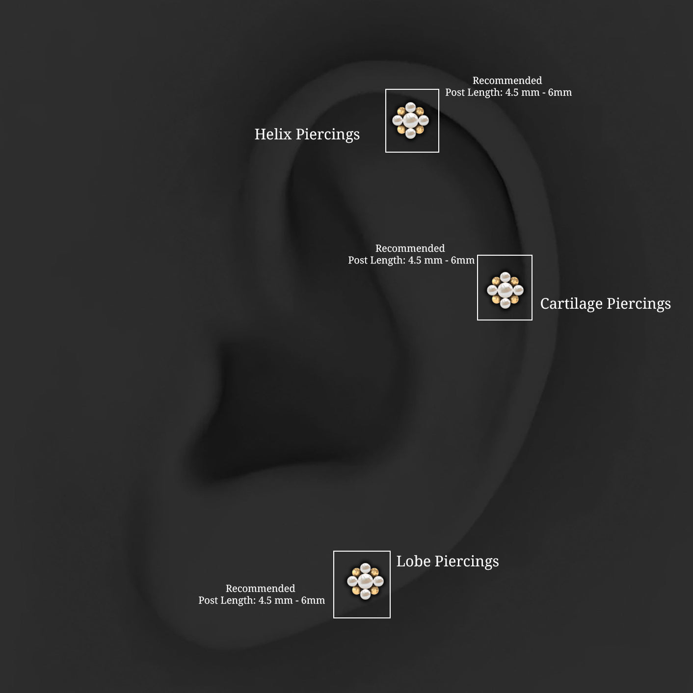 If youre in search of a sophisticated earring that adds a hint of floral beauty to your appearance, our Freshwater Pearl Flower Earring is a perfect choice. This lovely piece features a Round Shape Freshwater Pearl and Gold Beads arranged in a Floral Design, adding a touch of elegance to any outfit. Crafted in Gold, this Floral Earring is suitable for Helix, Cartilage, Conch, or Upper Lobe Piercings, making it versatile for any occasion.