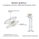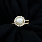 Real Freshwater Pearl Halo Wedding Ring Set with Plain Band