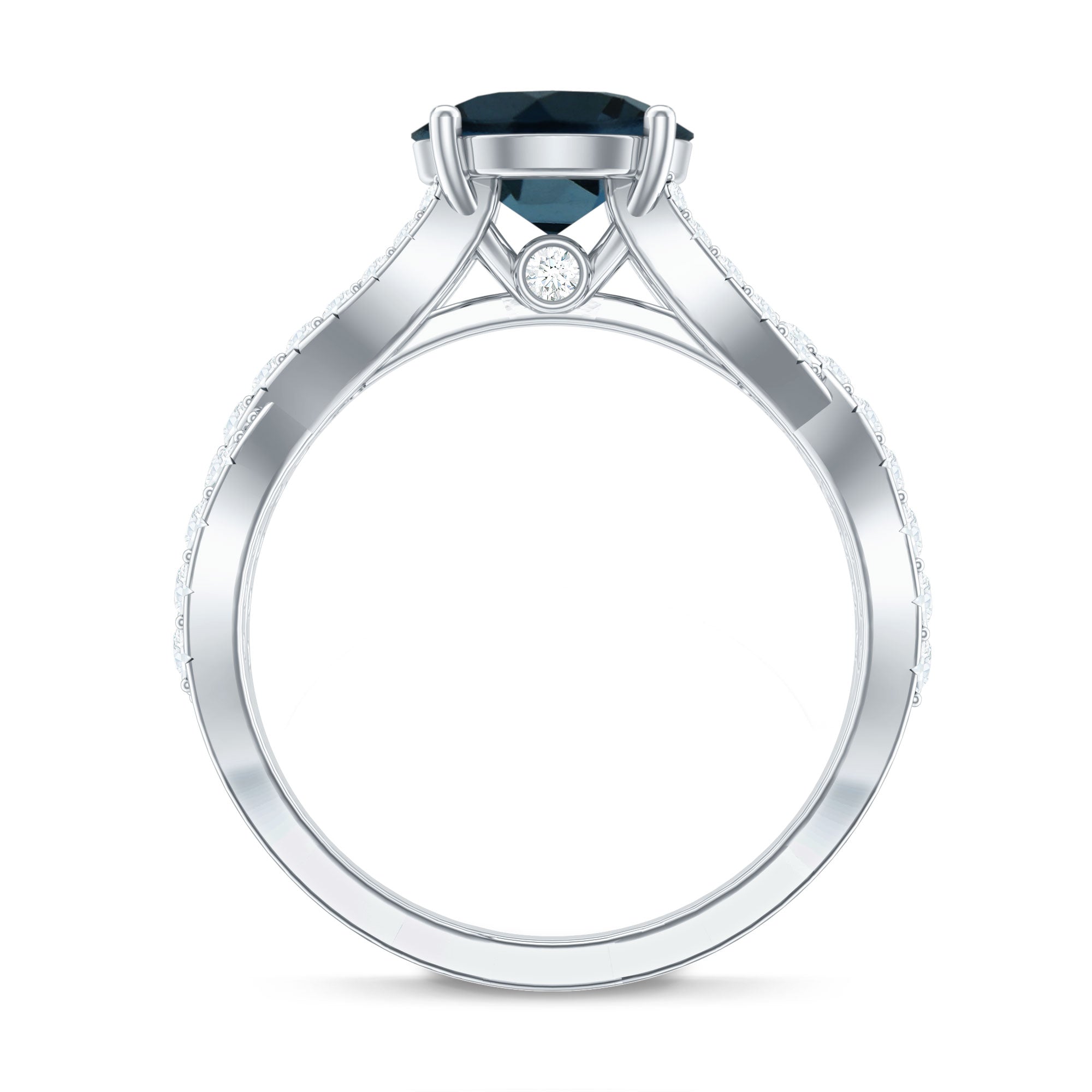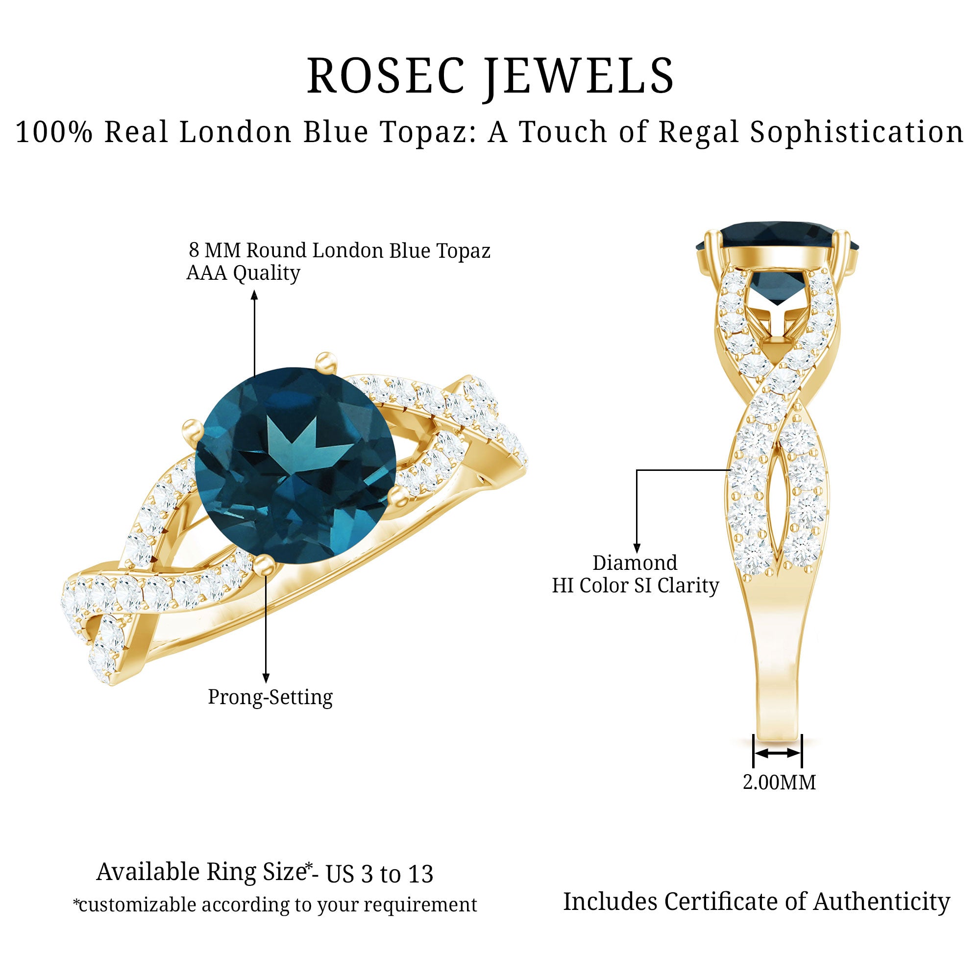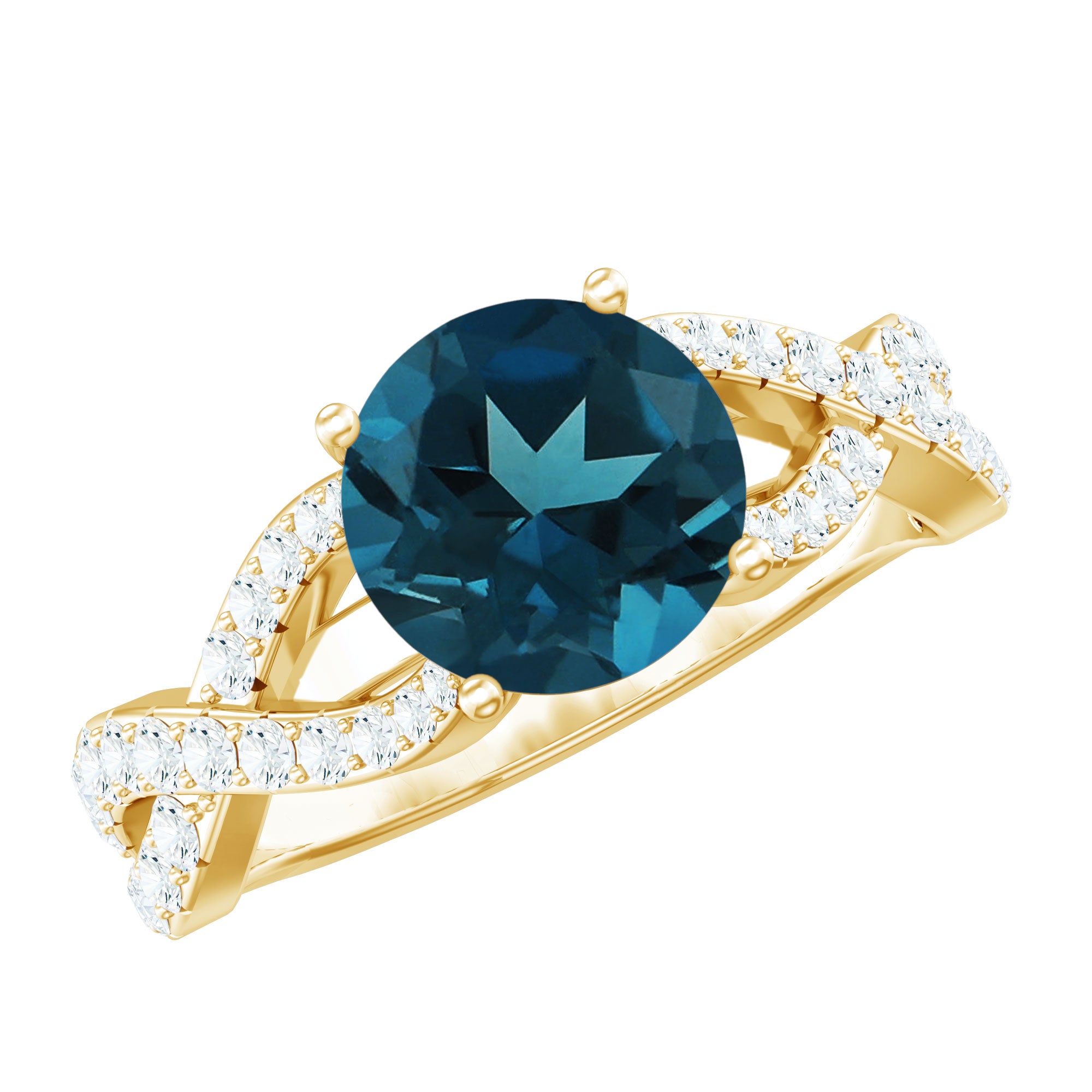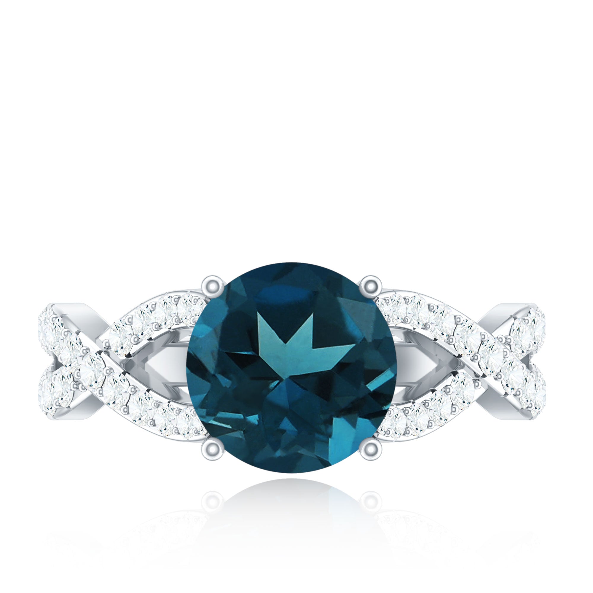 Real London Blue Topaz Crossover Engagement Ring with Diamond