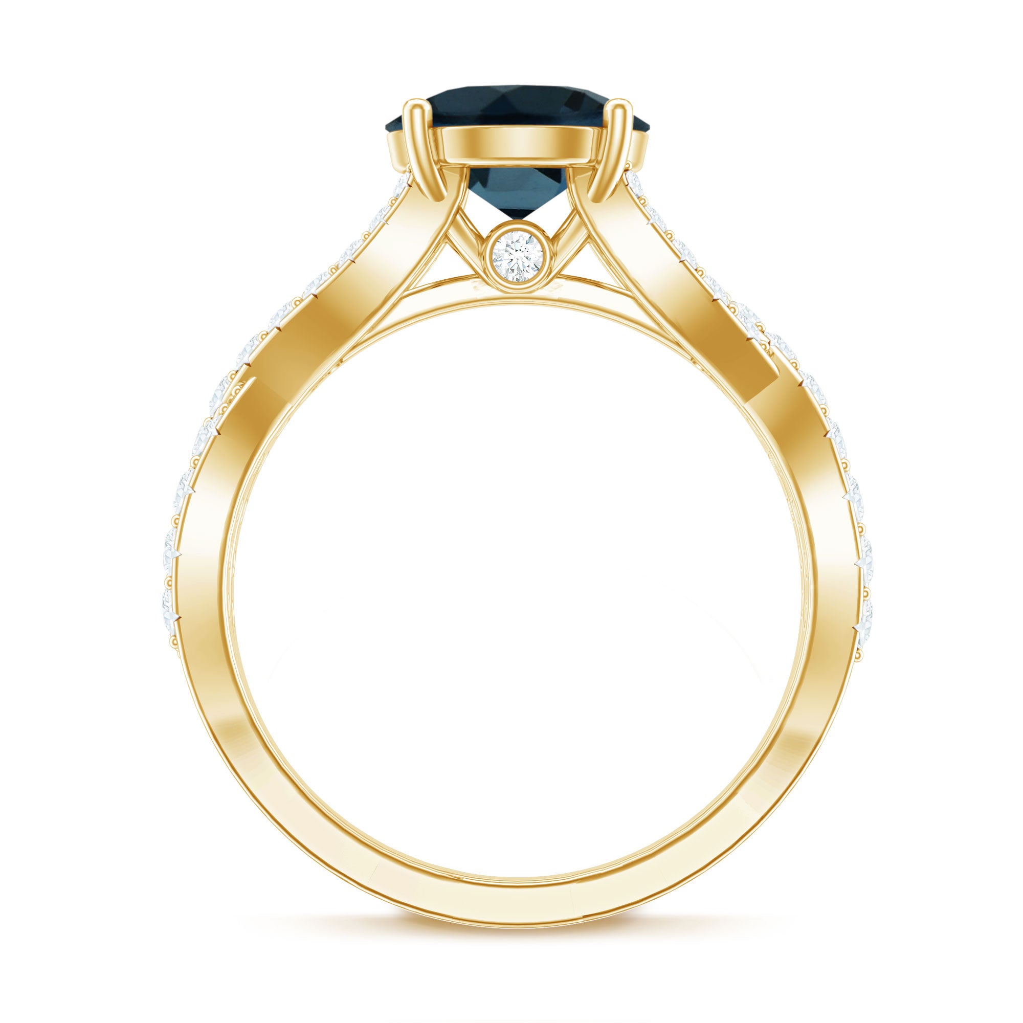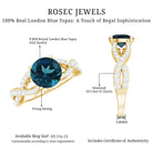 This elegant and meaningful London Blue Topaz Engagement Ring is a piece that is full of style, sparkle, and sentiment. Made for someone who loves timeless beauty with a fresh twist, this Solitaire Engagement Ring features a gorgeous 8 MM round shaped London Blue Topaz in the center set in prong setting. The band has a crossover design, symbolizing two paths becoming one. Tiny round diamonds are set along the curves, adding just the right amount of shimmer. It is a design that feels romantic and modern all at once. And there is a little hidden detail too, a small peek-a-boo diamond is placed just below the center stone, like a secret only the wearer knows about. Crafted with care using AAA quality london blue topaz and HI-SI quality diamonds, this Crossover Engagement Ring is made to last and look amazing for years to come. The smooth band makes it comfortable to wear every day, but the sparkle makes it just right for big moments, too. Whether you are planning to wear it on formal events or on casual outings, this London Blue Topaz and Diamond Ring fits in every moment. It is a beautiful reminder of love, unity, and the journey you are about to take together, one that she will treasure every time she looks at her hand.