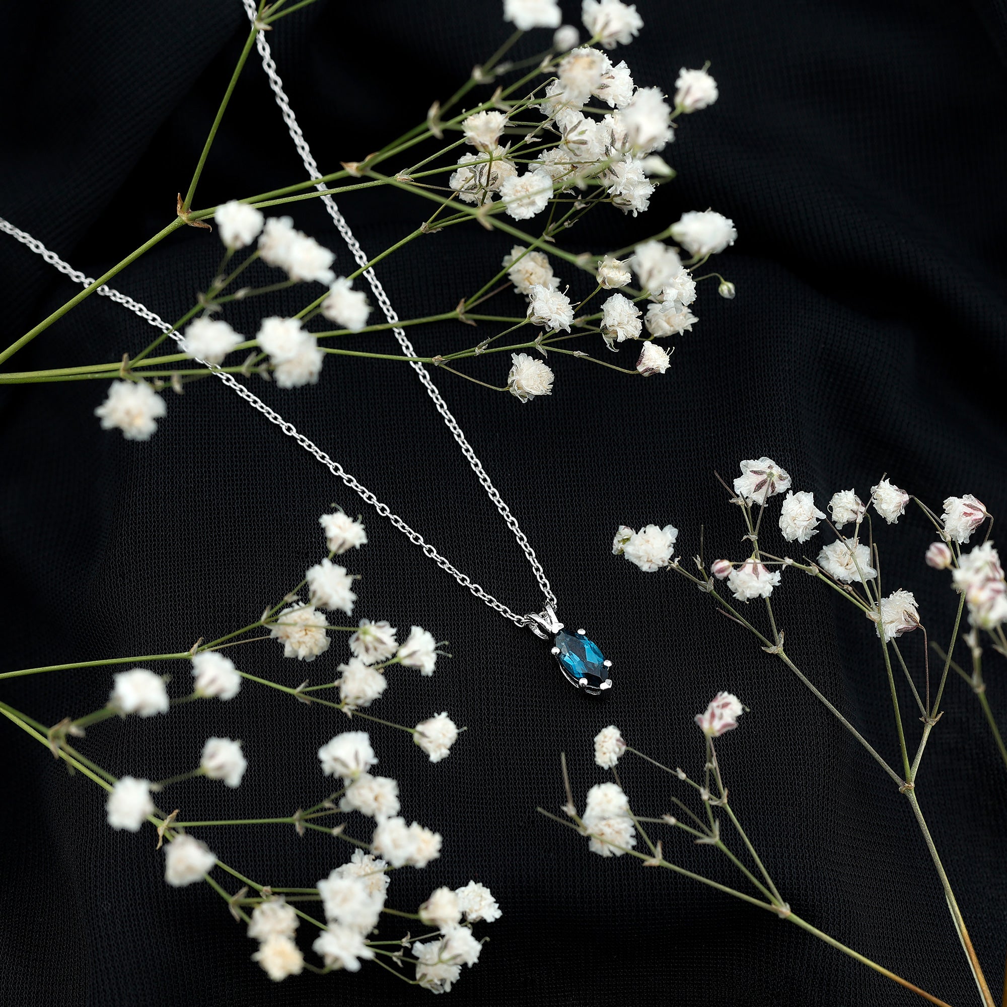 Real London Blue Topaz Marquise Necklace With Silver Chain