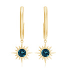 Real London Blue Topaz Sunburst Hoop Drop Earrings for Women