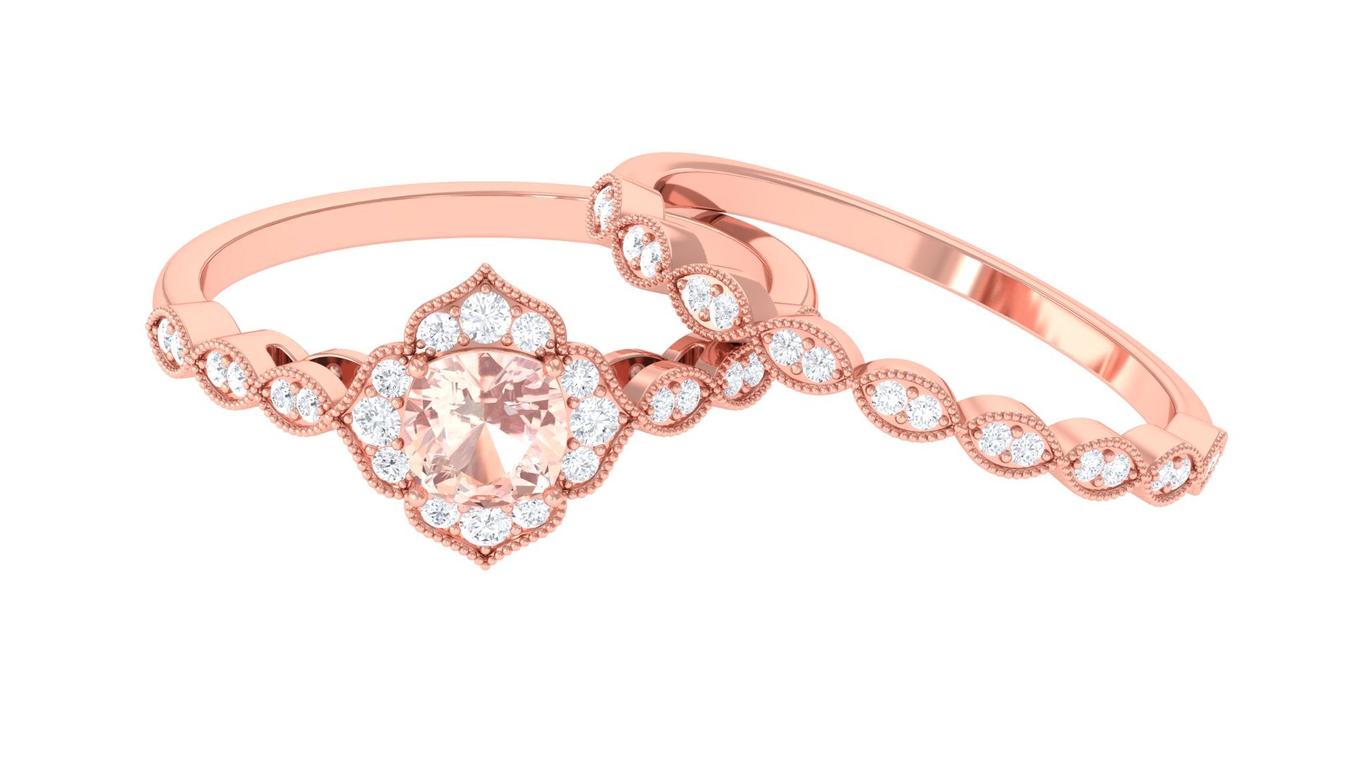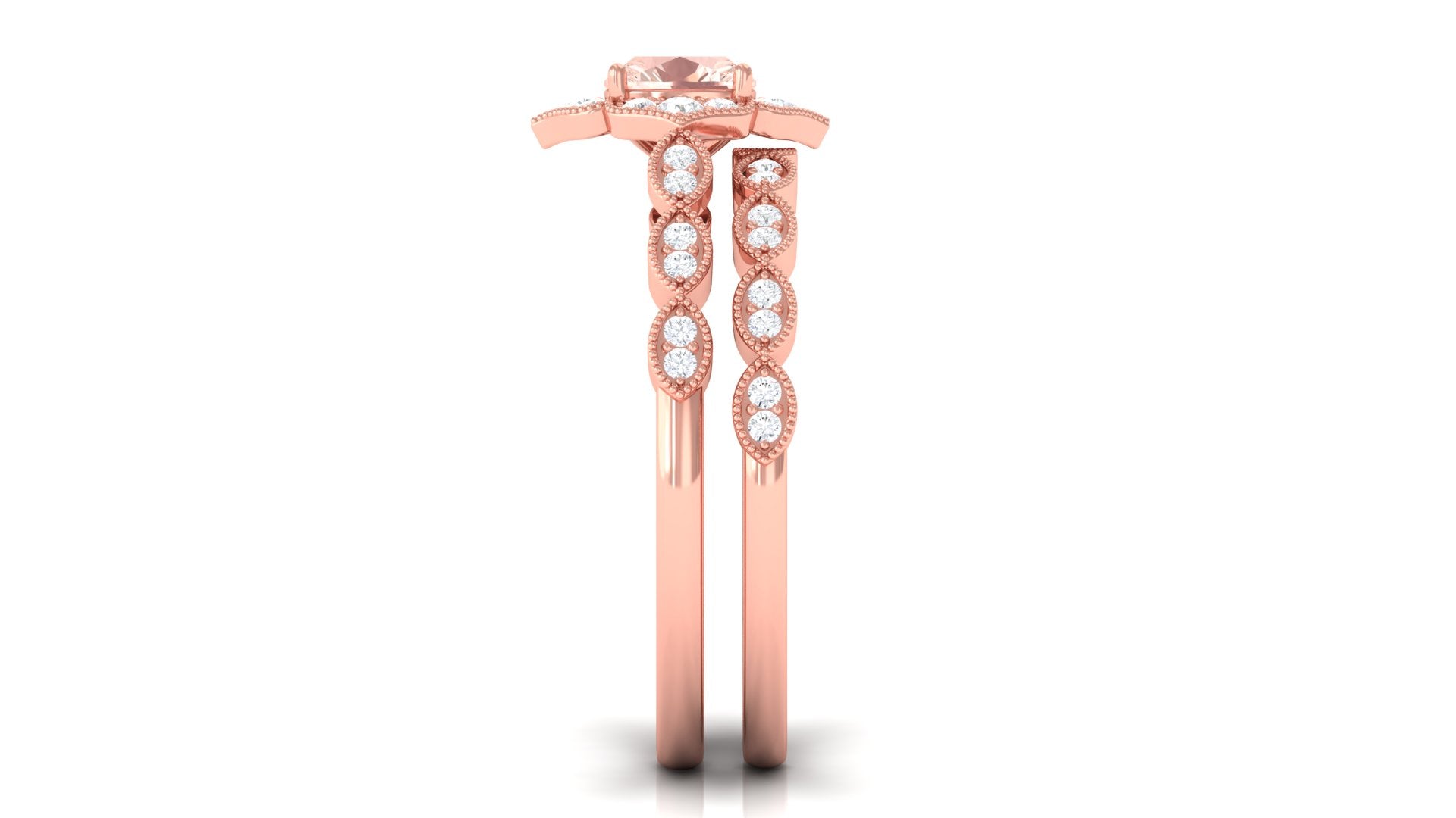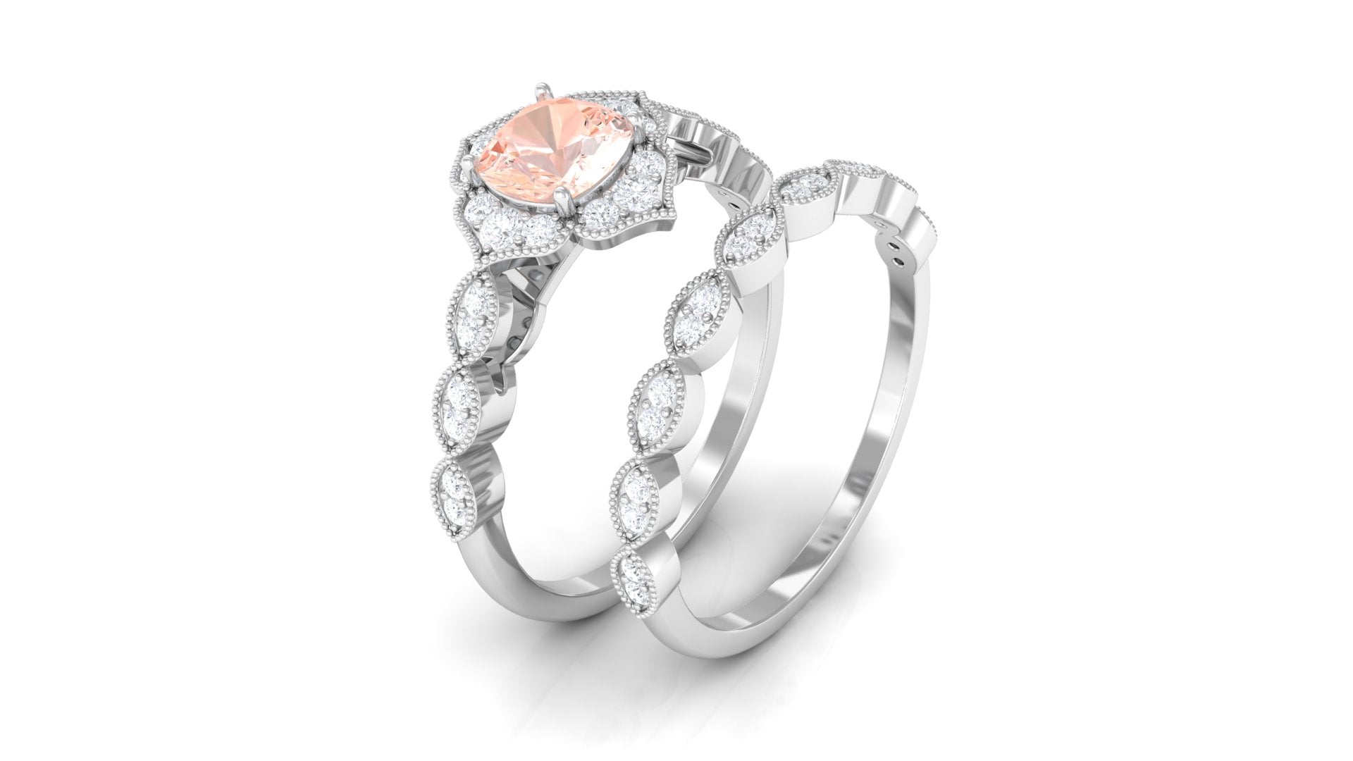 Radiate beauty with this Morganite Floral Ring Set, embellished with sparkling Diamond, a captivating celebration of natures charm and divine allure.