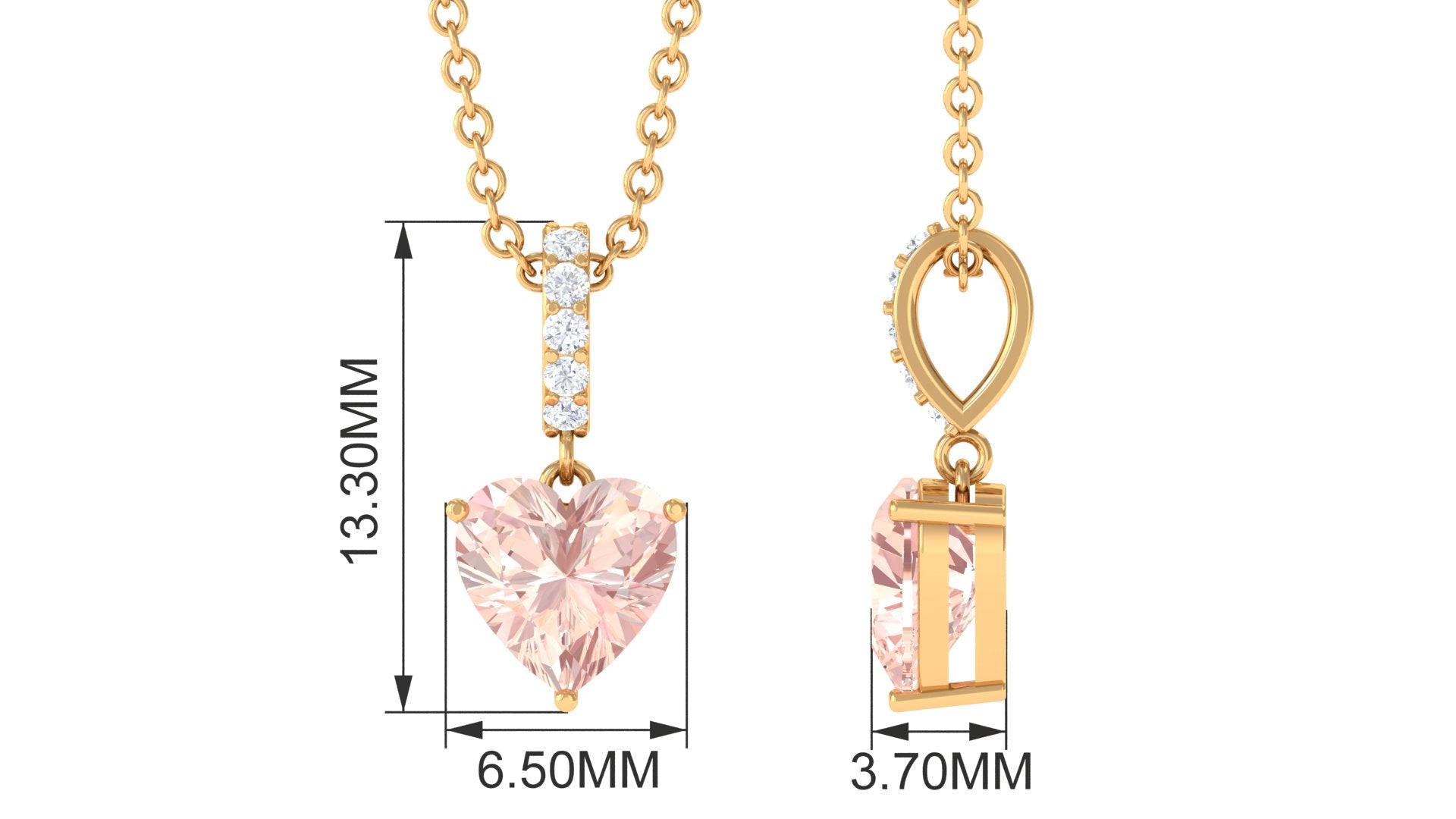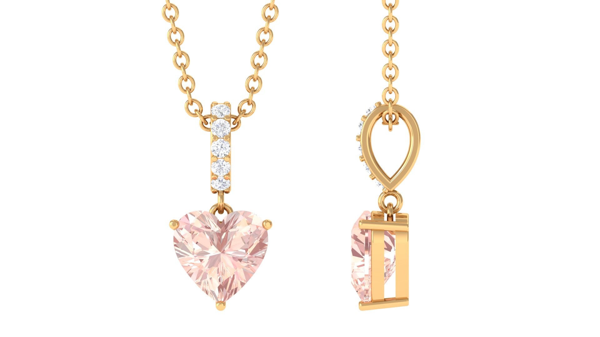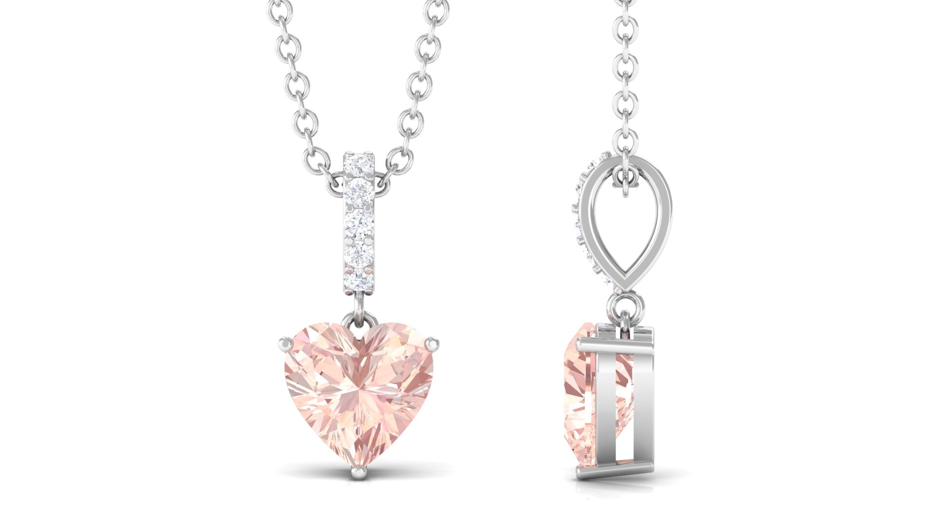 Get this Heart Pendant Necklace for your loved ones as it is embellished with Heart Shape Morganite secured in 3 Prong Setting while dainty Round Diamonds studded on the bail of the pendant. Flaunt this Morganite Pendant Necklace with your casual or dressy attire for an enchanting look.