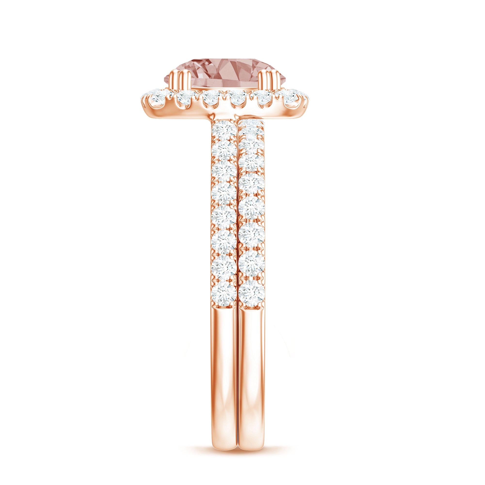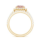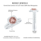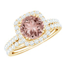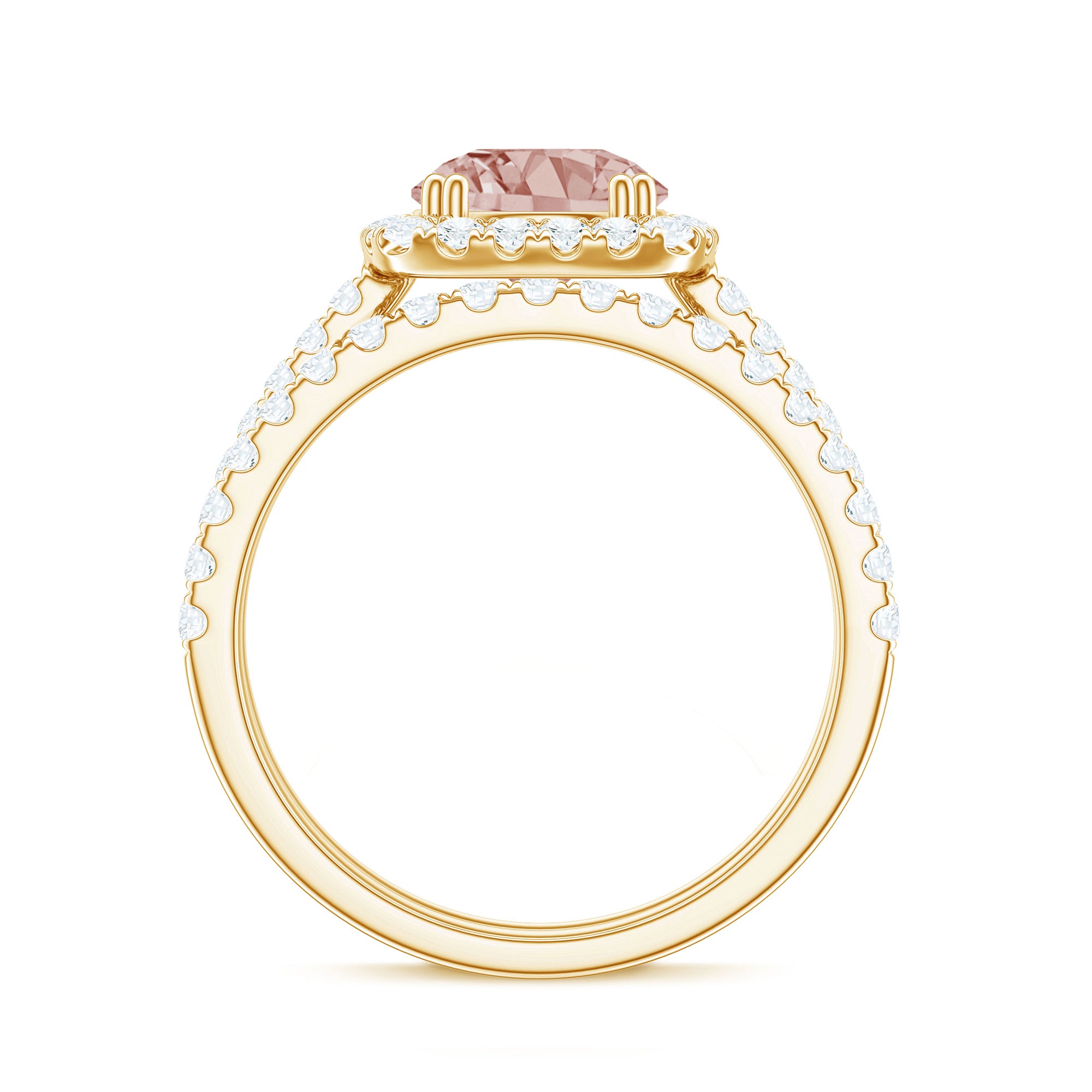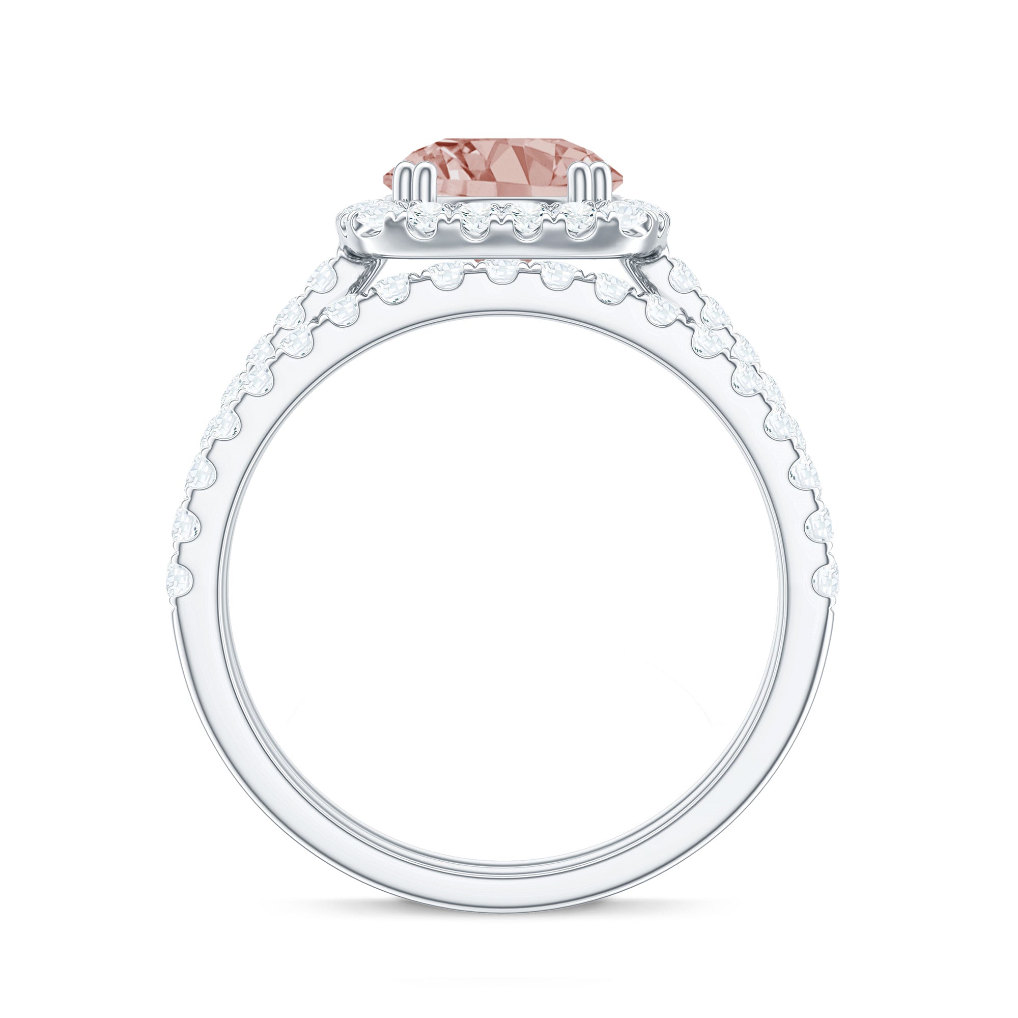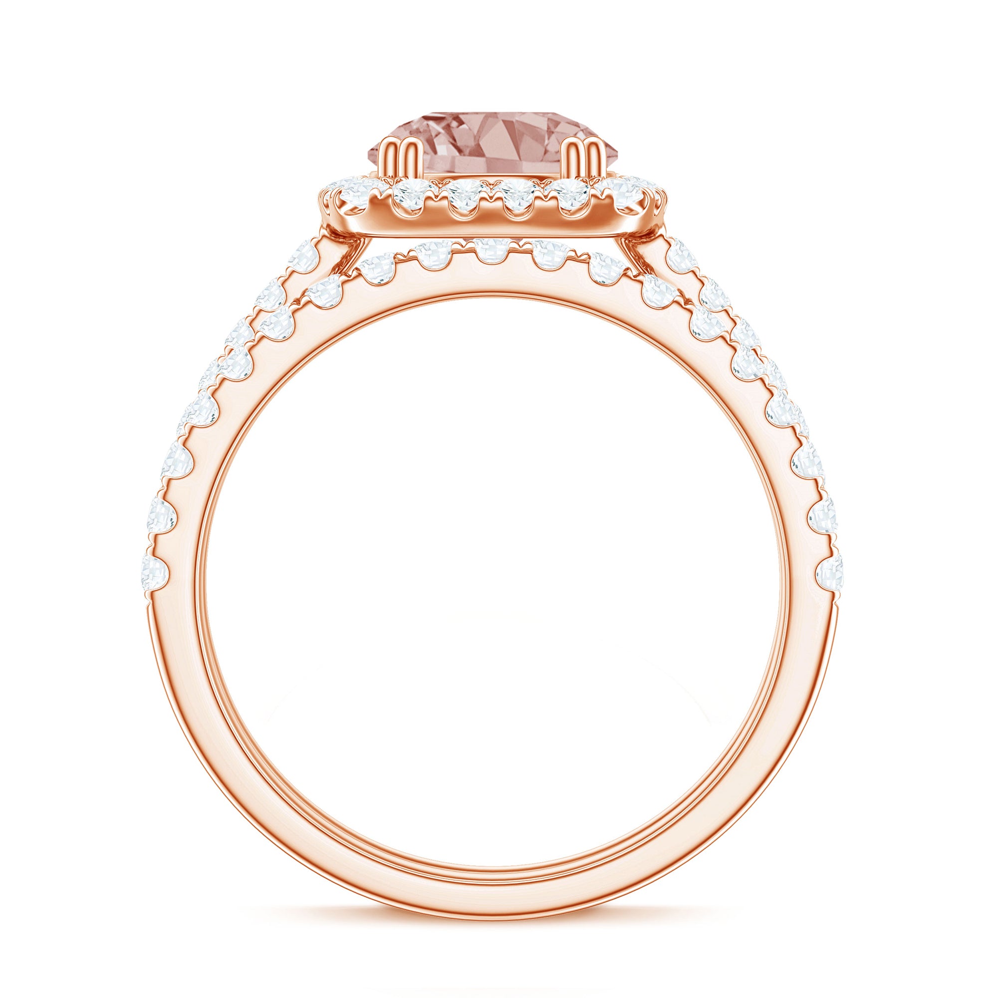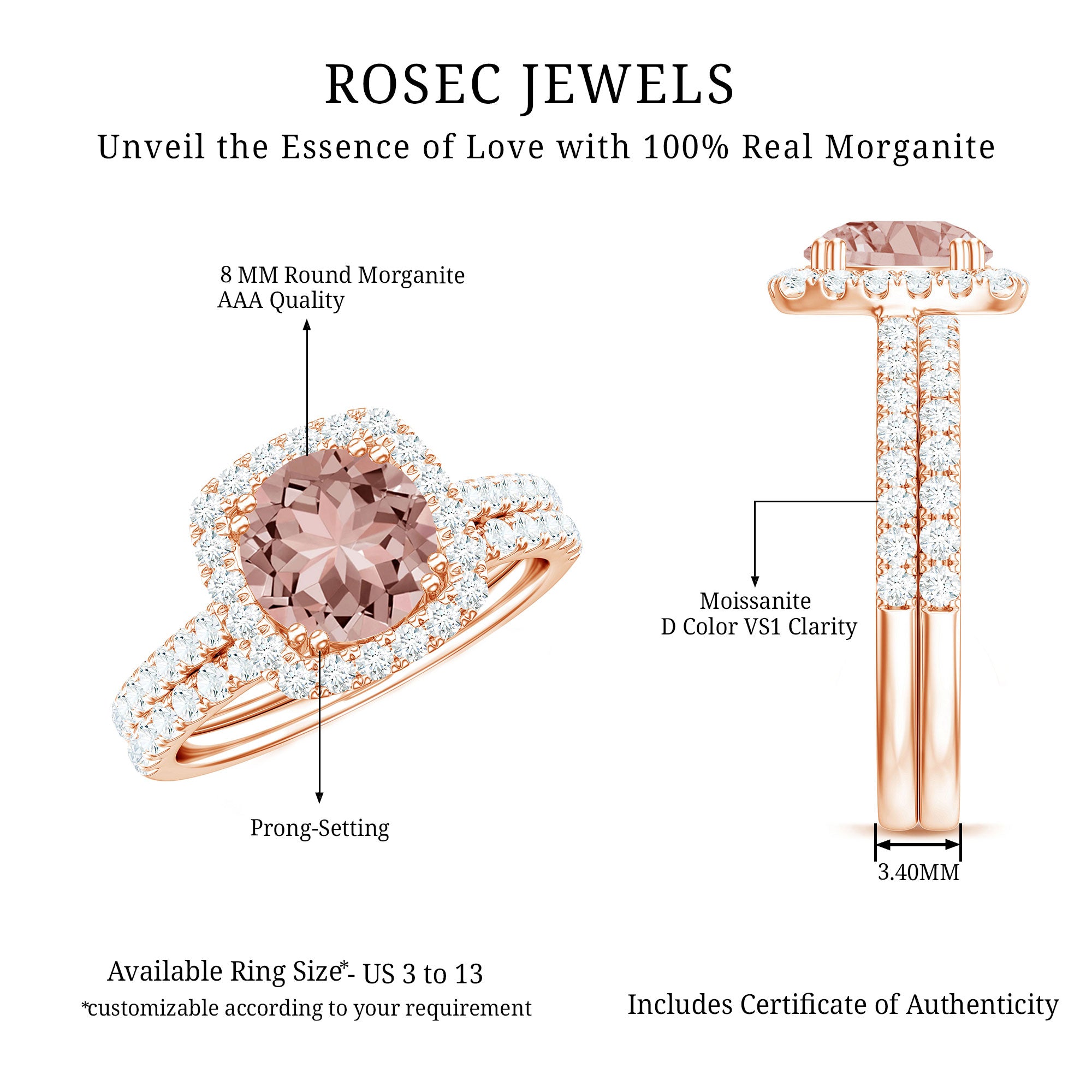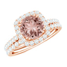Real Morganite Wedding Ring Set with Moissanite Halo