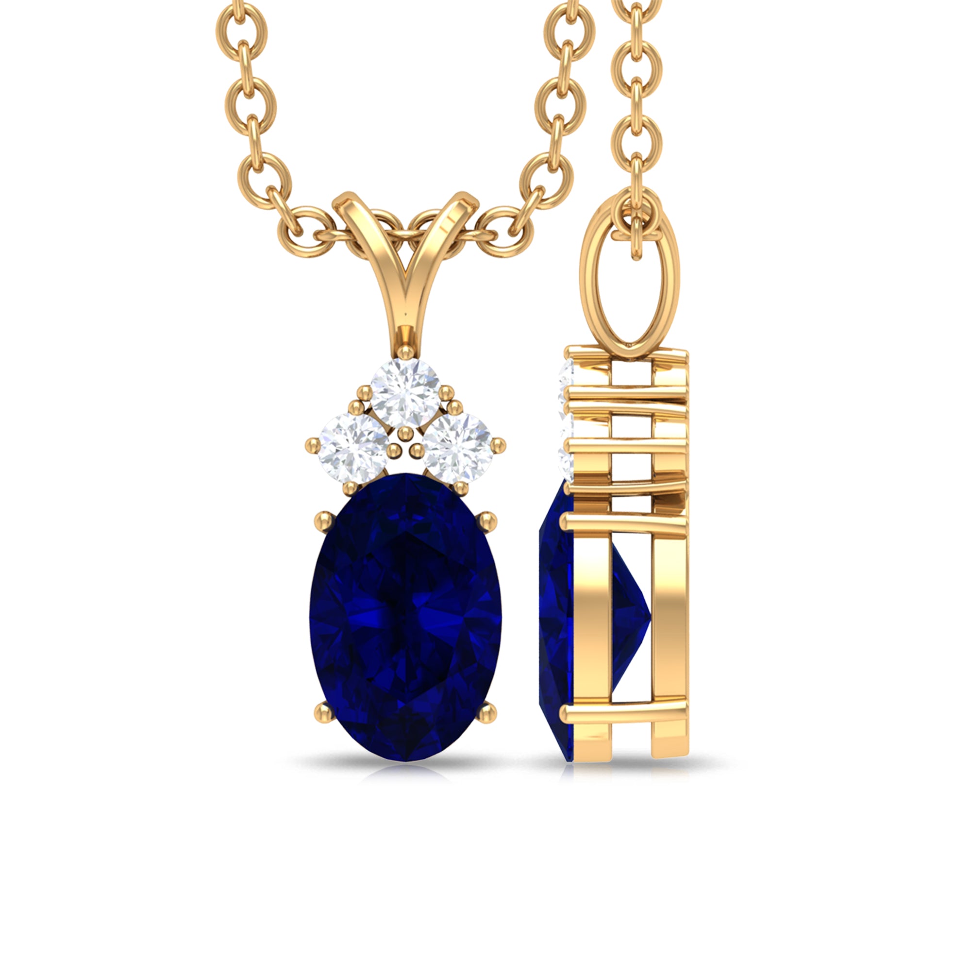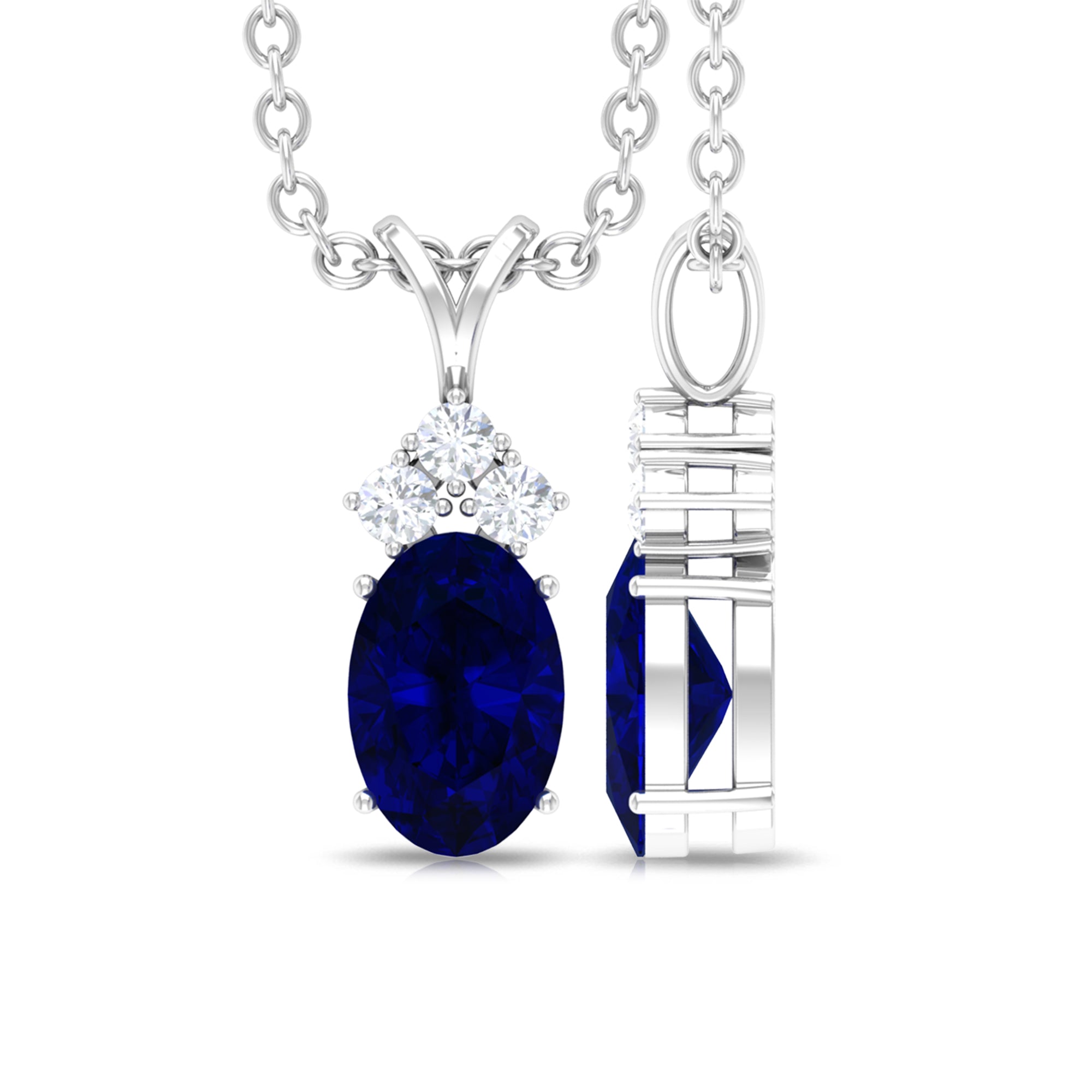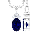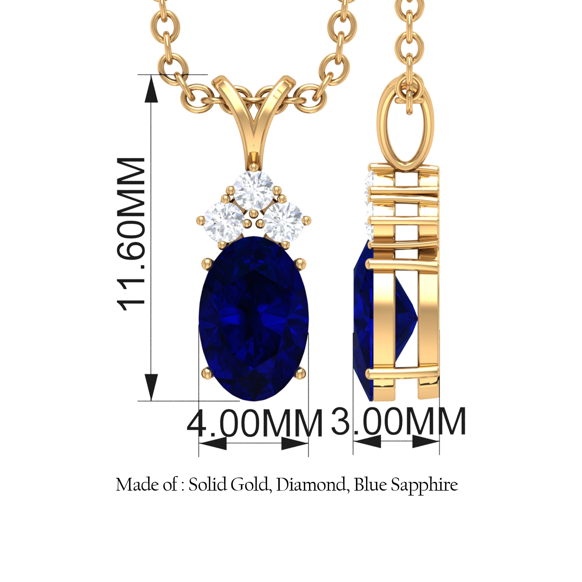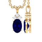 Real Oval Cut Blue Sapphire Necklace with Diamond Trio