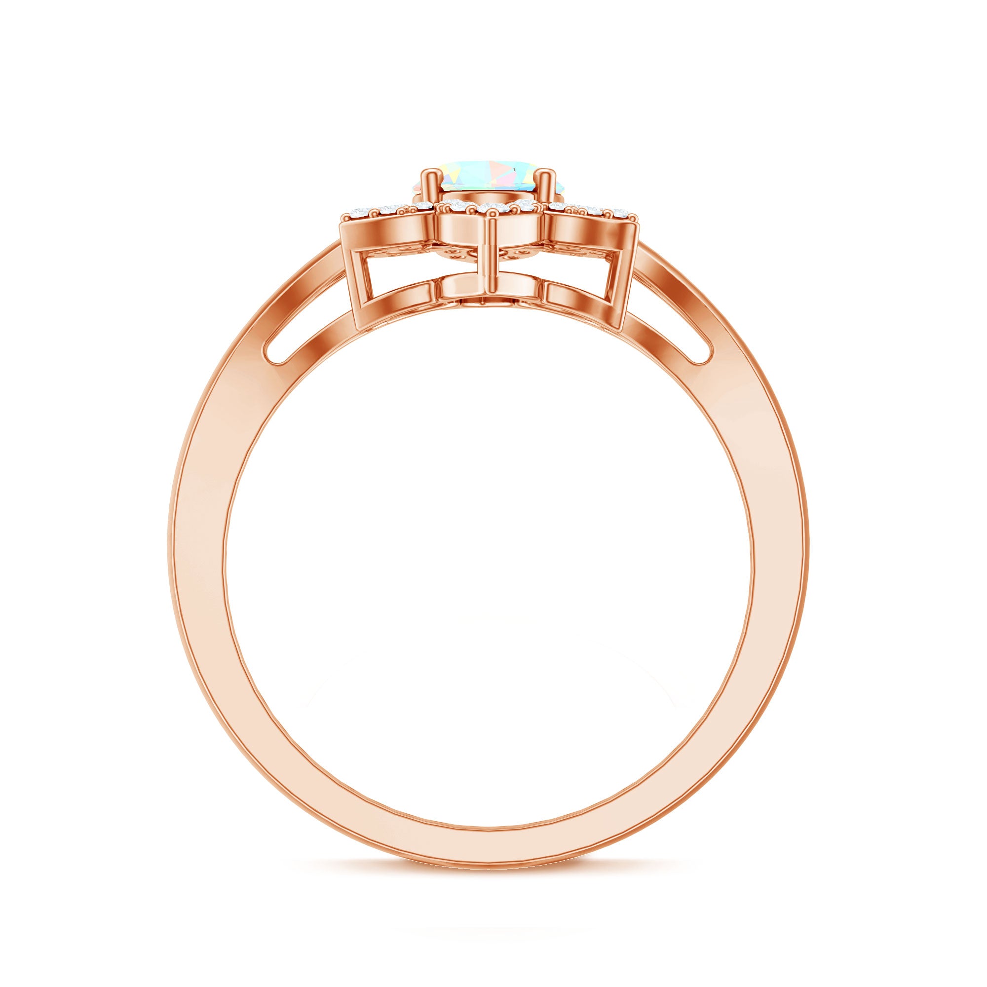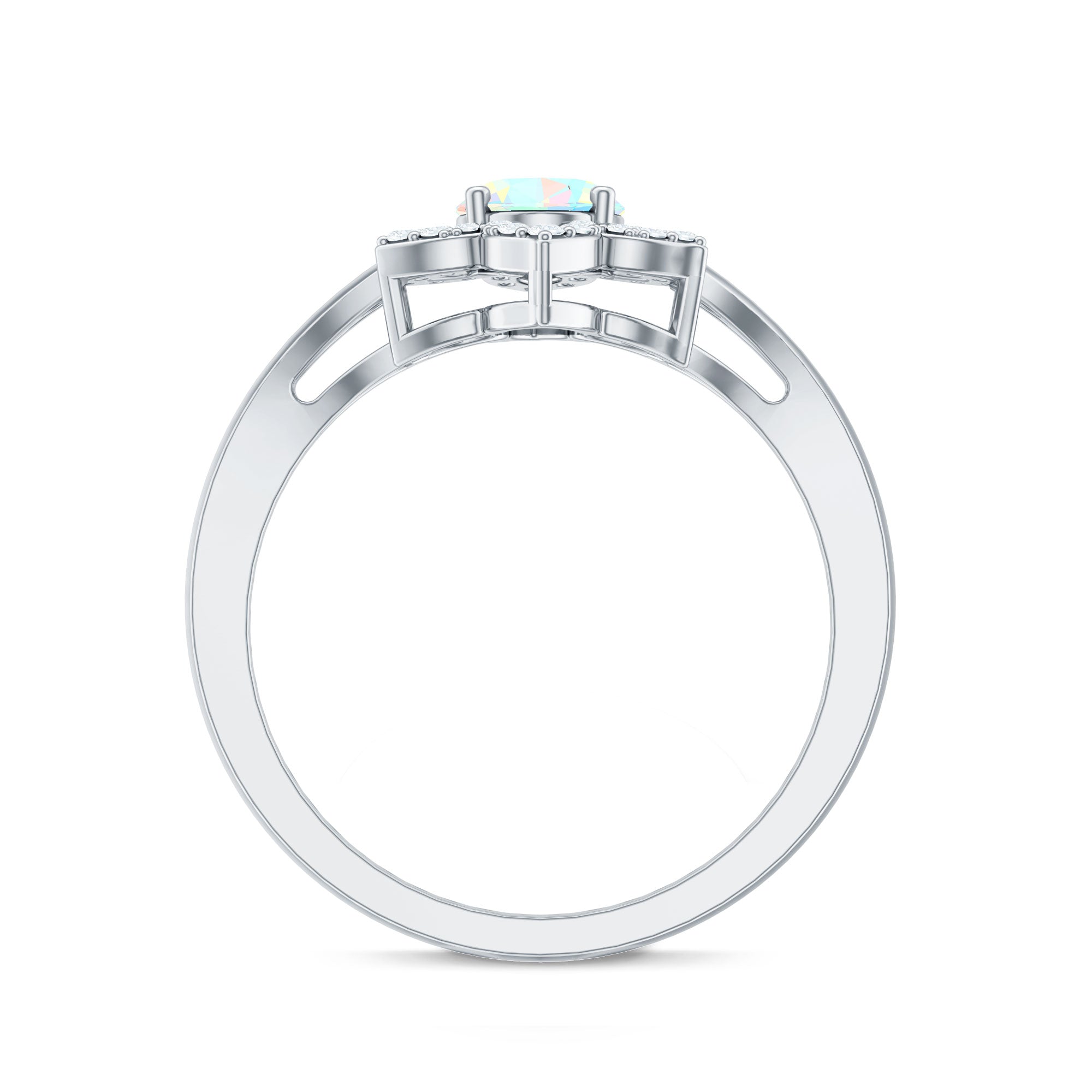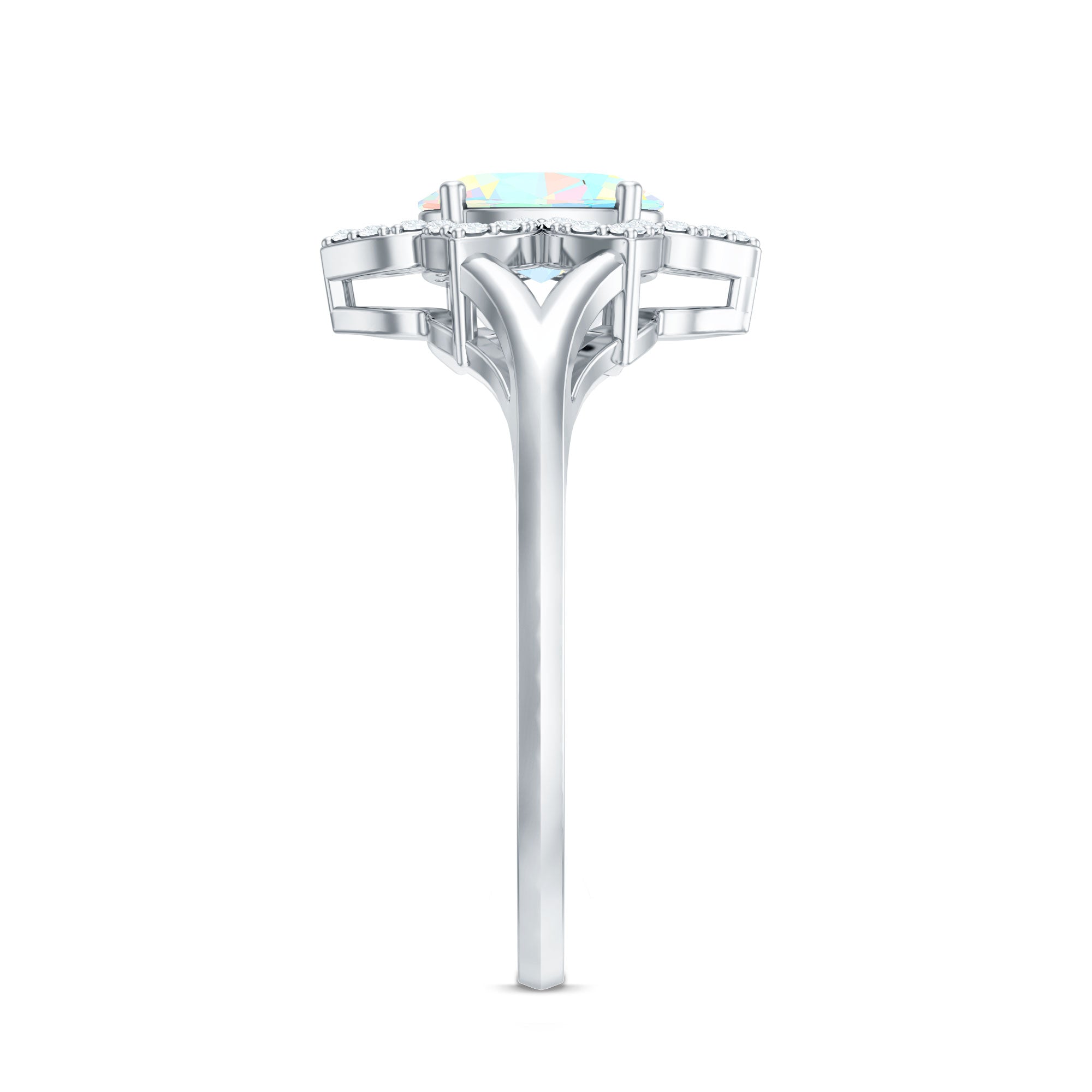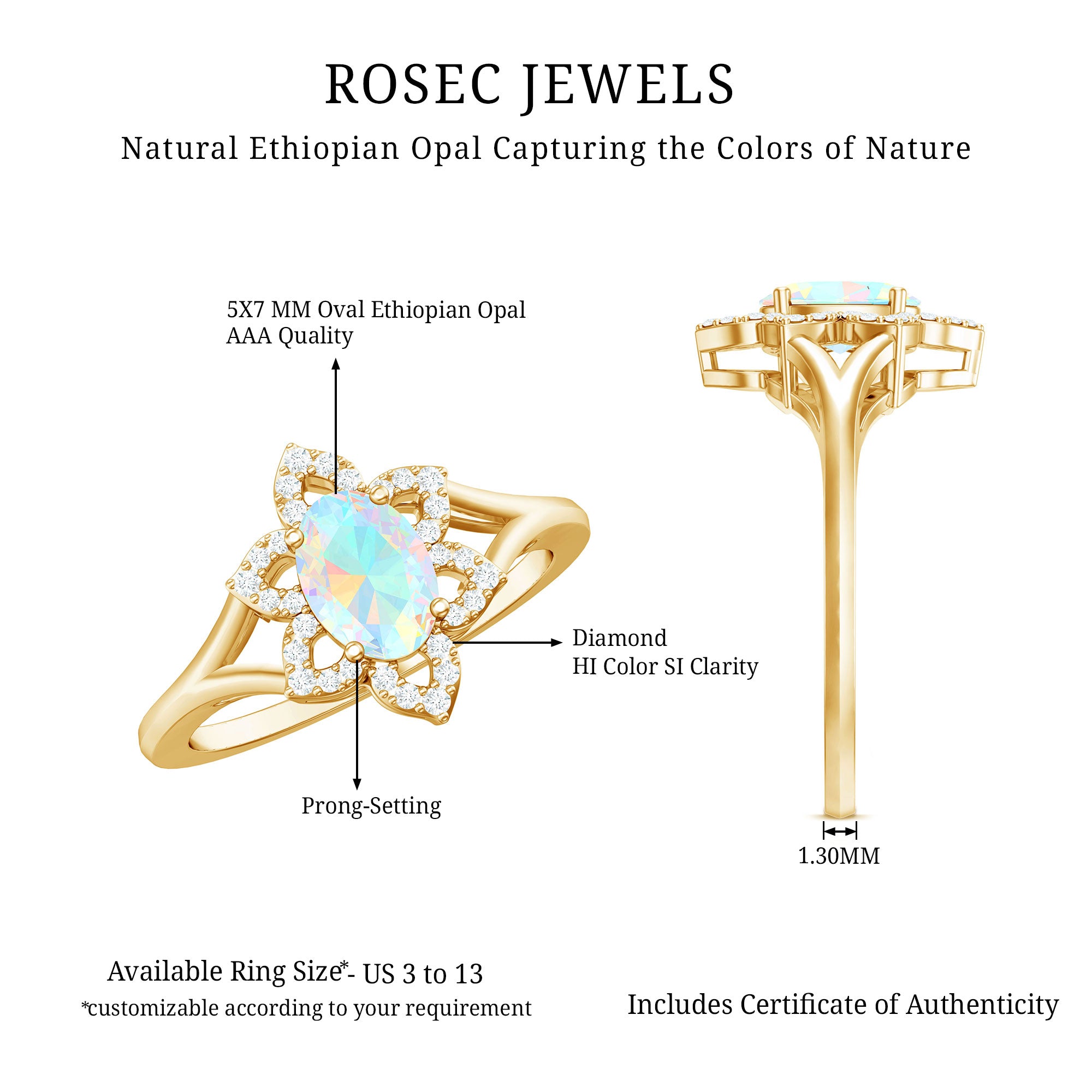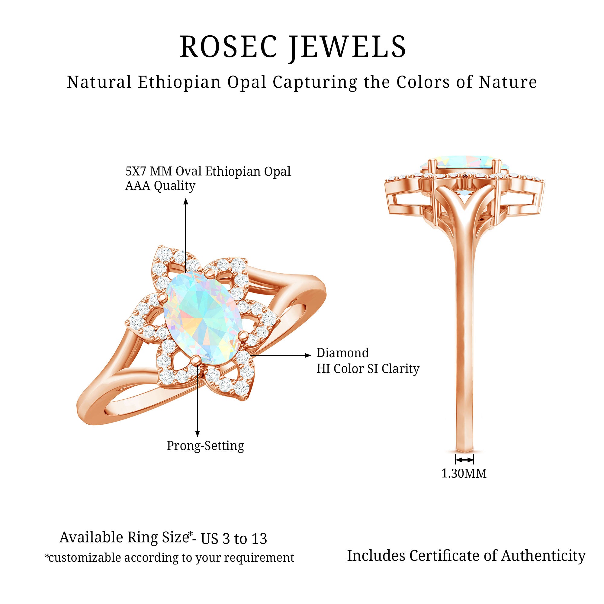 Real Oval Ethiopian Opal Diamond Flower Engagement Ring with Split Shank