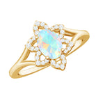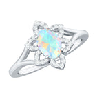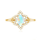 Create a fairy tale moment with this Flower Engagement Ring, a piece that captures the magic of love in full bloom. At its center glows an ethereal 5X7 mm Oval Shape Ethiopian Opal set in Prong Setting, surrounded by sparkling Diamond petals. The Split Shank band gracefully wraps around the finger, symbolizing two lives intertwining into one beautiful journey. The Oval Shape of the Opal, paired with the floral motif, creates a soft, romantic design that instantly enhances the elegance of the hand. The Split Shank design adds a touch of modern artistry while making the finger appear longer and more slender. This Opal Diamond Engagement Ring is a symbol of love that grows and blossoms with time. Thoughtfully crafted and presented in a signature jewelry box, this Split Shank Engagement Ring with Opal comes in a range of sizes for a perfect fit. Whether you are proposing or celebrating a once-in-a-lifetime moment, this Opal Flower Ring with Engagement is a radiant promise of forever.