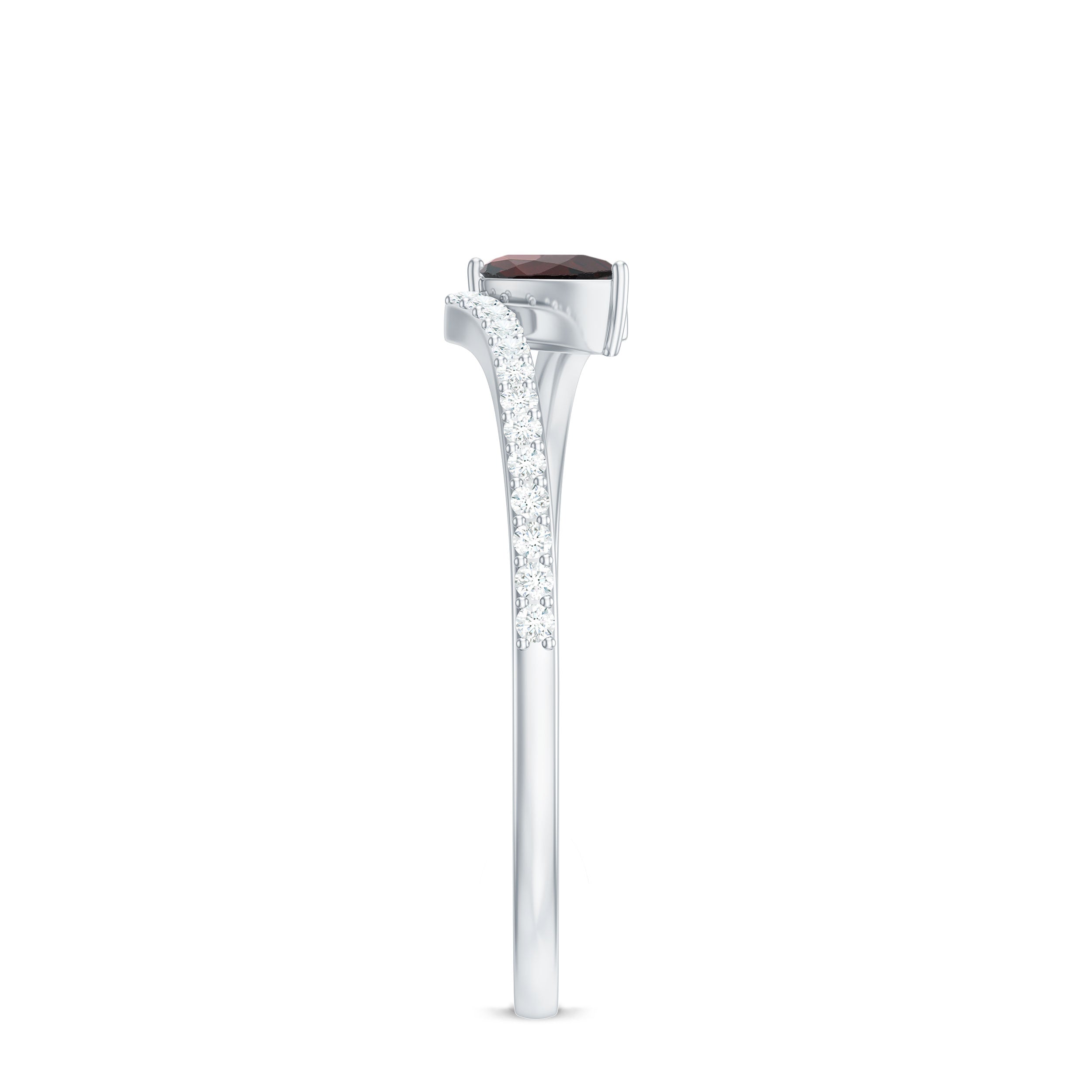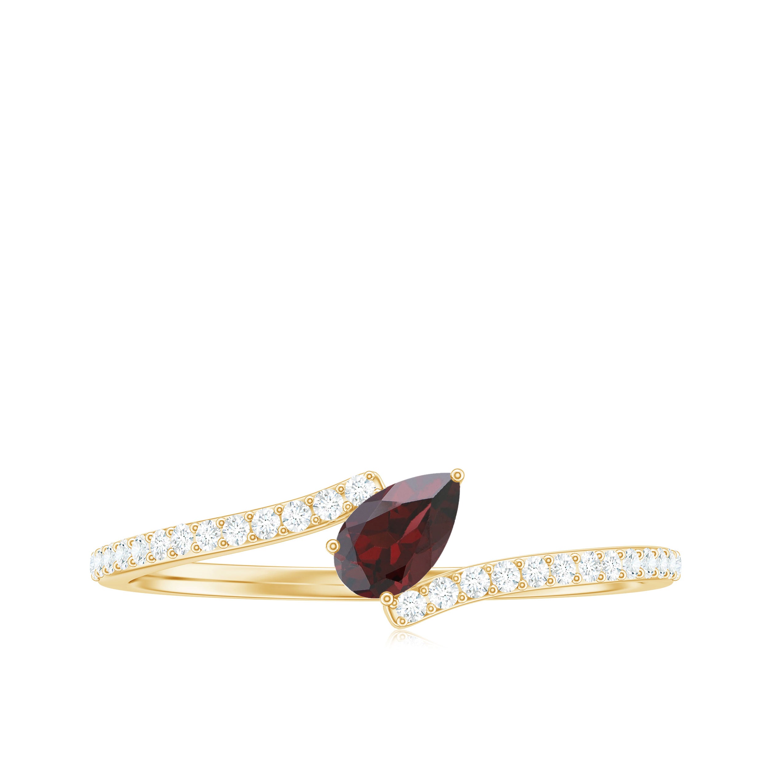 Real Pear Shape Garnet Promise Ring with Diamond Bypass Shank