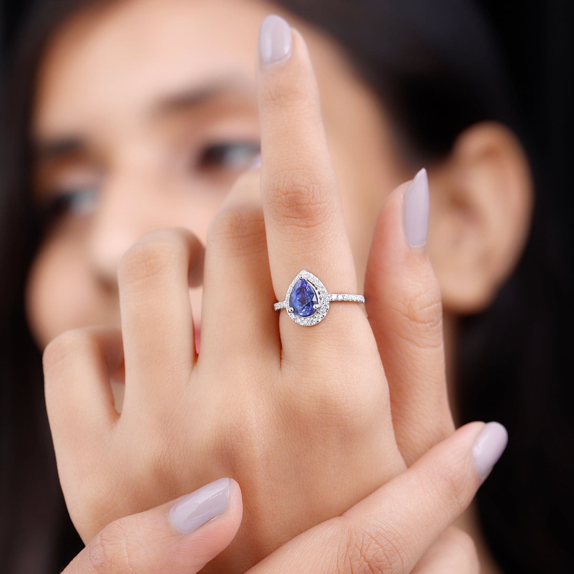 Make her heart flutter with a ring that feels like a love story written just for her. This Tanzanite Engagement Ring captures romance in its purest form, glowing with a mesmerizing 5X7 mm Pear Shape Tanzanite at its center in 3 Prong Setting. The soft teardrop shape symbolizes joyful tears and deep emotions, while the sparkling Diamond Halo wraps the gemstone in a circle of light, making every glance unforgettable. Along the band, petite Diamond stones shimmer gently, adding just the right touch of elegance. This Teardrop Engagement Ring is made for moments that matter, a proposal, an anniversary or a promise whispered from the heart. Designed to feel luxurious but still warm and personal, this Halo Engagement Ring is a piece she will never want to take off. This Tanzanite Diamond Ring arrives in a signature jewelry box, ready to turn your special moment into a forever memory. With multiple ring sizes available, this Tanzanite Ring for Women is crafted to fit perfectly,. A symbol of devotion, because forever deserves something extraordinary.