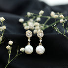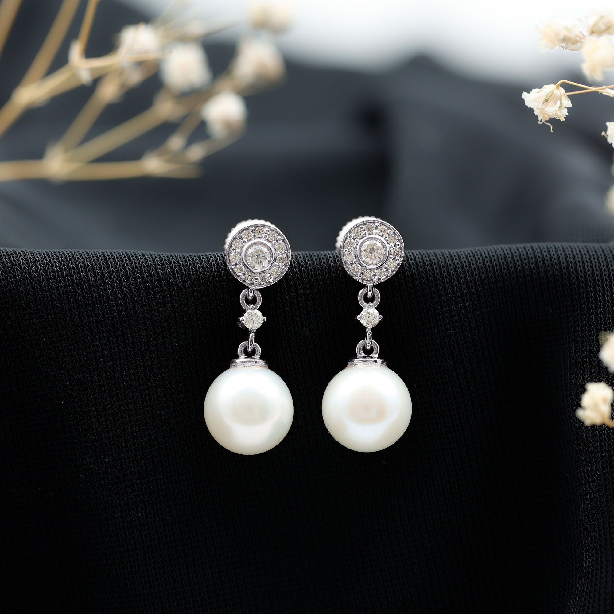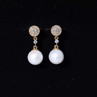 Real Pearl and Diamond Dangle Drop Earrings