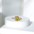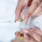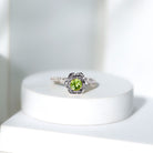The Perfect Combination of Peridot and Diamond in this Rose Flower Ring is mesmerizing. The Round Natural Peridot is set in Centre of a Gold Petals of Rose Flower in the curved shank. Get this Floral Inspired Engagement Ring for your Blooming Lady Love, this Peridot and Diamond Engagement Ring is a stunning jewelry, which she will cherish her whole life.