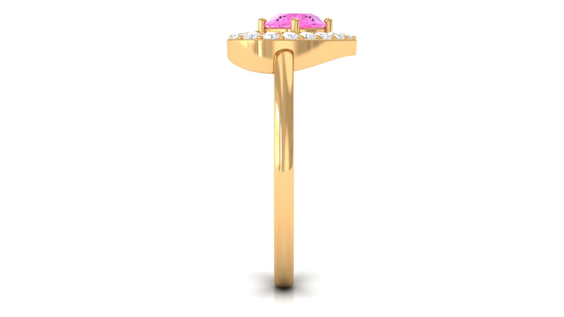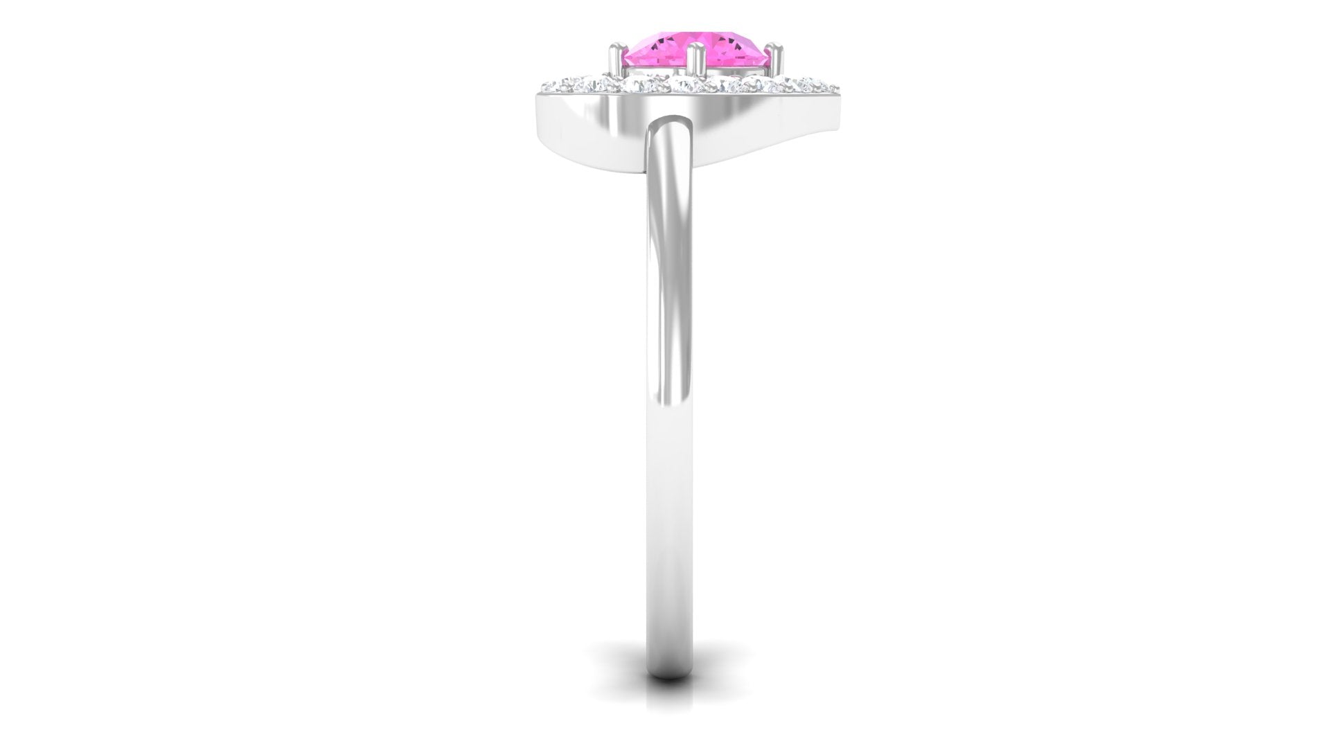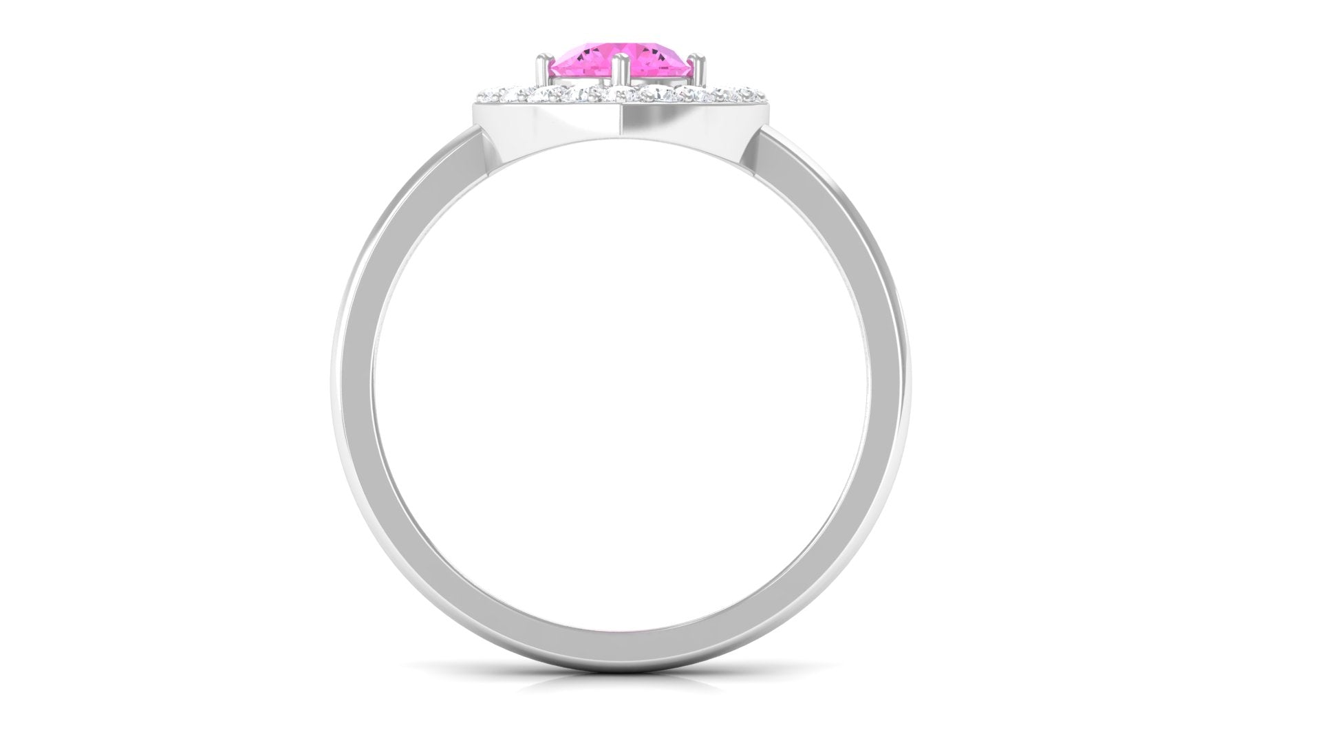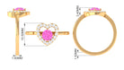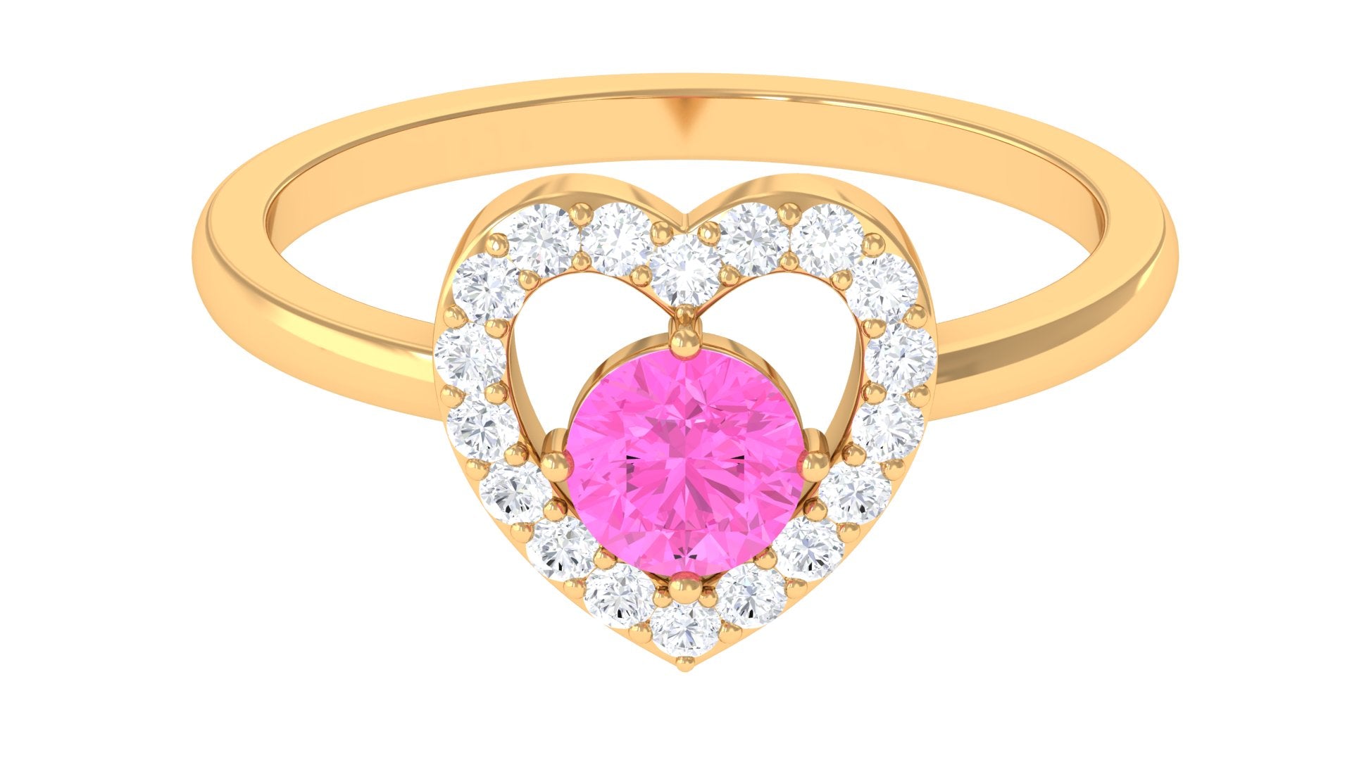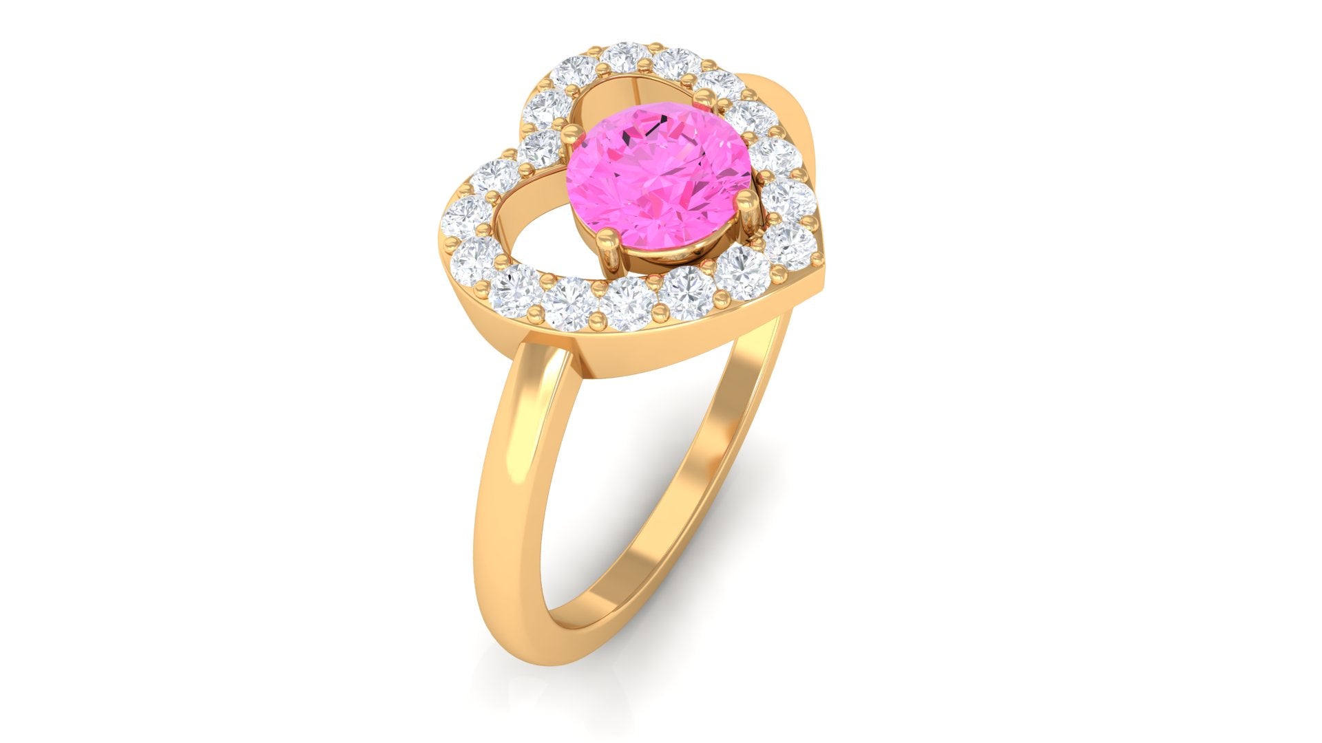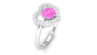 Enhance your favorite ensembles with the enchanting Heart Engagement Ring, destined to elevate your style with a touch of grace and elegance. This charming piece showcases a brilliant Round Shape Pink Sapphire delicately nestled within a 4 Prong Diagonal Setting, exuding a timeless allure. Surrounding the centerpiece, sparkling Diamond stones form a captivating heart shape, evoking a sense of romance and affection.