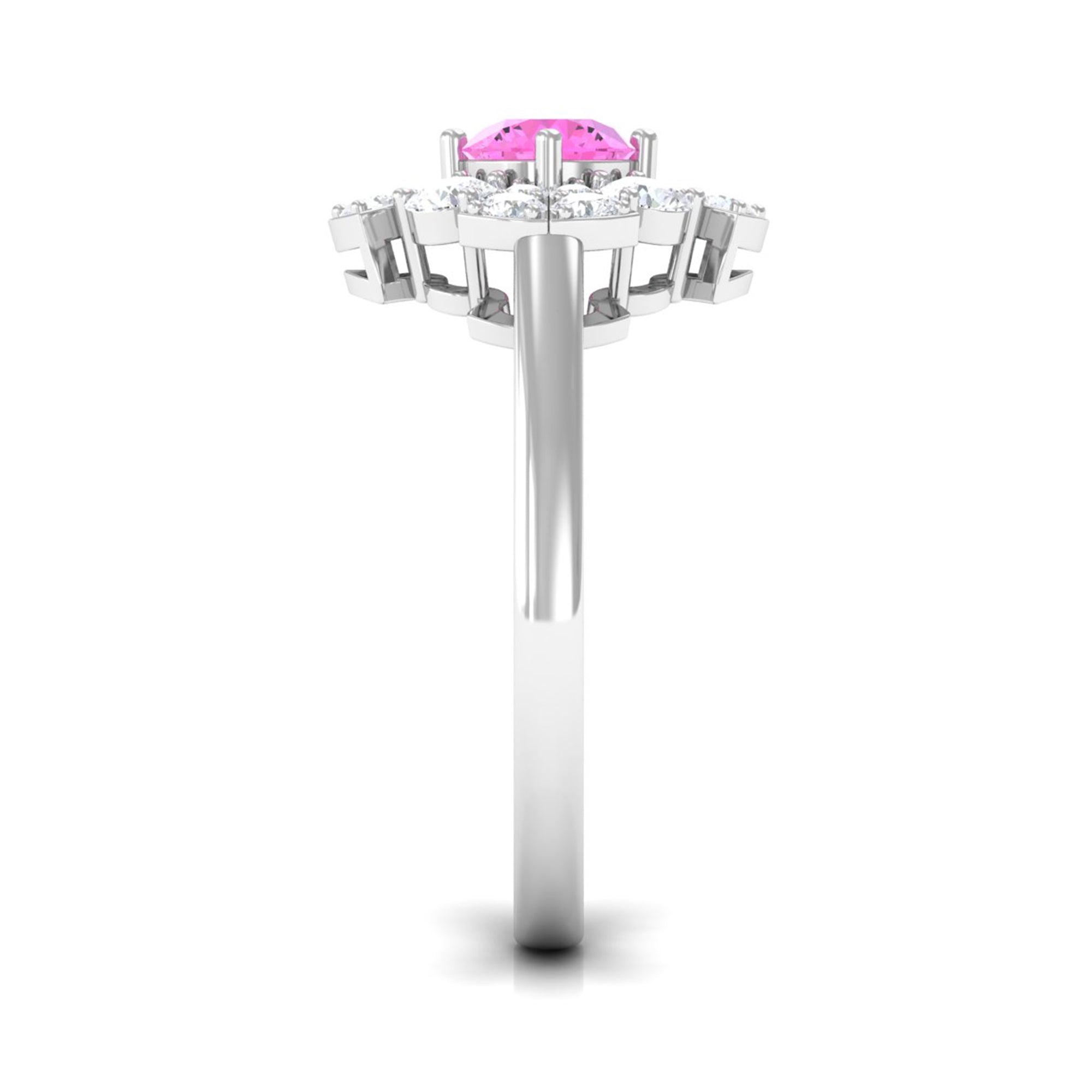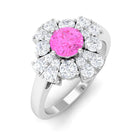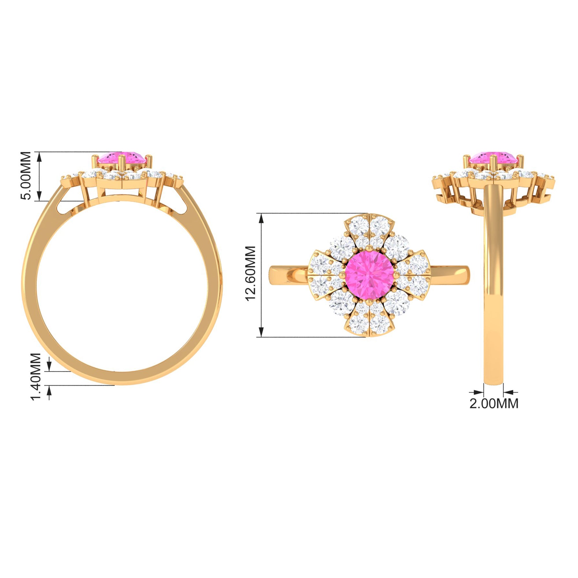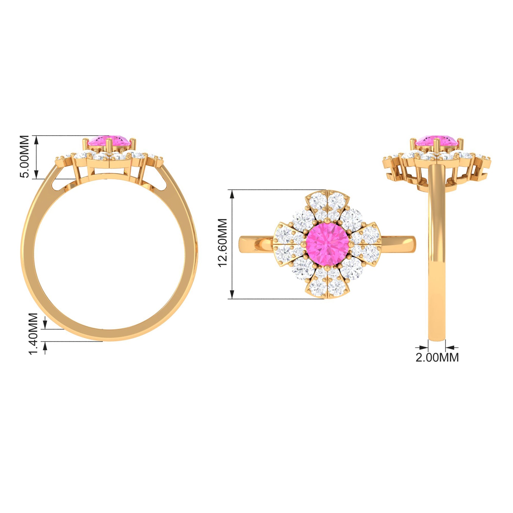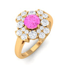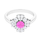 Celebrate your lifelong commitment and express your devotion with the enchanting Floral Engagement Ring. This exquisite piece features a mesmerizing Round Shape Pink Sapphire at its center, encircled by dazzling Diamond stones arranged in a captivating flower motif. The alluring design of this ring is sure to captivate the beholder, showcasing its unique and enticing appearance.