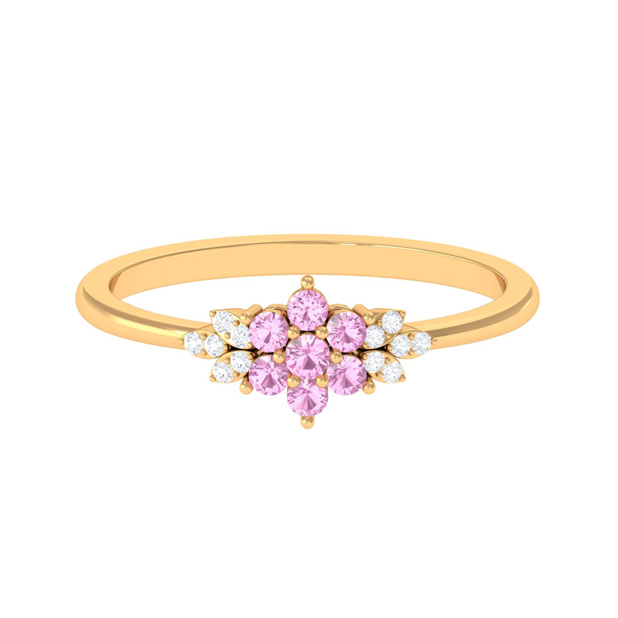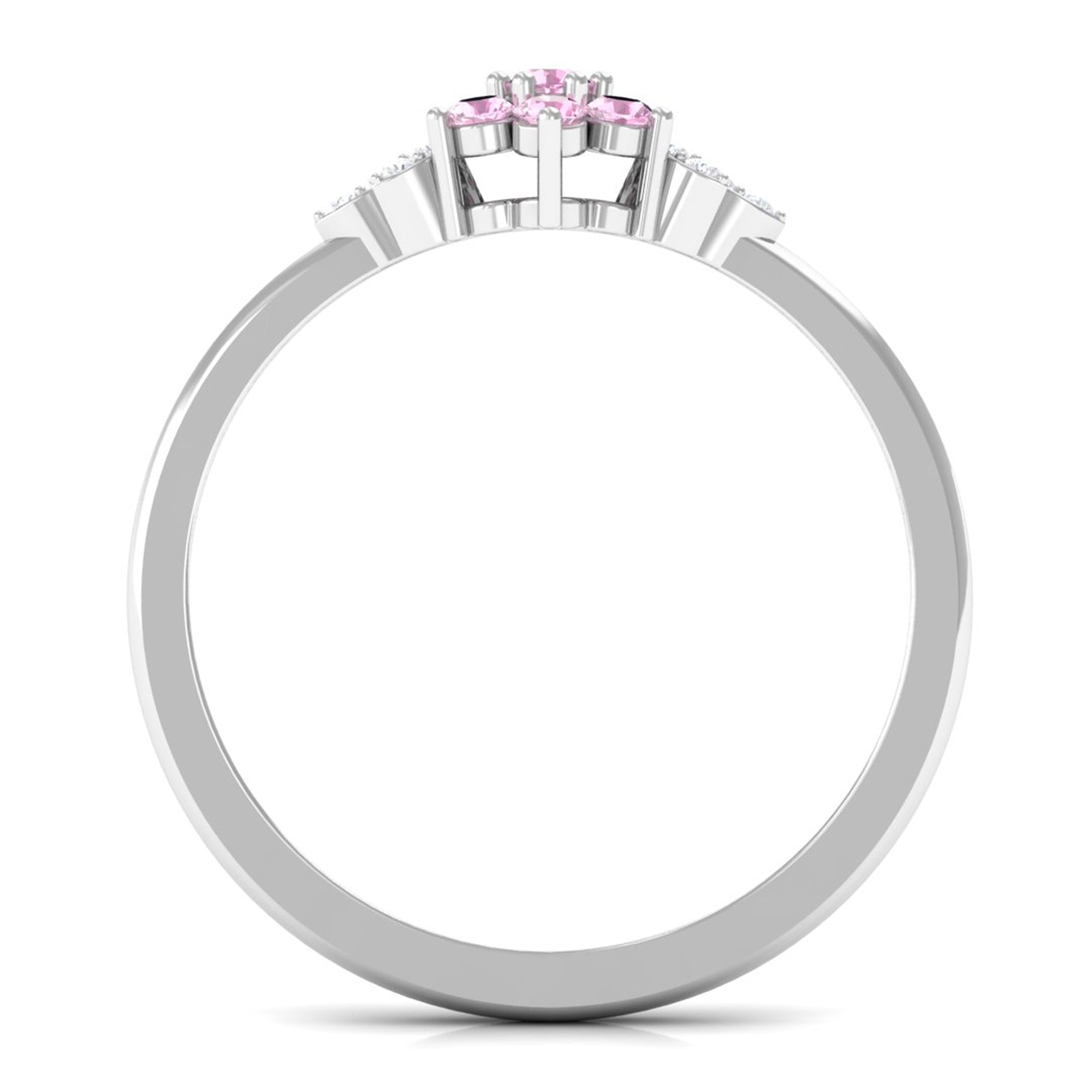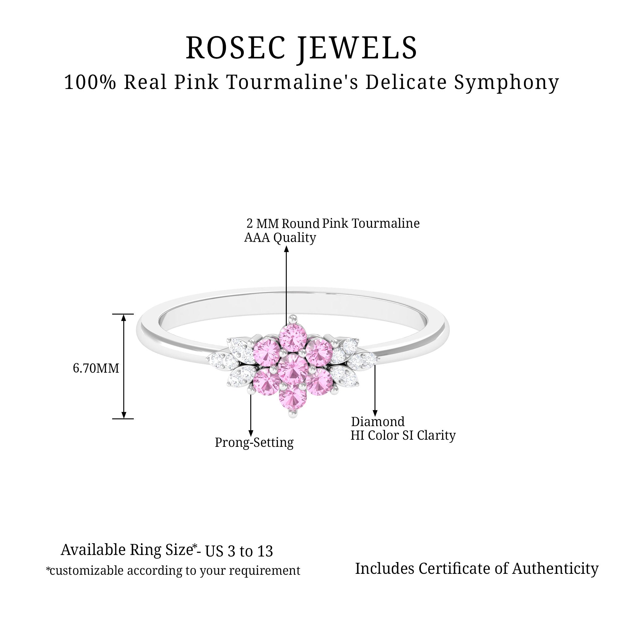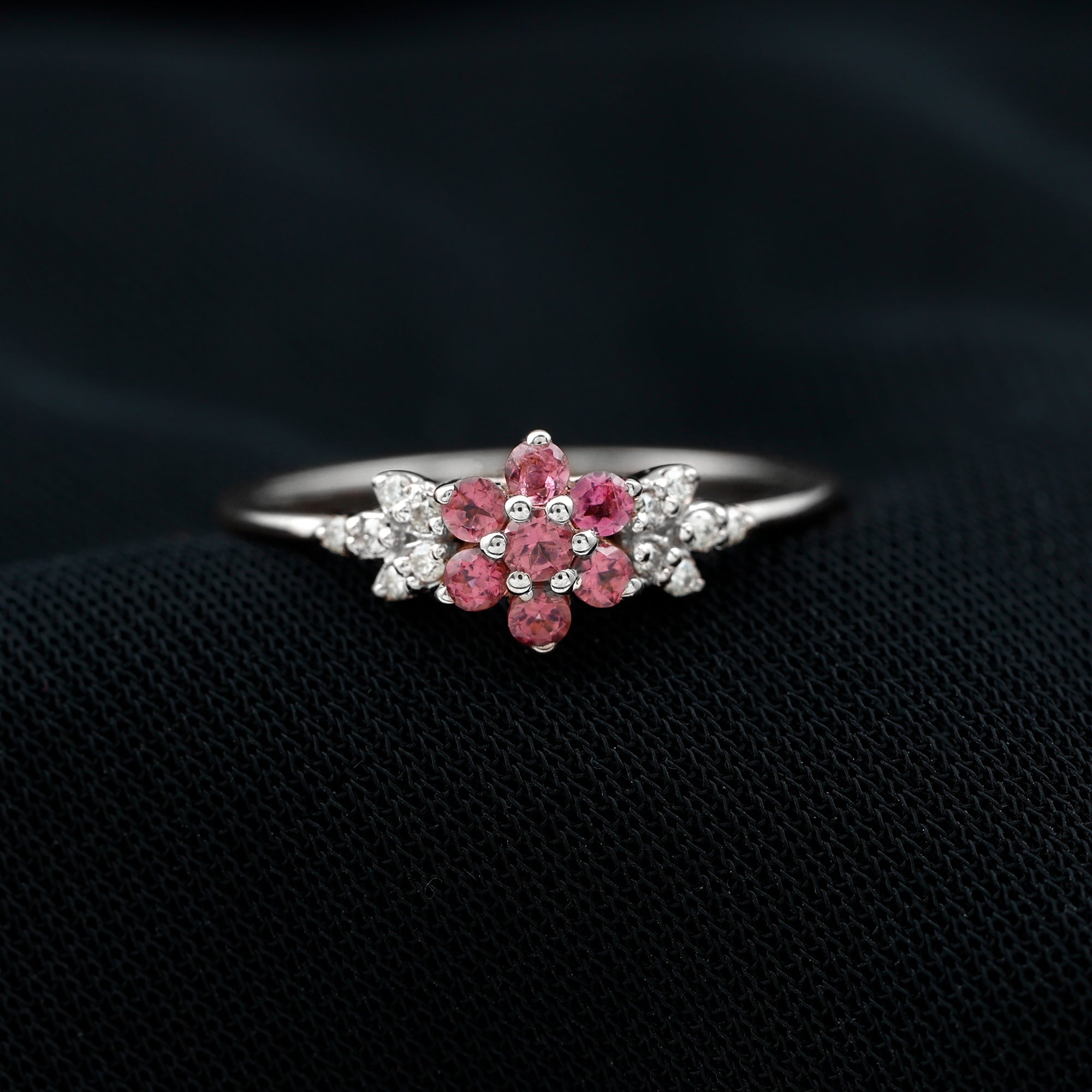 Real Pink Tourmaline Flower Cluster Ring with Diamond