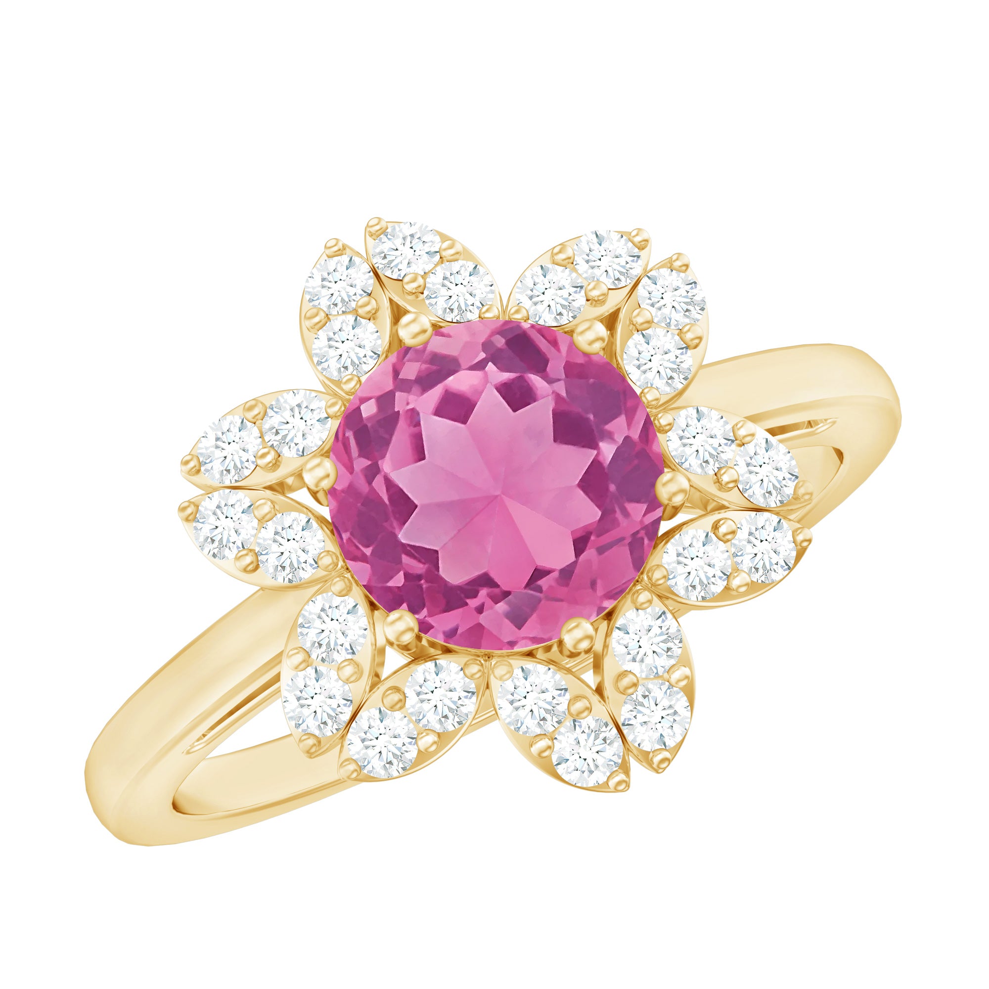 Embrace the beauty of nature with this Real Pink Tourmaline Flower Halo Ring. Sparkling Diamond accentuates its floral elegance and charm.