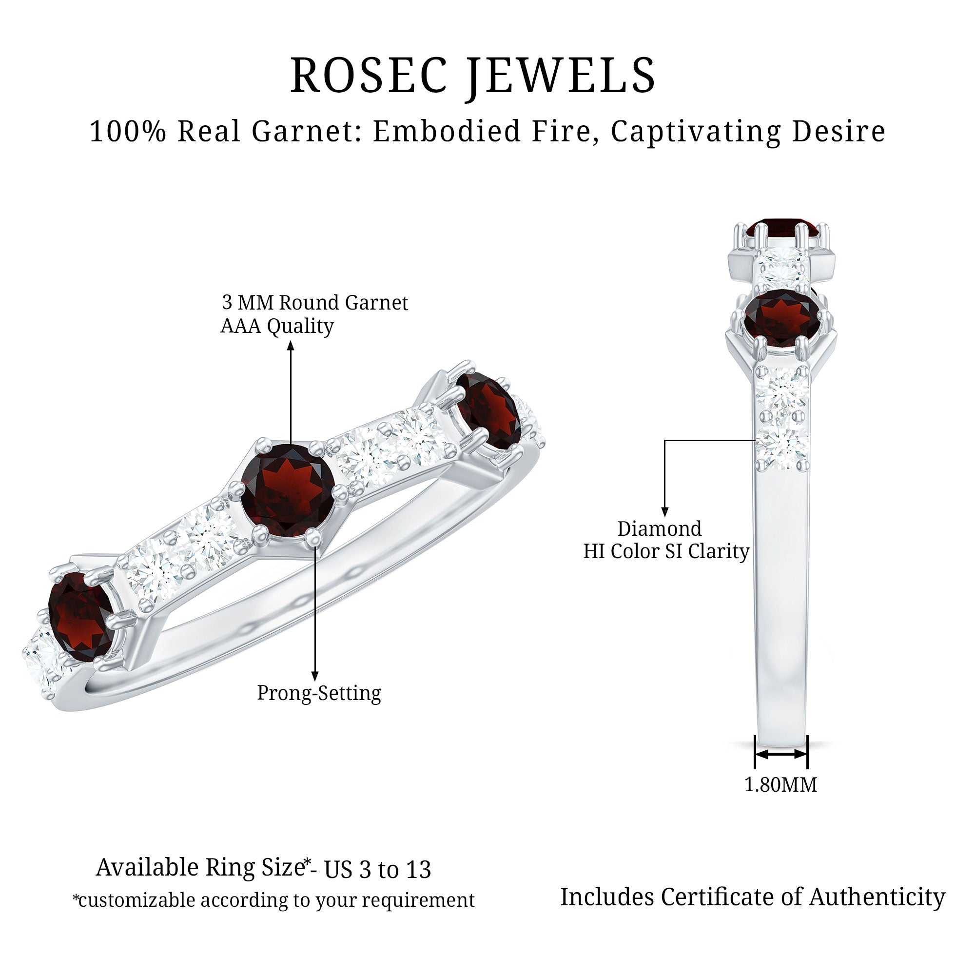 A perfect addition to any love story, this Half Eternity Ring is designed to celebrate the moments that matter most. The vivid 3 mm Round Shape Garnet stones shine with warmth and passion, each one symbolizing the memories, milestones and emotions that have shaped your journey together. Intertwined with sparkling Diamond stones that add a touch of brilliance, this Garnet Diamond Ring captures the balance of beauty, strength and devotion shared between two hearts. Available in various ring sizes for a comfortable and secure fit, this Red Garnet Ring is crafted to be worn every day as a constant reminder of your lasting connection. Presented in a signature jewelry box, this Garnet Eternity Ring arrives ready to make any celebration unforgettable, turning simple moments into cherished keepsakes. Let this Wedding Anniversary Ring glow with the same passion and devotion that fills your hearts, making every glance at it feel like a tender reminder of your eternal bond.