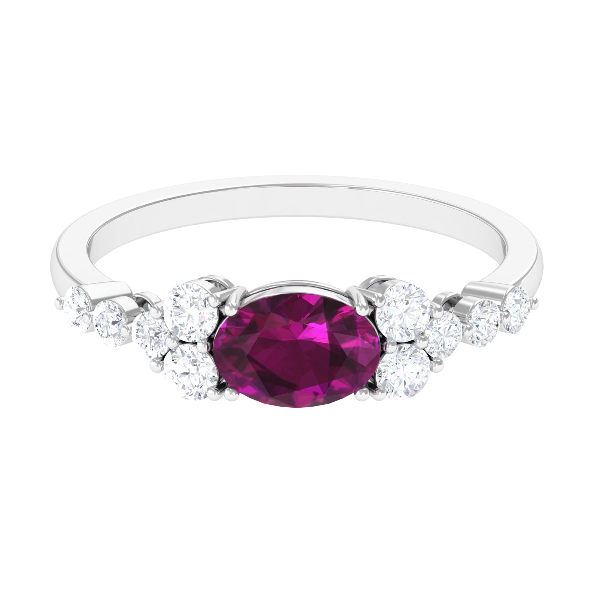 Real Rhodolite Solitaire East West Ring with Diamond Stones