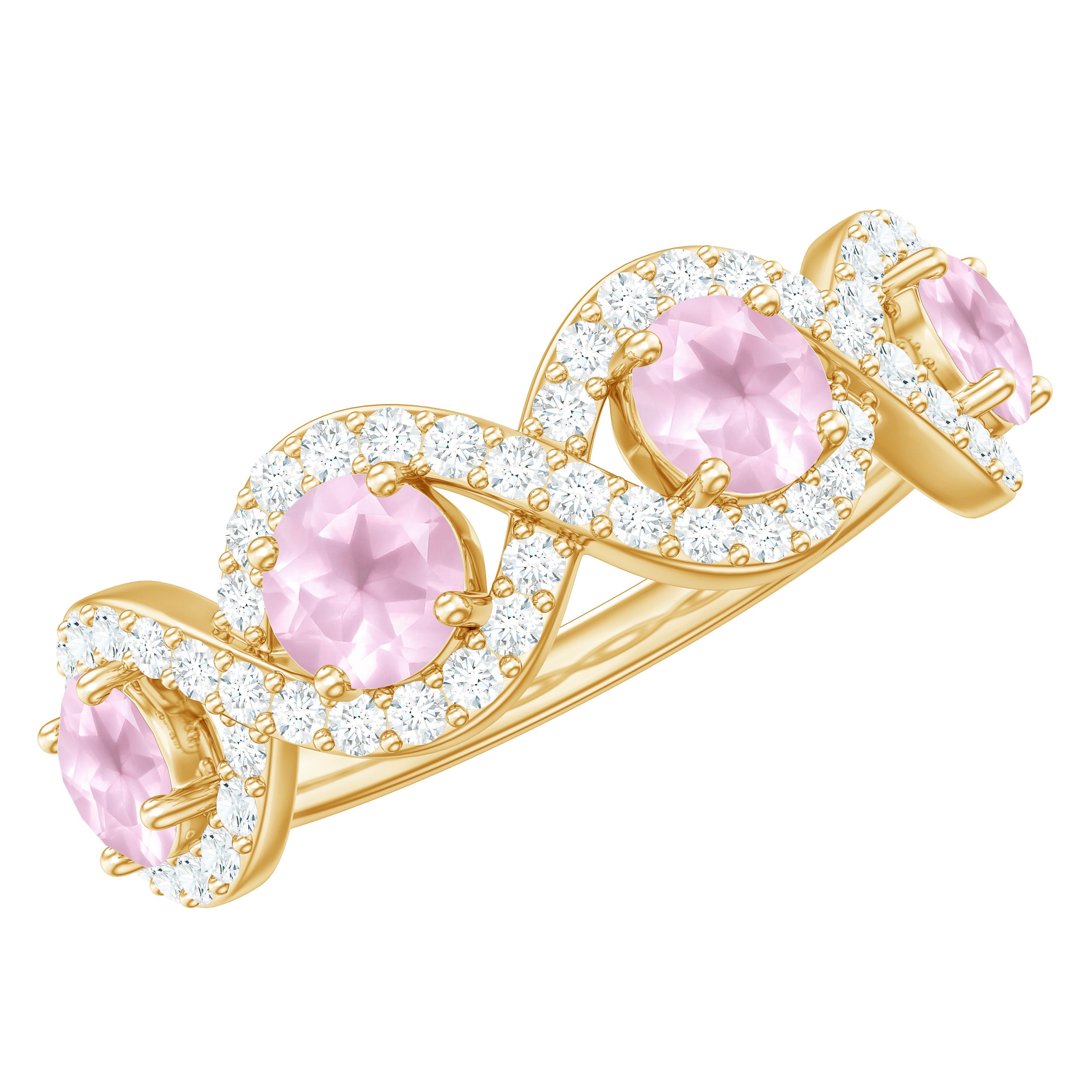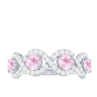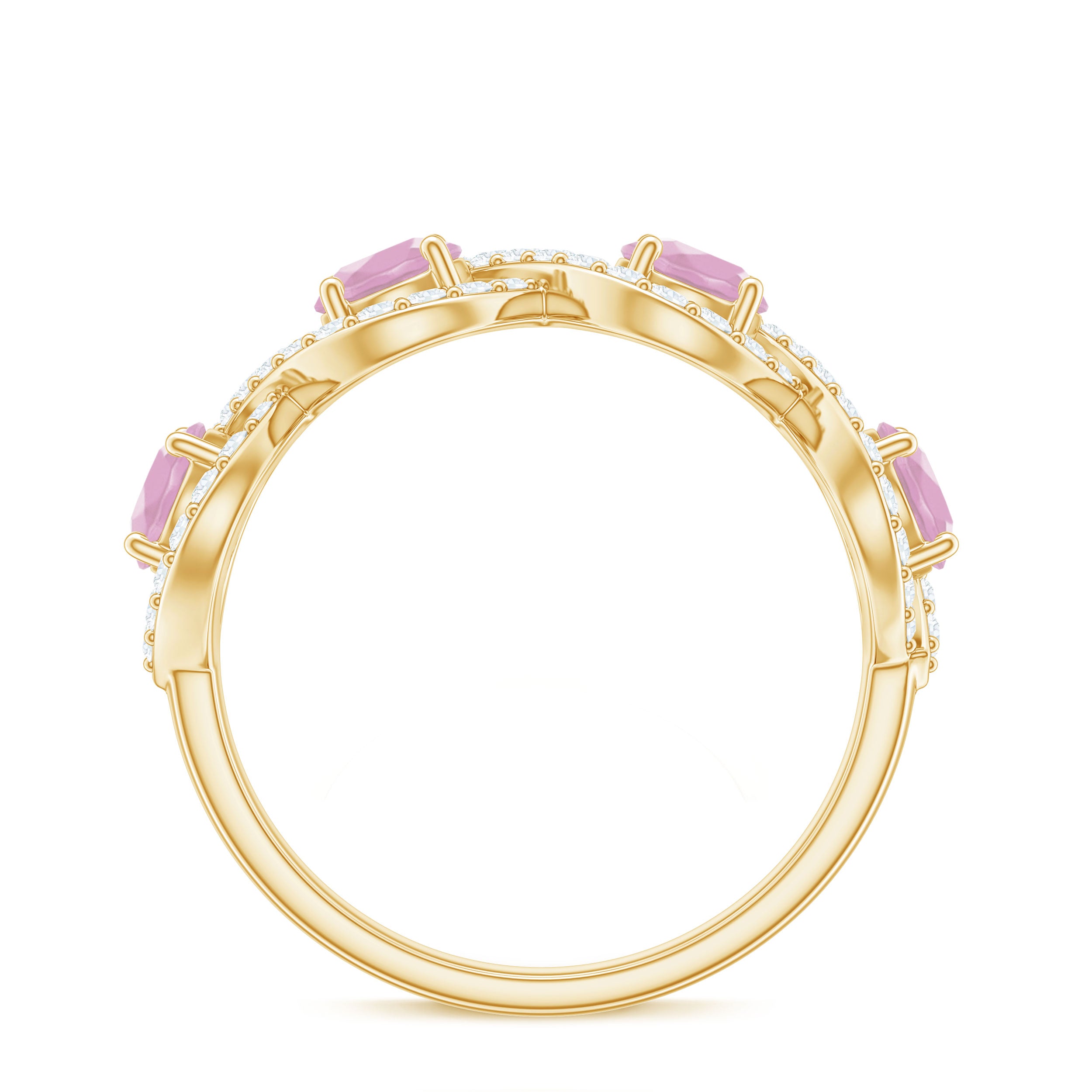 Real Rose Quartz and Diamond Braided Half Eternity Ring