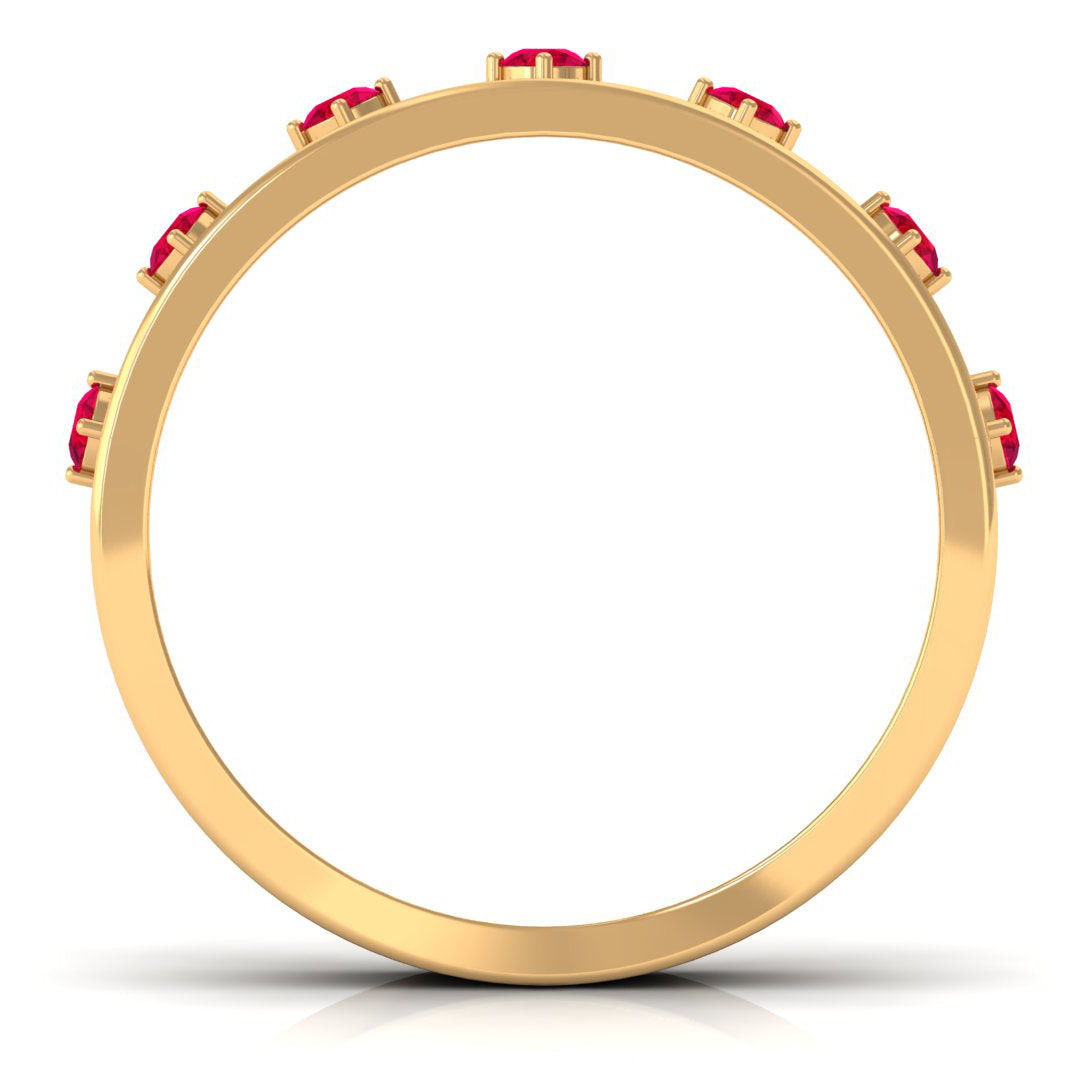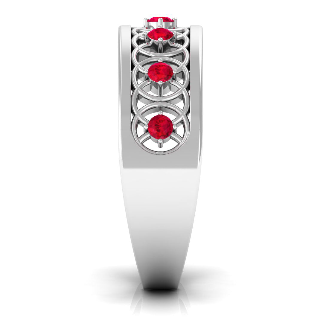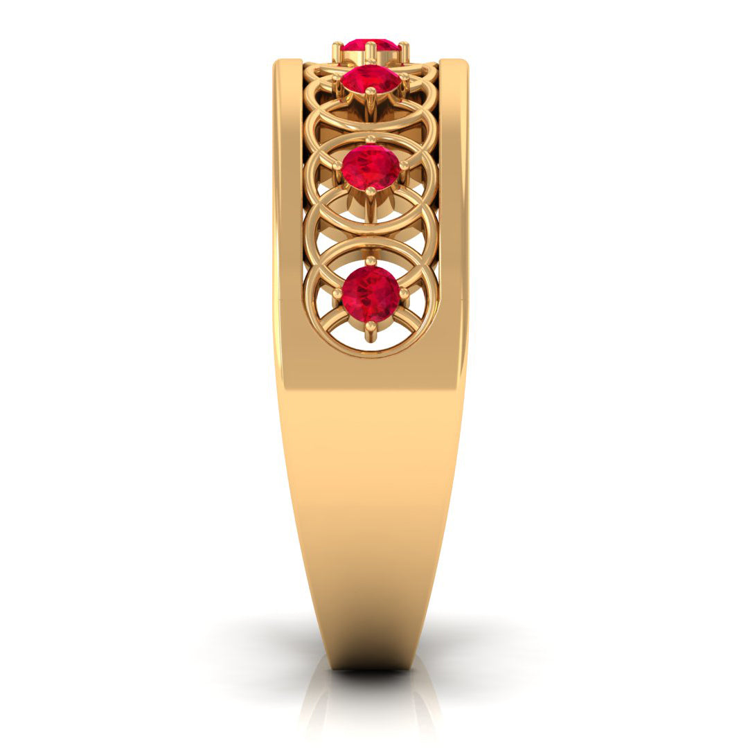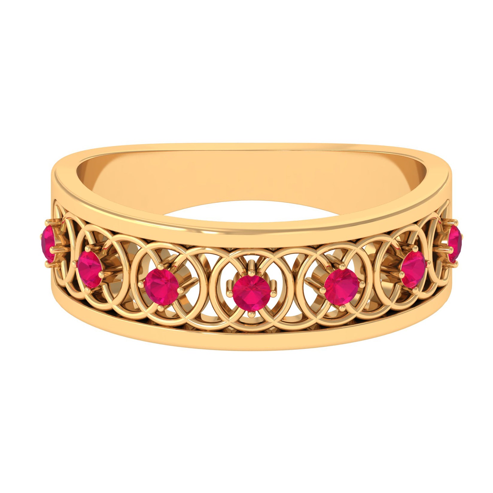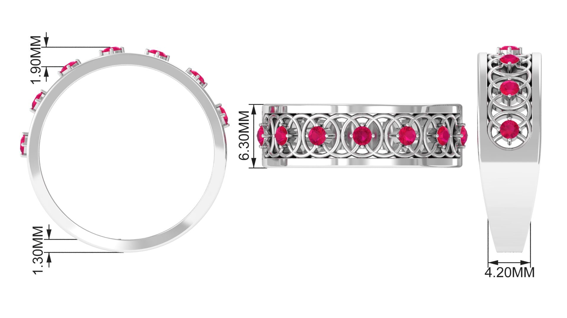 This stunning Half Eternity Band features Round Shape Ruby secured in Prong Setting, spaced out halfway around the band and Celtic Design adding a touch of uniqueness. Grab this Ruby Celtic Band Ring for your special one as it makes a perfect Birthday Gift, Anniversary Gift, or Graduation Gift for Her.