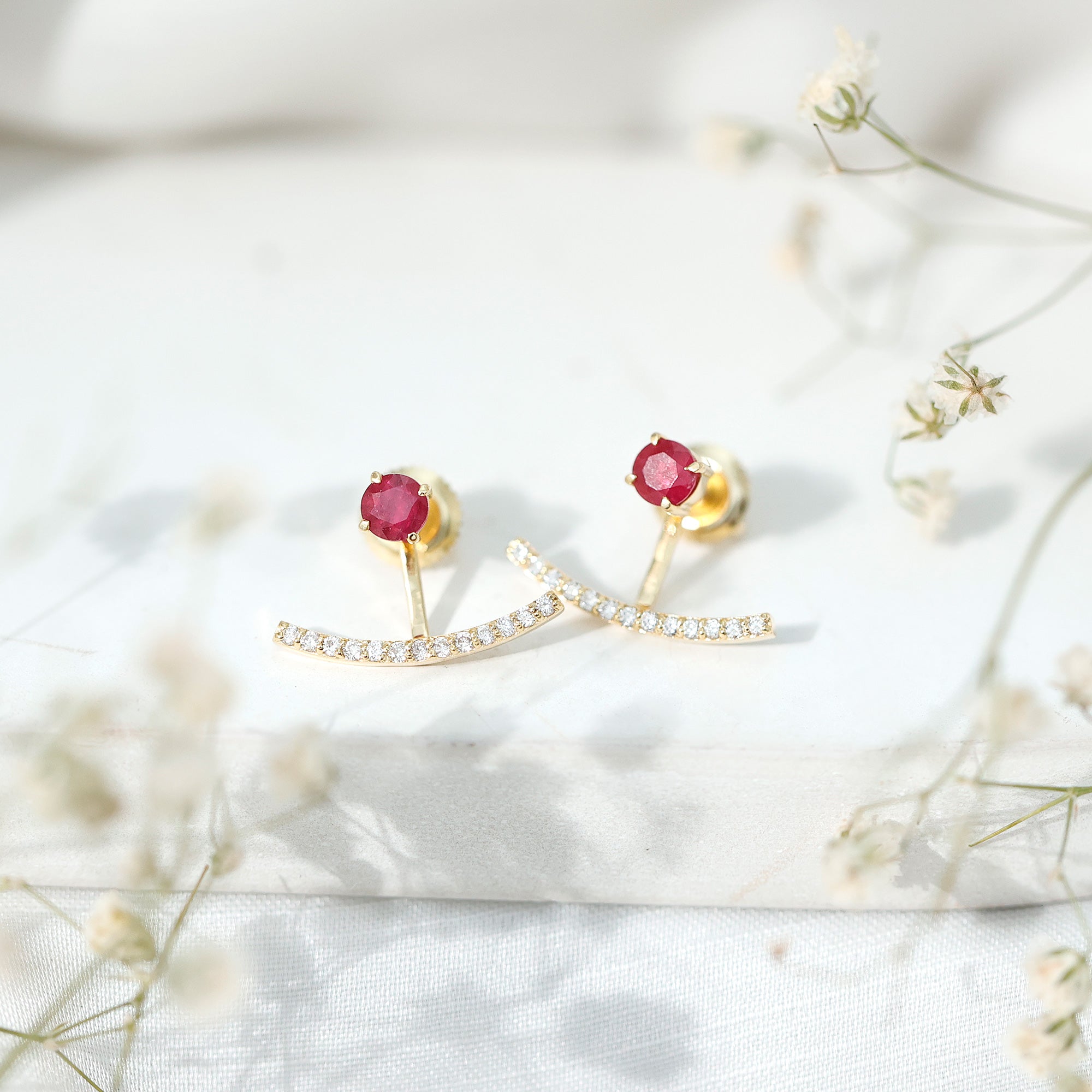 Real Ruby Front Back Earrings with Diamond