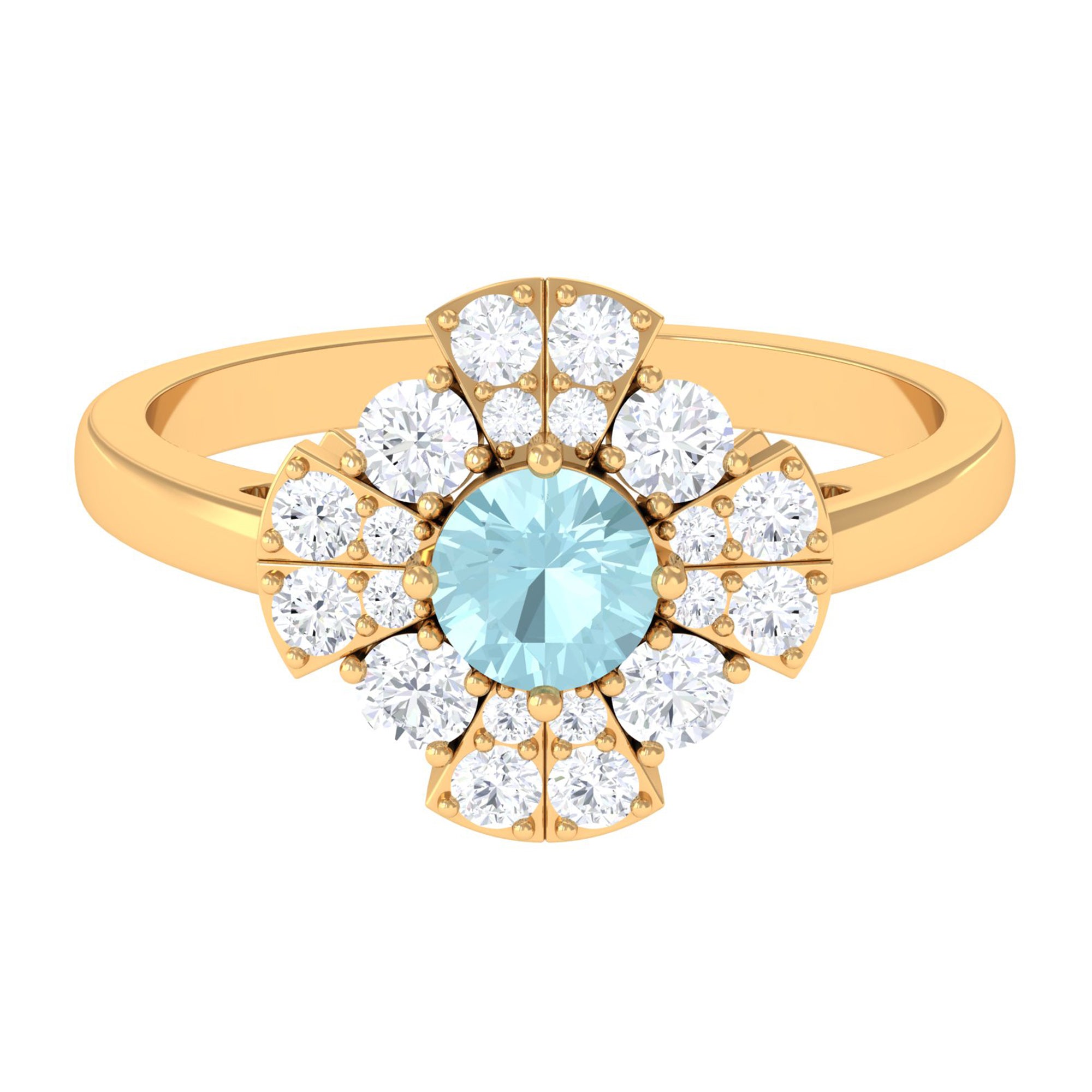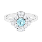Real Sky Blue Topaz and Moissanite Flower Engagement Ring