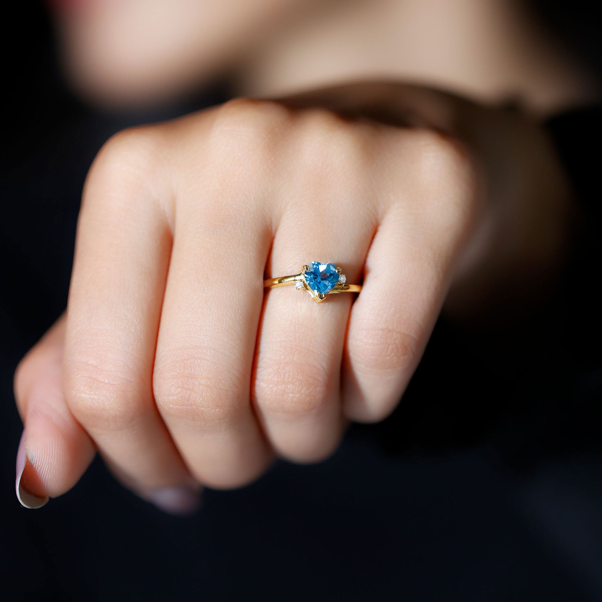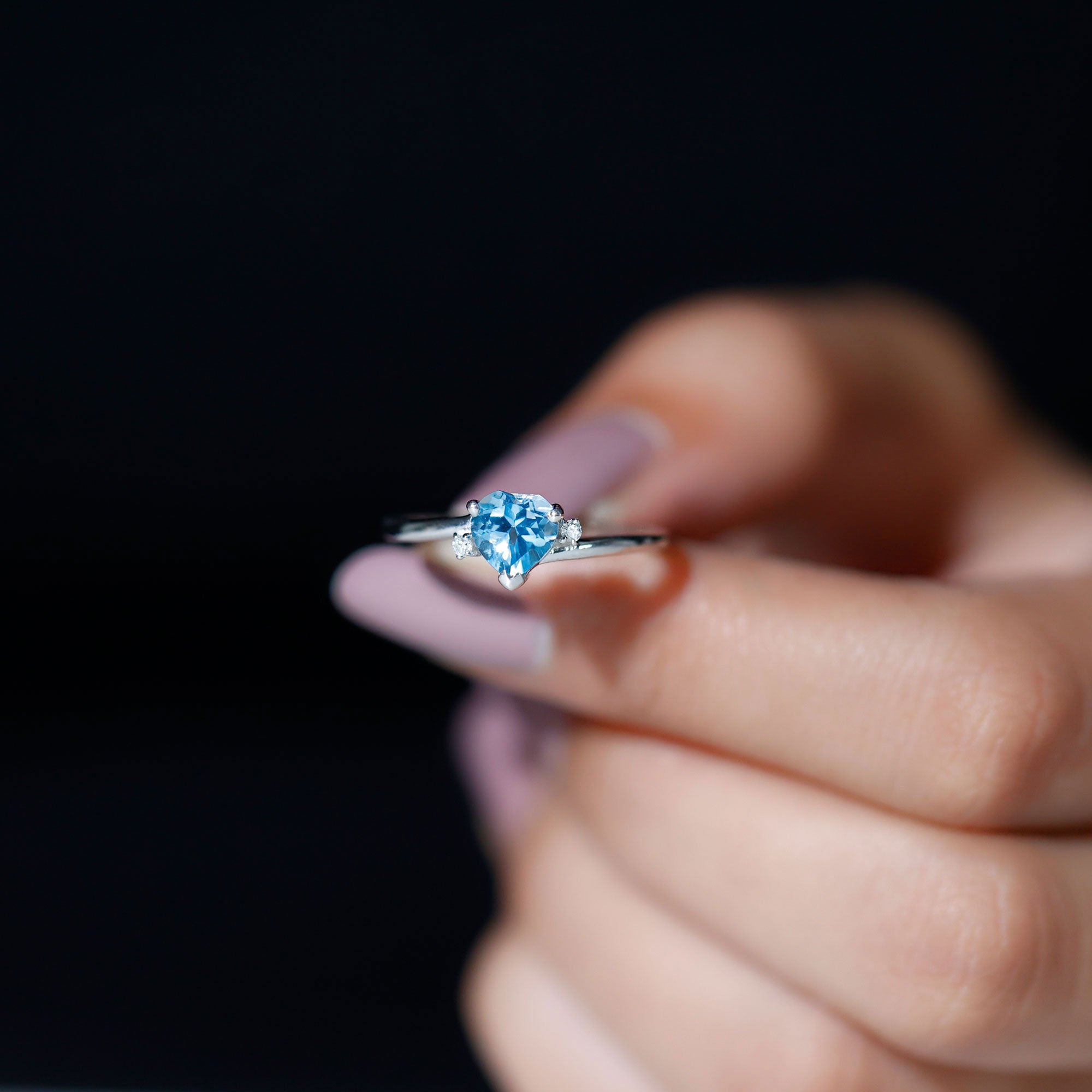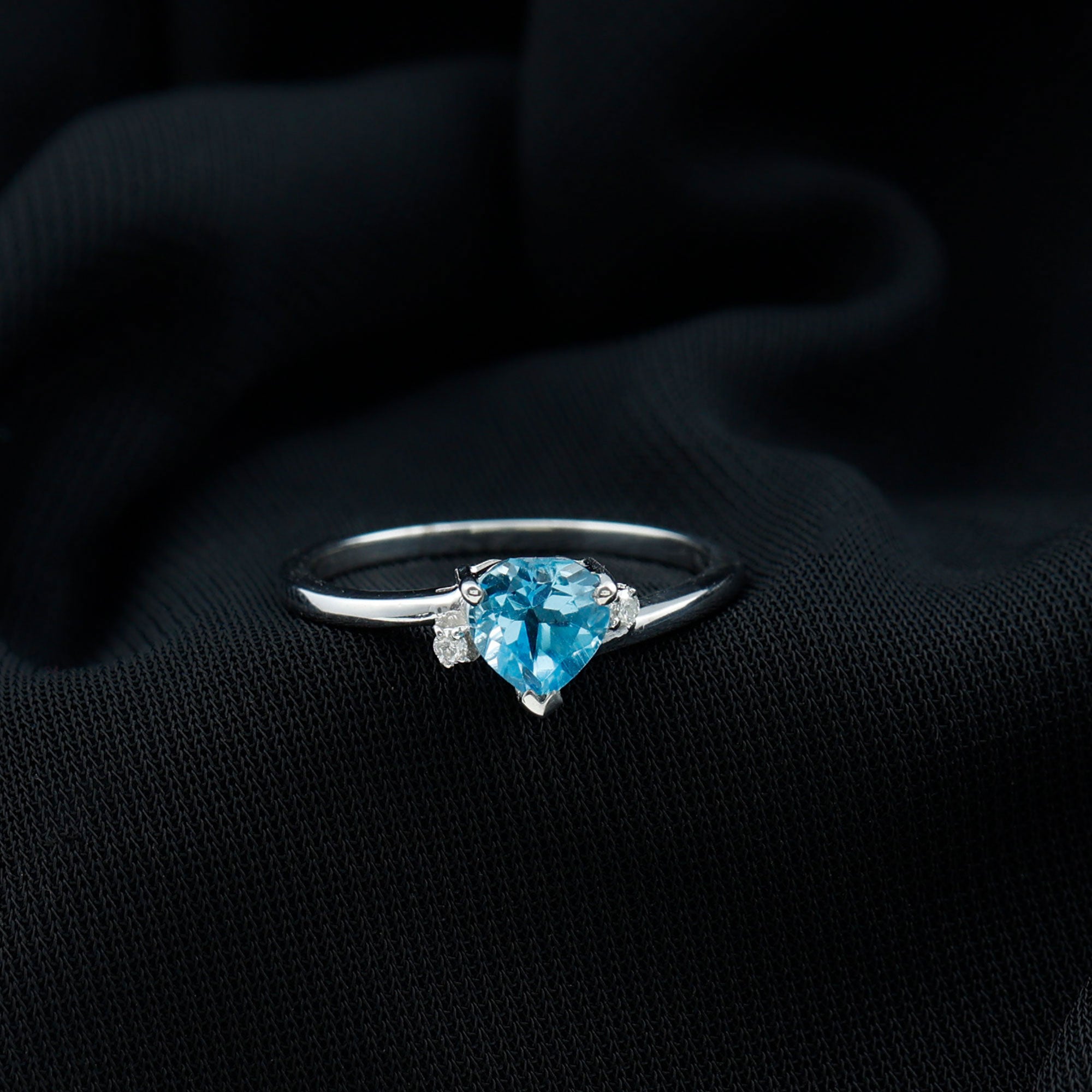 Real Swiss Blue Topaz Heart Solitaire Promise Ring with Diamond