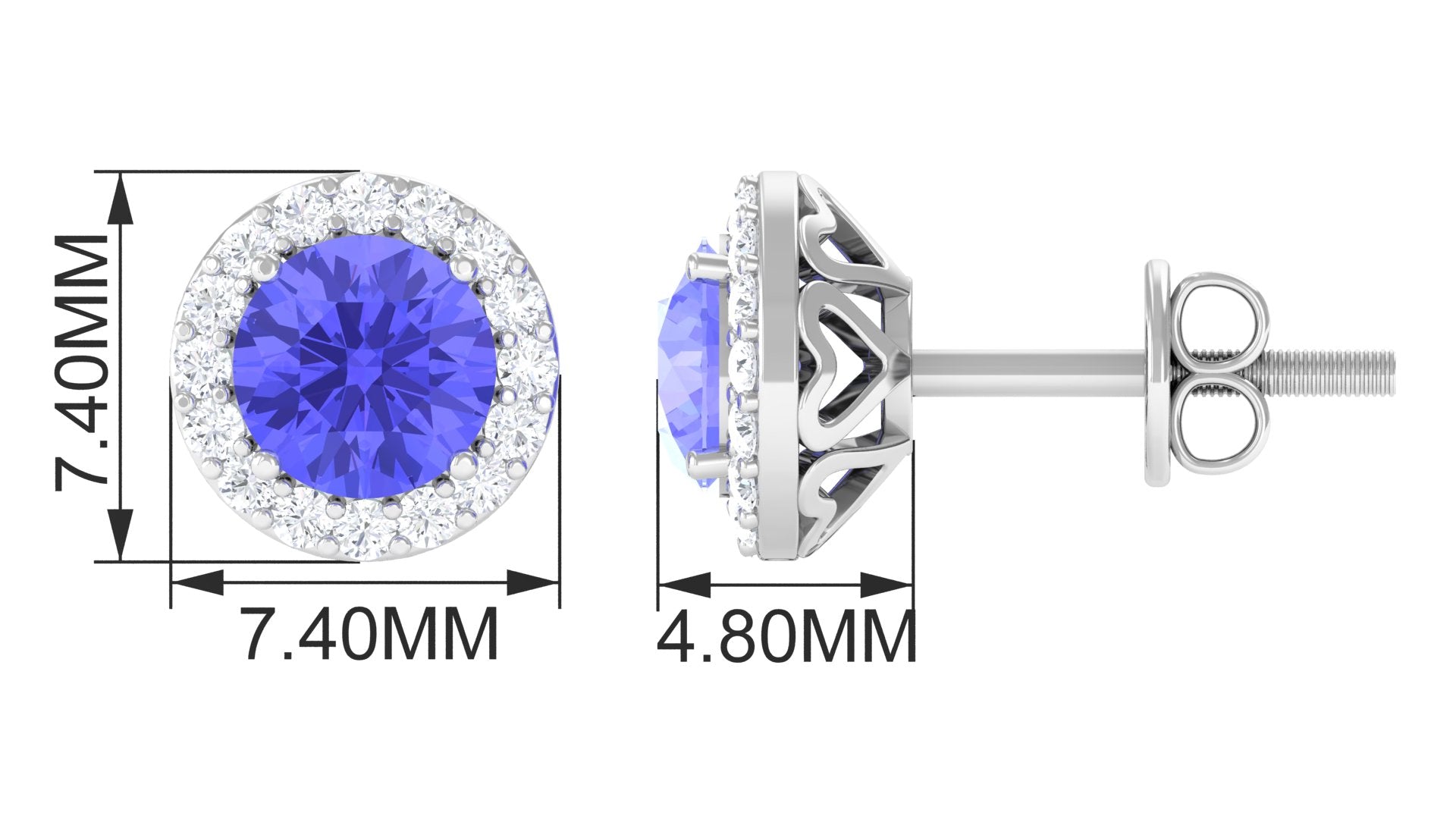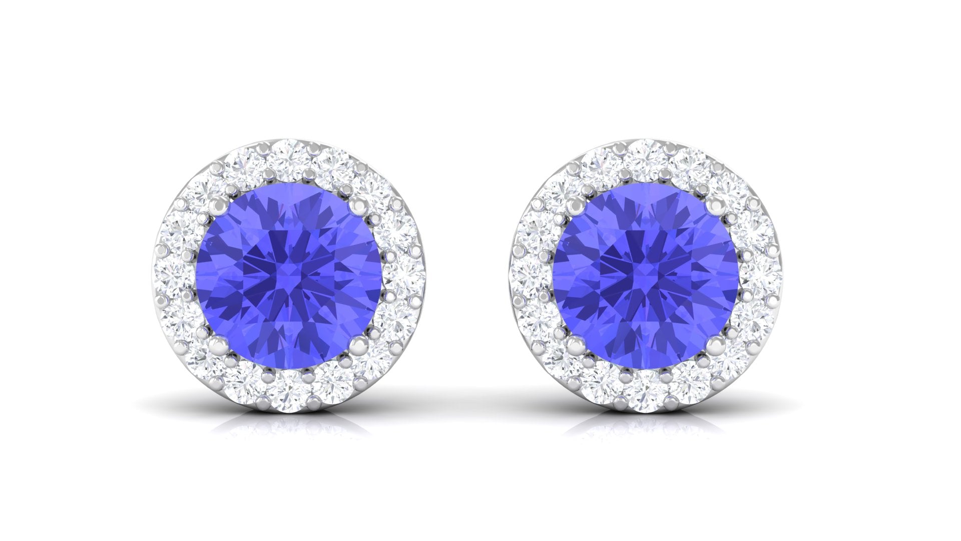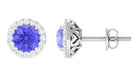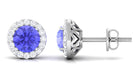 Real Tanzanite Halo Stud Earrings with Dimaond