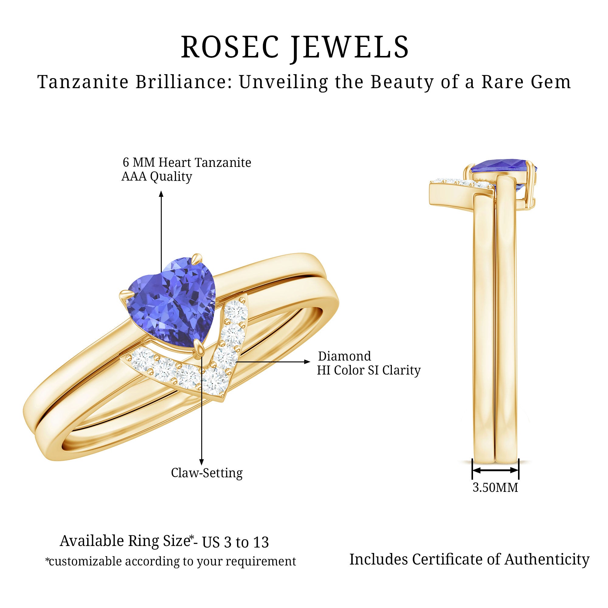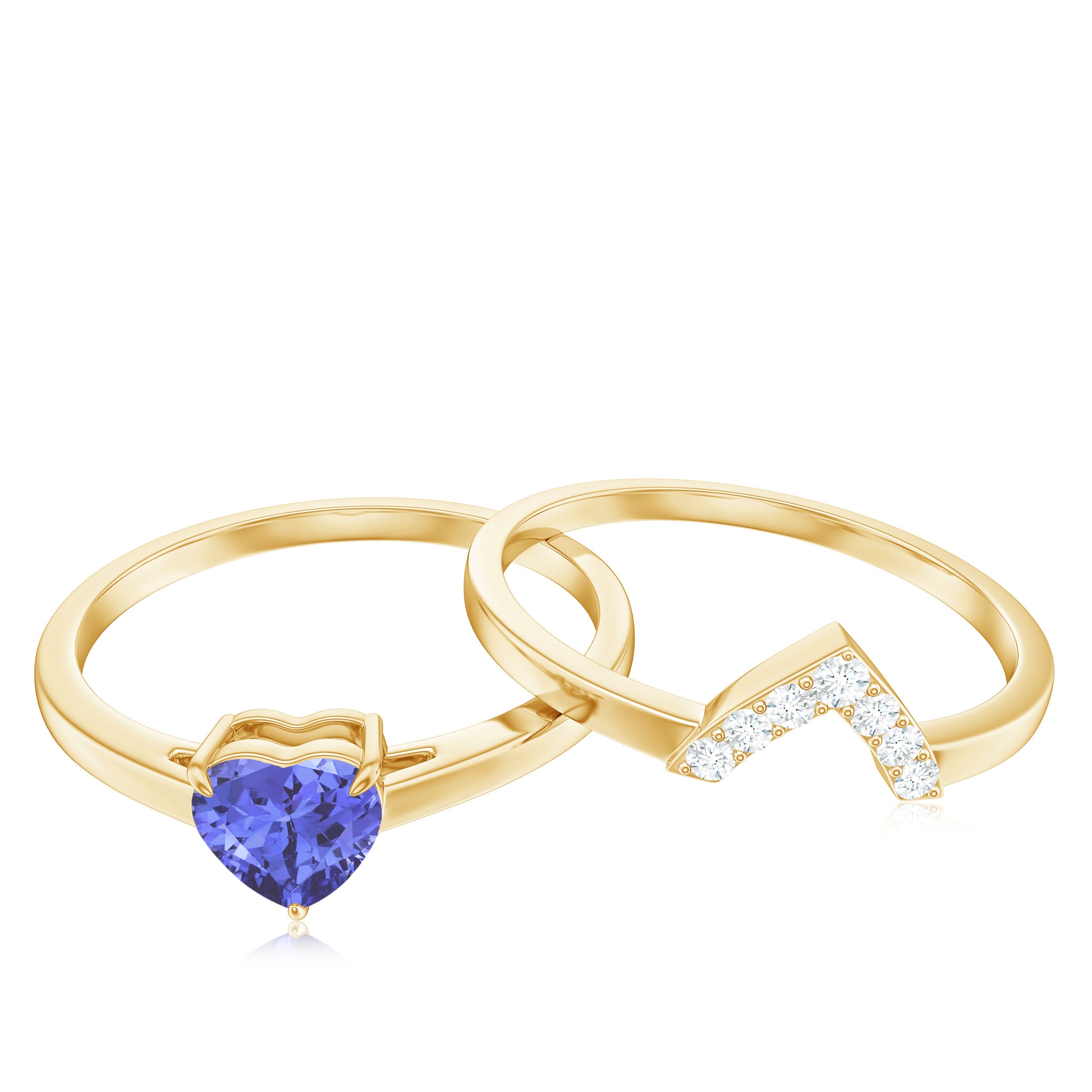 Radiate love and enchantment with this Tanzanite Heart Ring Set adorned with dazzling Diamond gemstones, divine beauty that captures the essence love.
