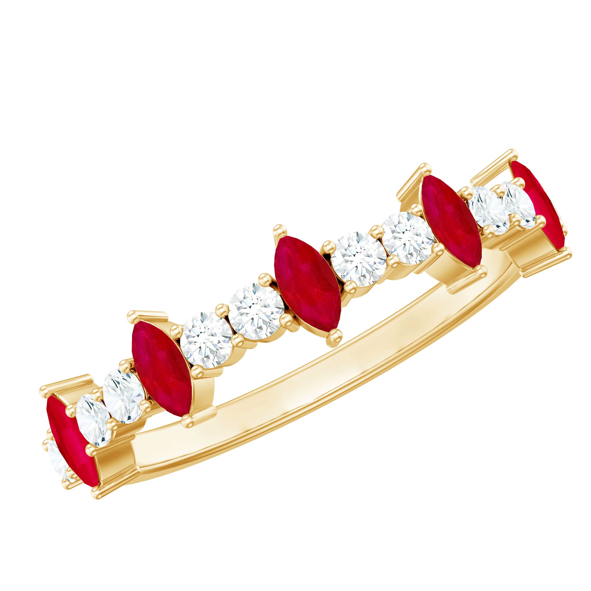 Radiate passion with this Half Eternity Ring adorned with Ruby and Diamond gemstones, an exquisite symbol of love and devotion that captures the hearts.