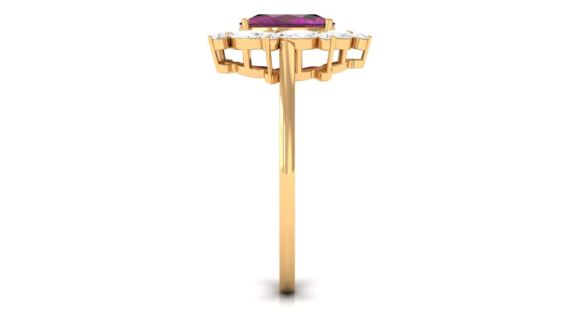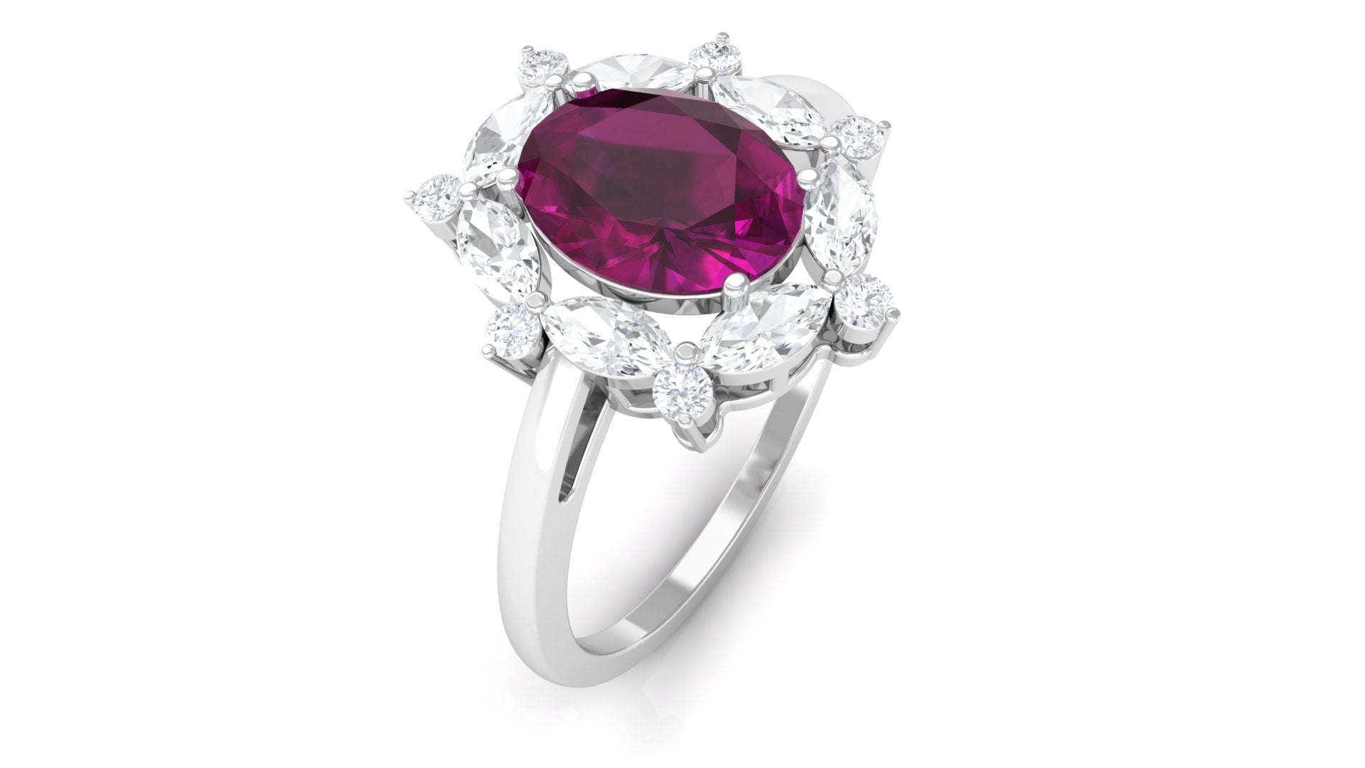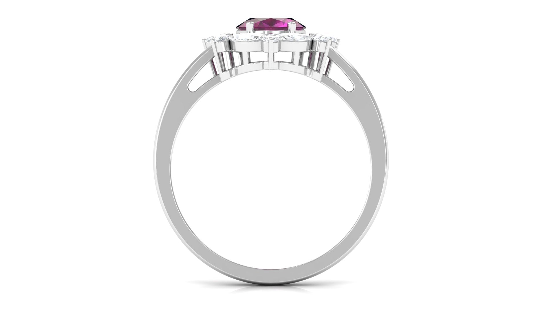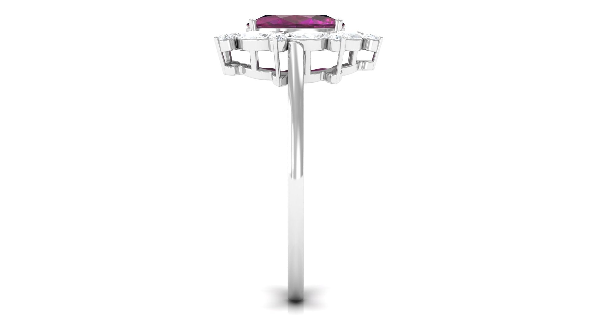 Rhodolite Designer Halo Engagement Ring with Moissanite