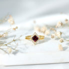Rhodolite Garnet Princess Cut Engagement Ring with Diamond Enhancer