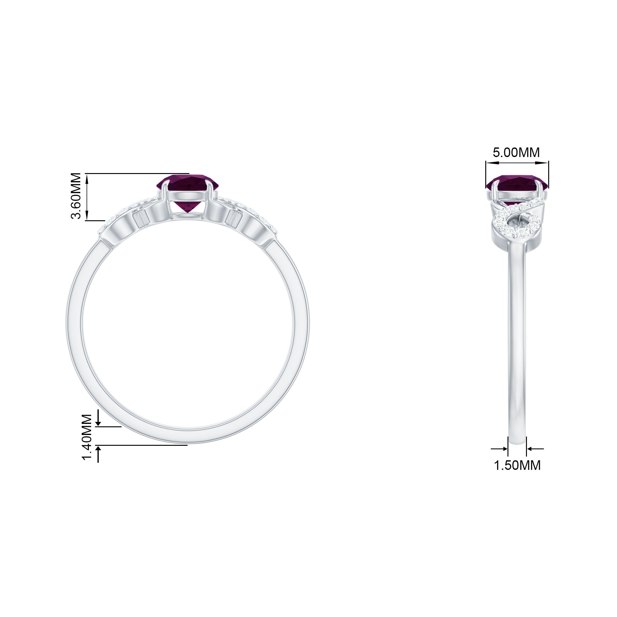 Rhodolite Solitaire Engagement Ring with Diamond Accent