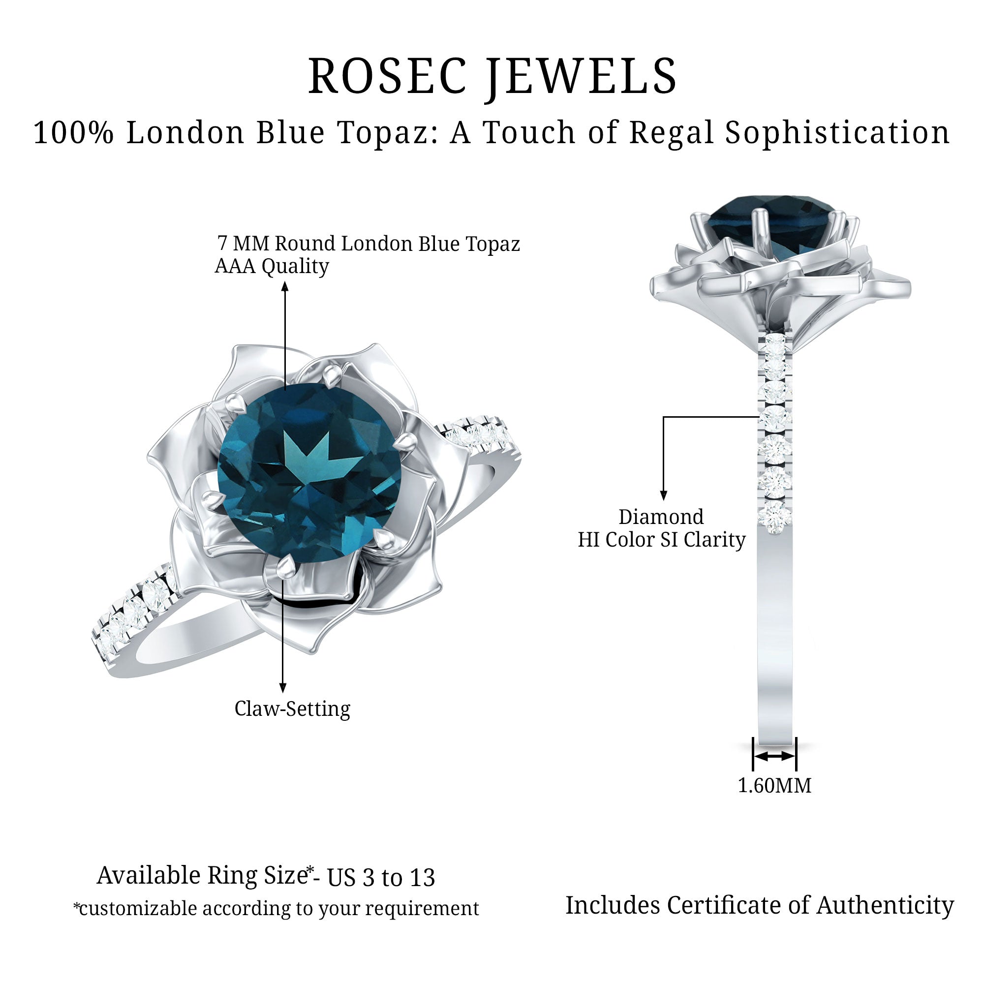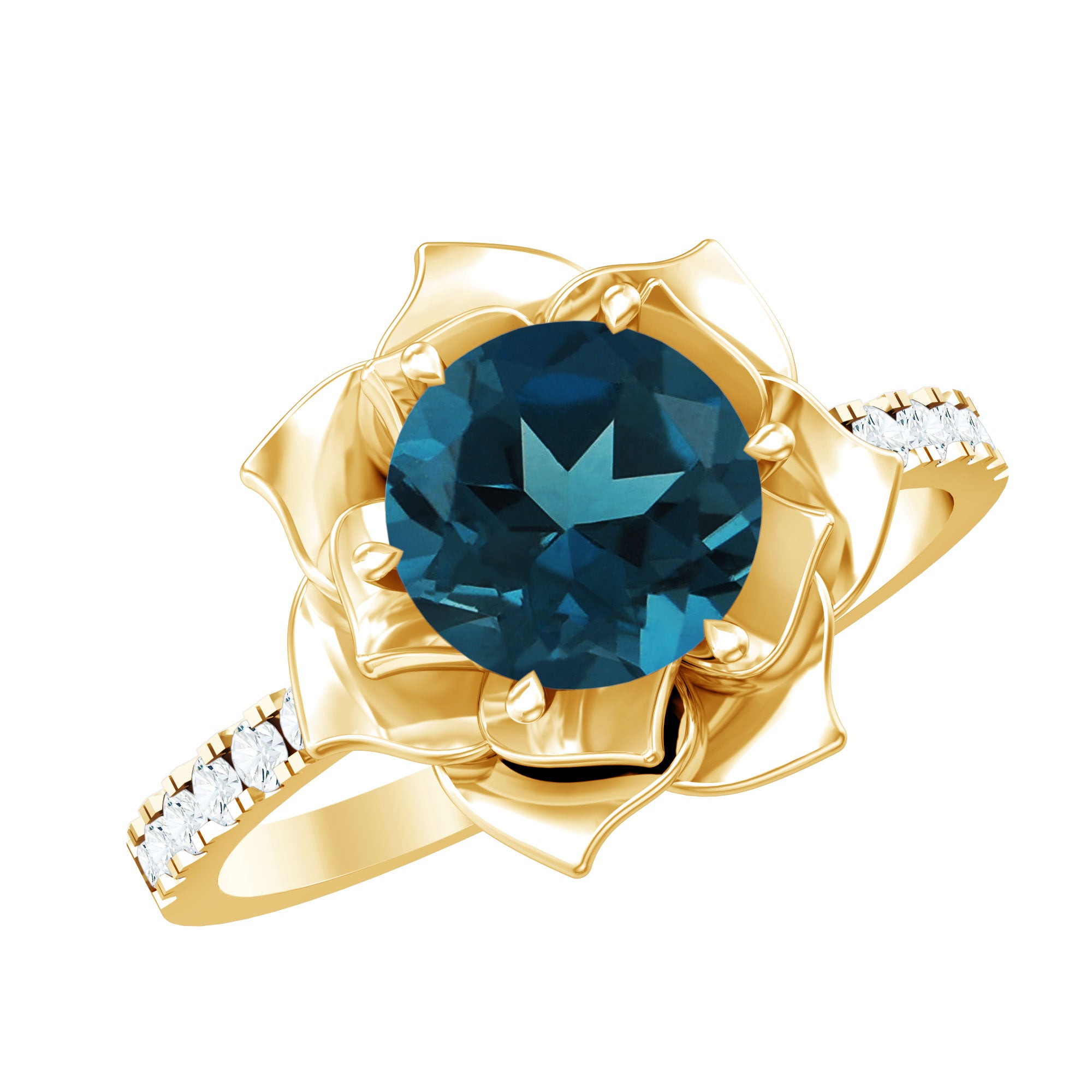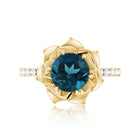 Rose Flower Engagement Ring with London Blue Topaz and Diamond