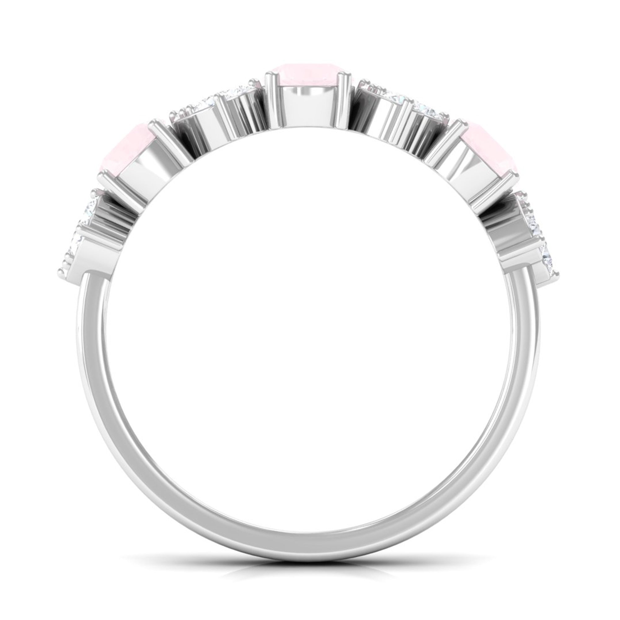 Rose Quartz and Diamond Heart Shape Alternate Half Eternity Ring