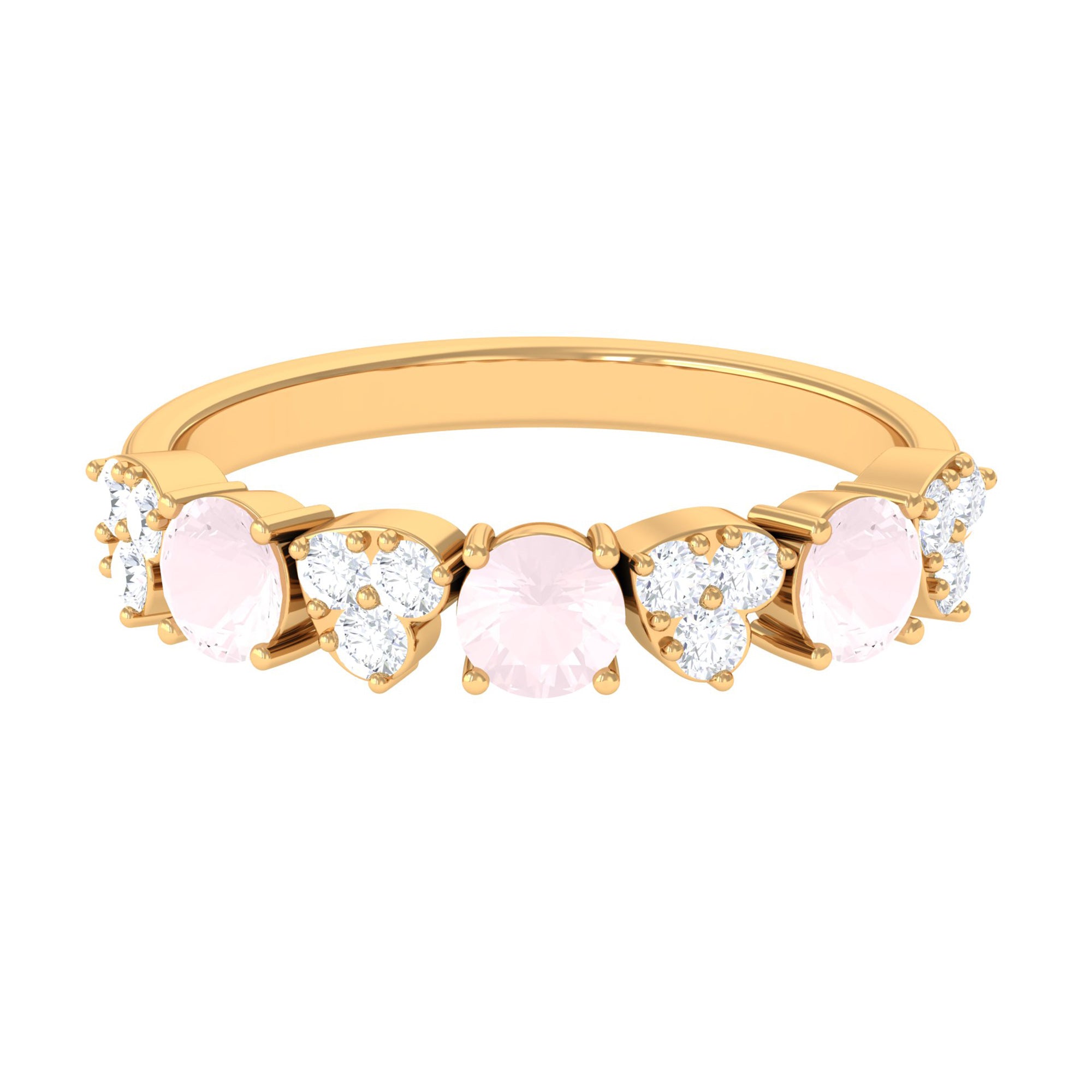 Embrace love and enchantment with this Heart Shape Half Eternity Ring adorned with Rose Quartz and Diamond. A captivating symbol of eternal devotion.