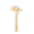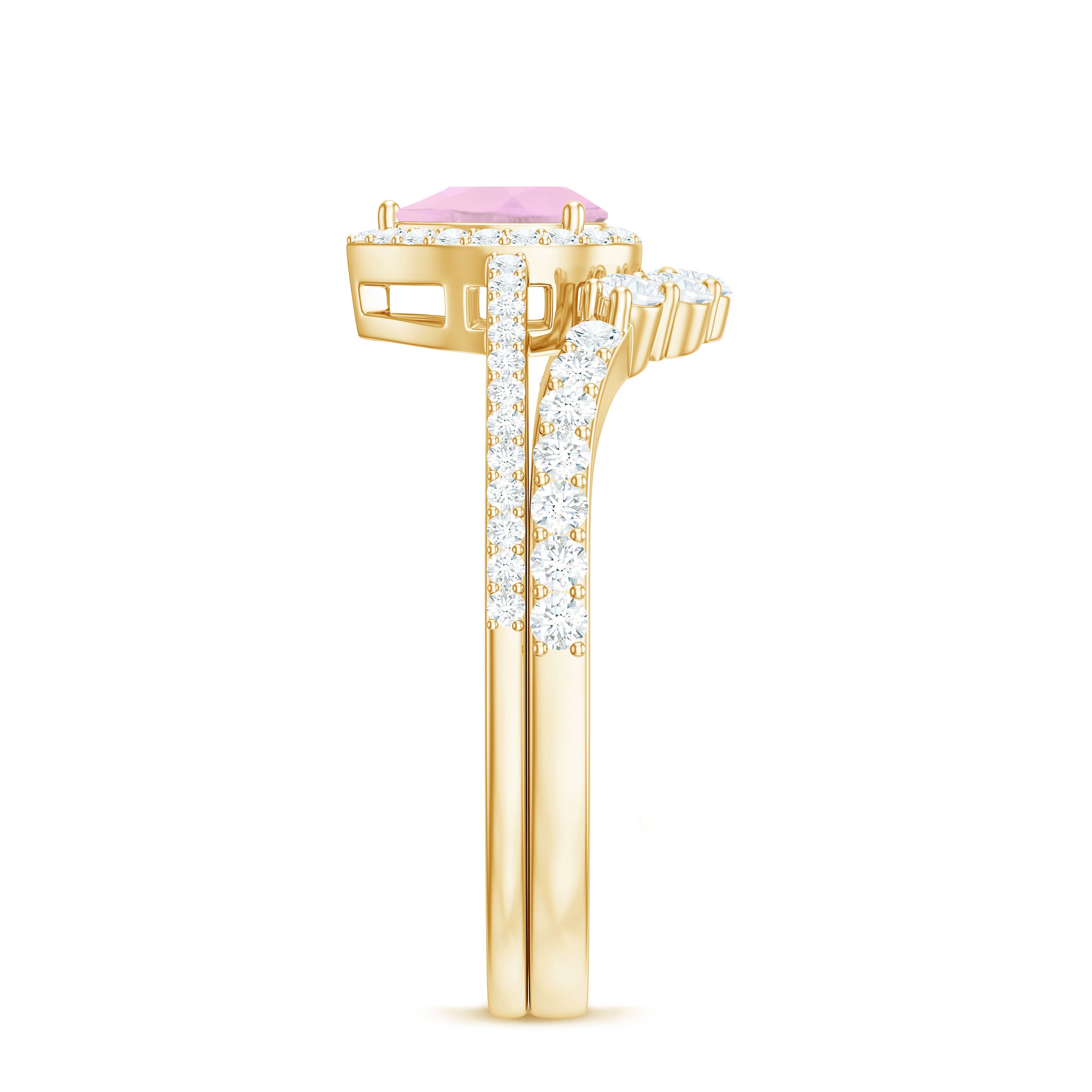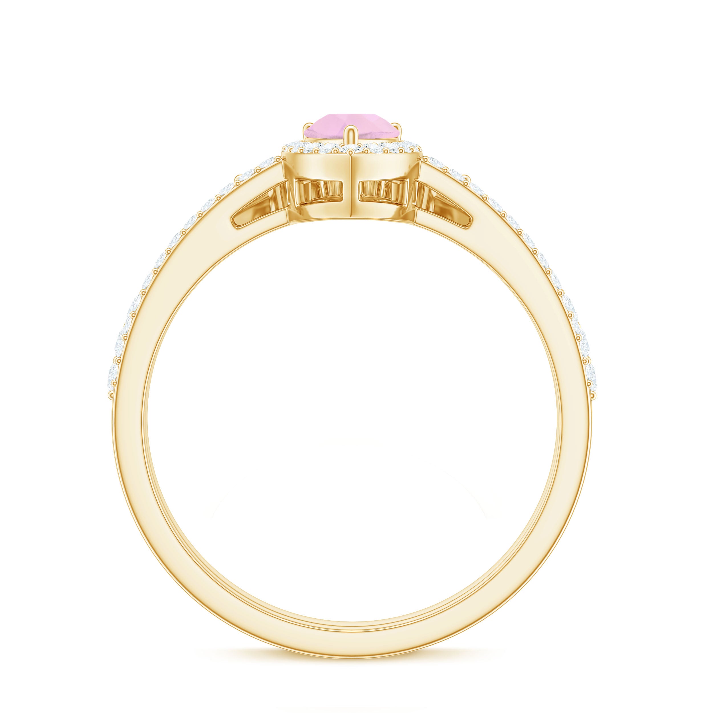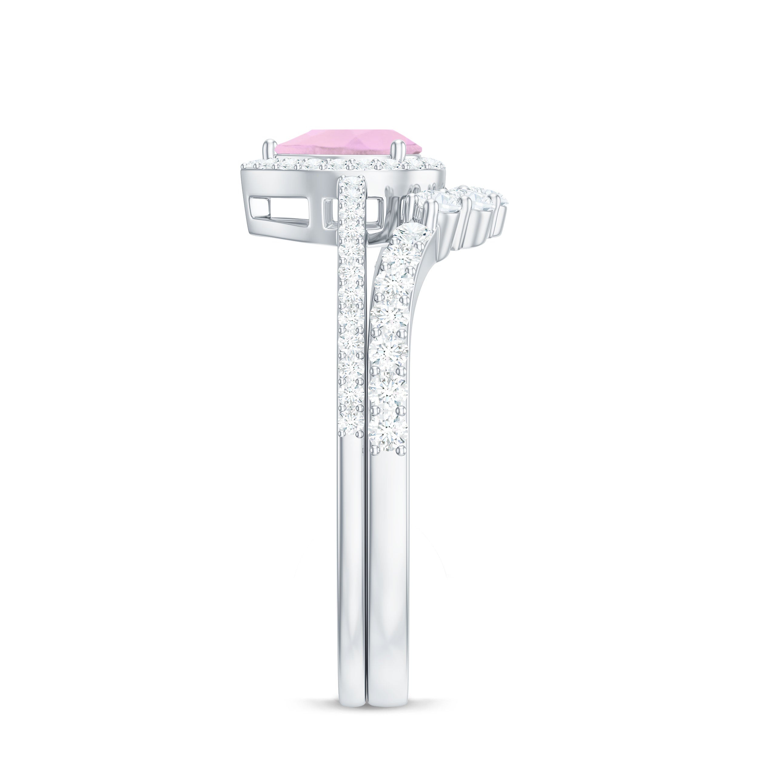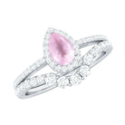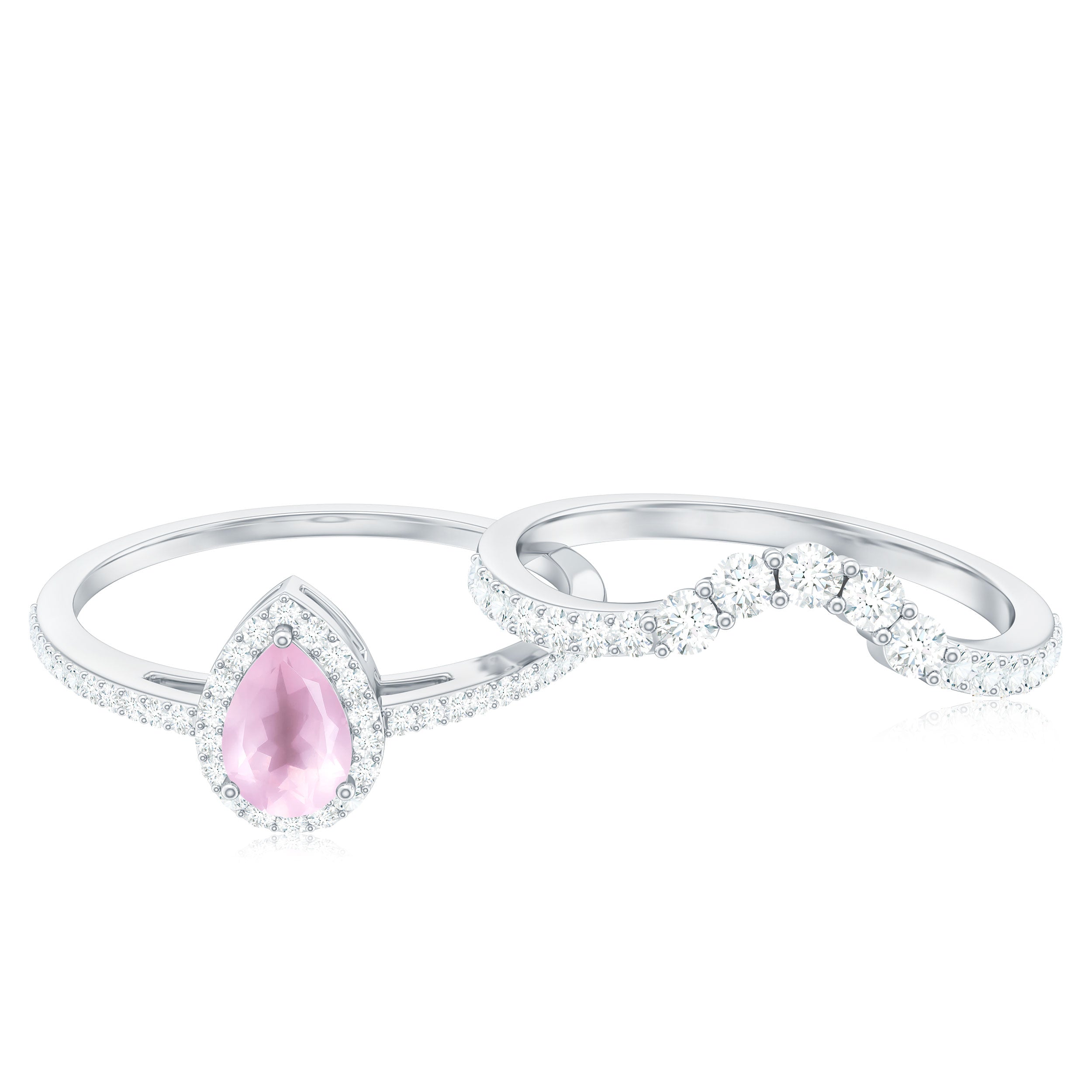 Rose Quartz Designer Teardrop Ring Set with Moissanite Halo