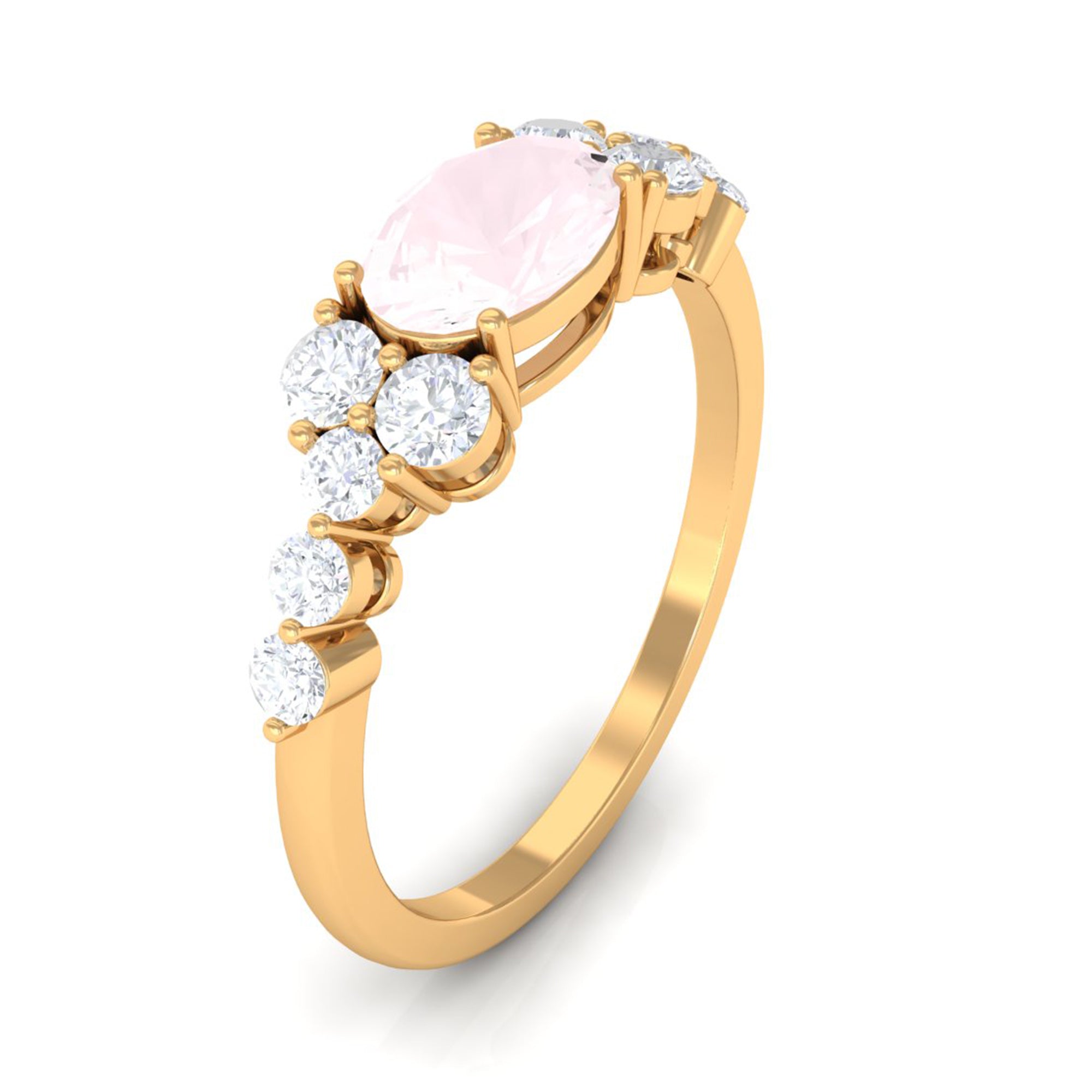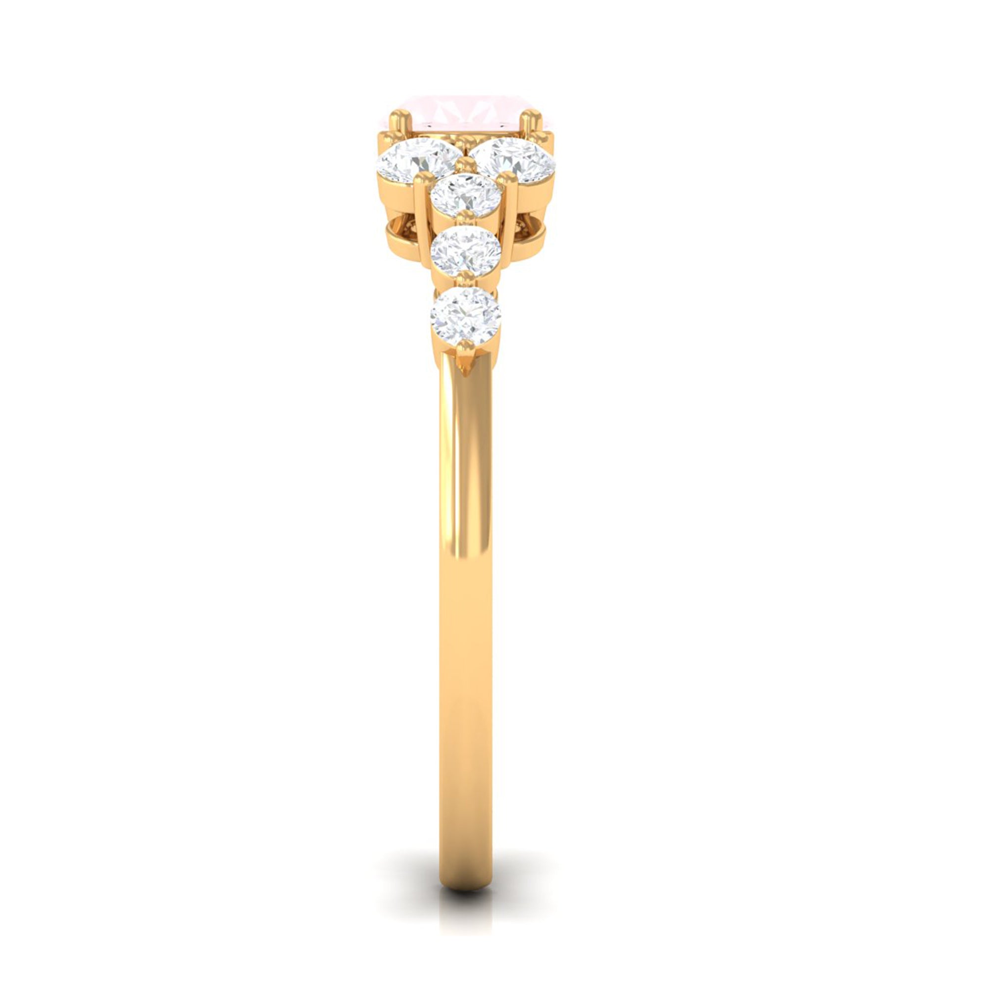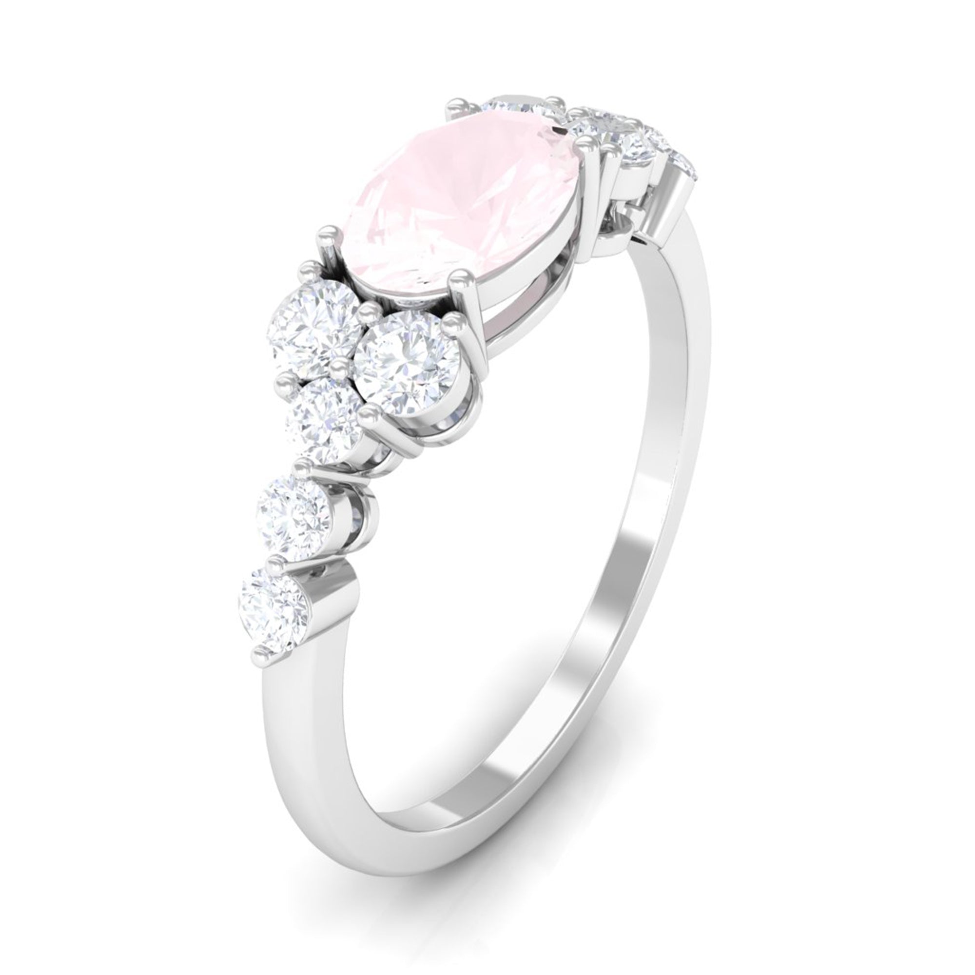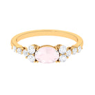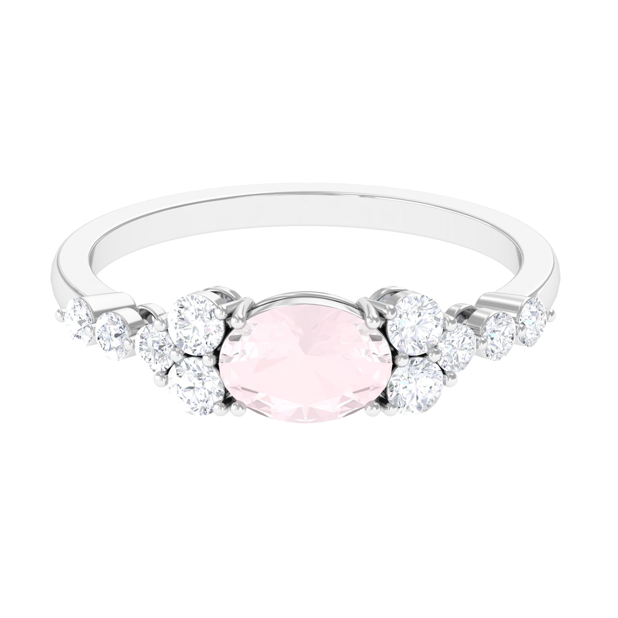 Rose Quartz Solitaire East West Ring with Diamond Side Stones