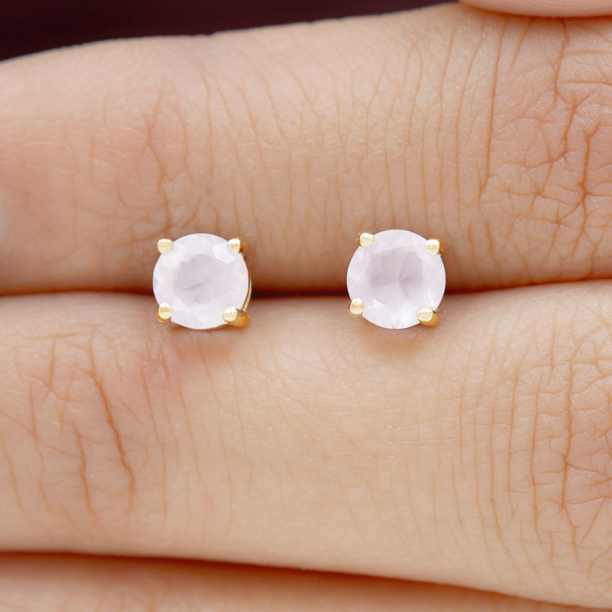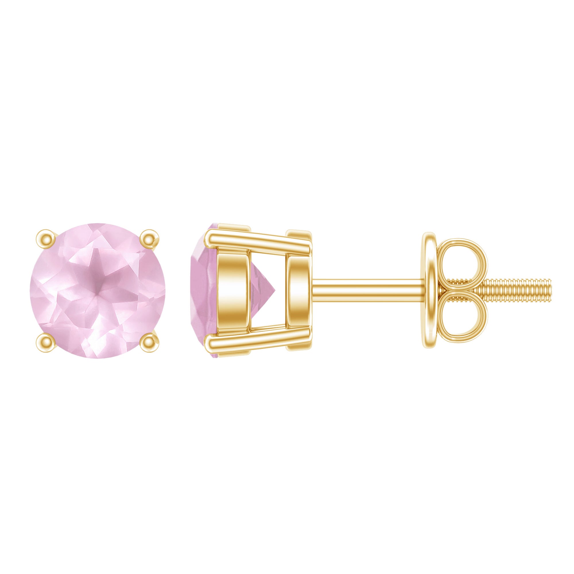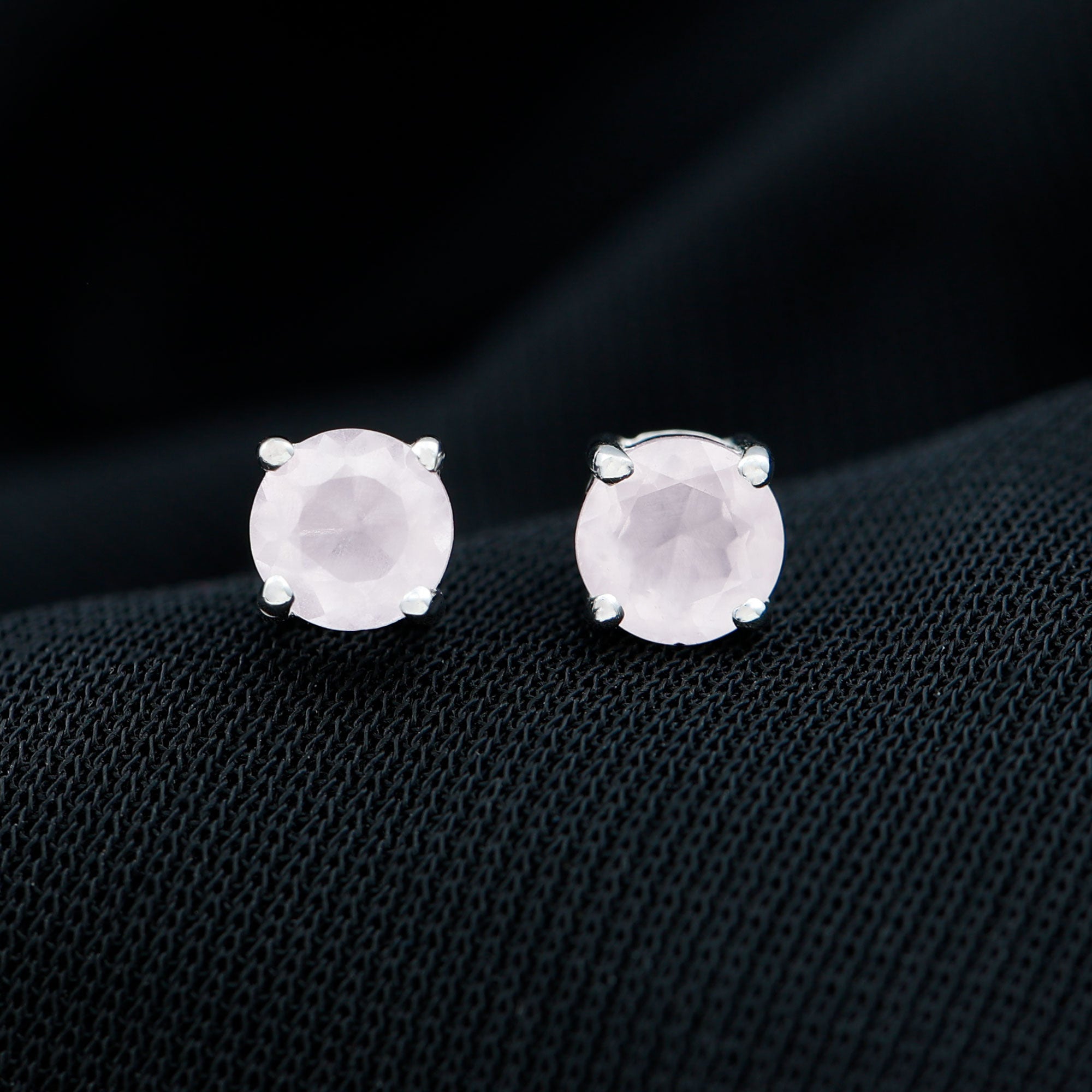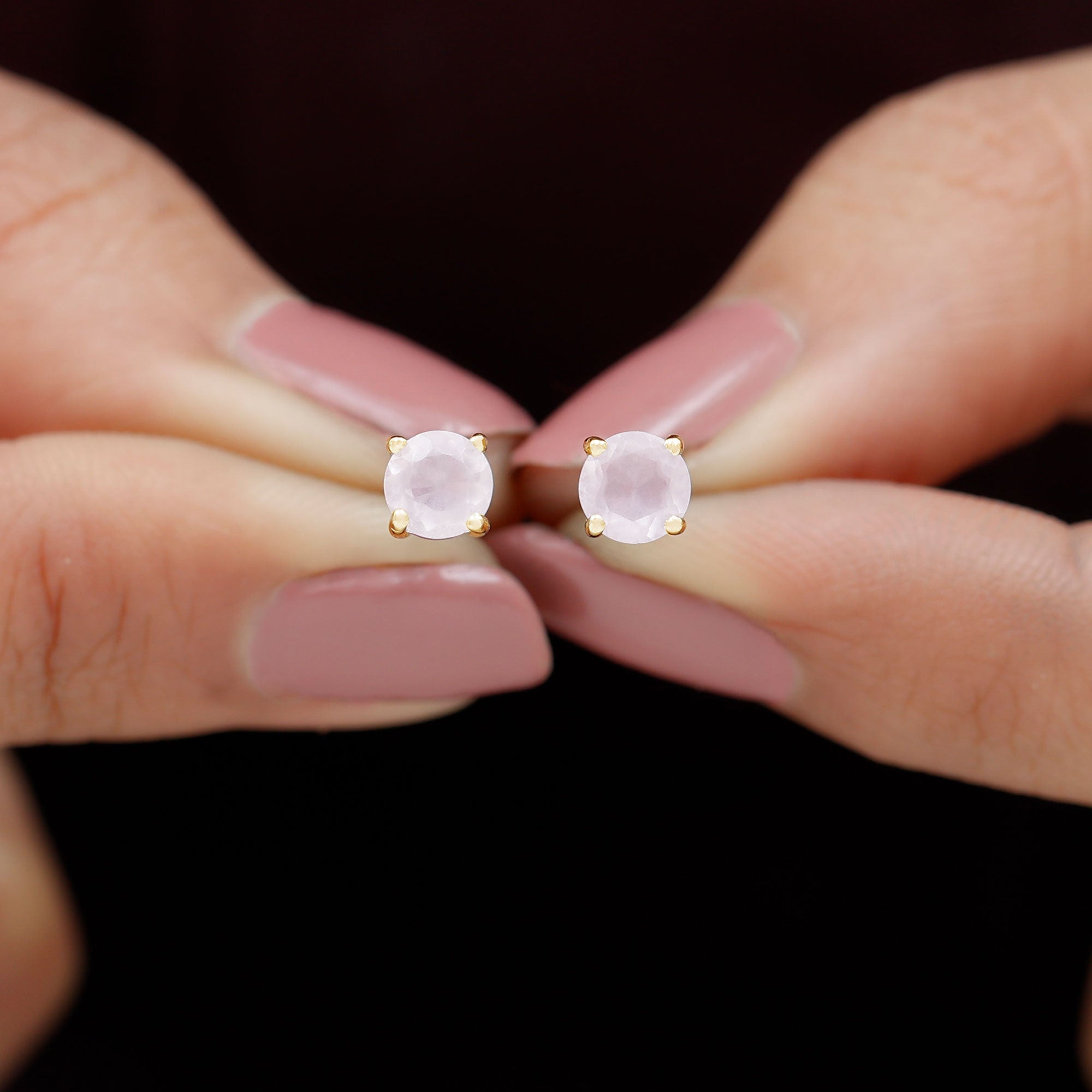 Rose Quartz Solitaire Stud Earrings in 4 Prong Setting