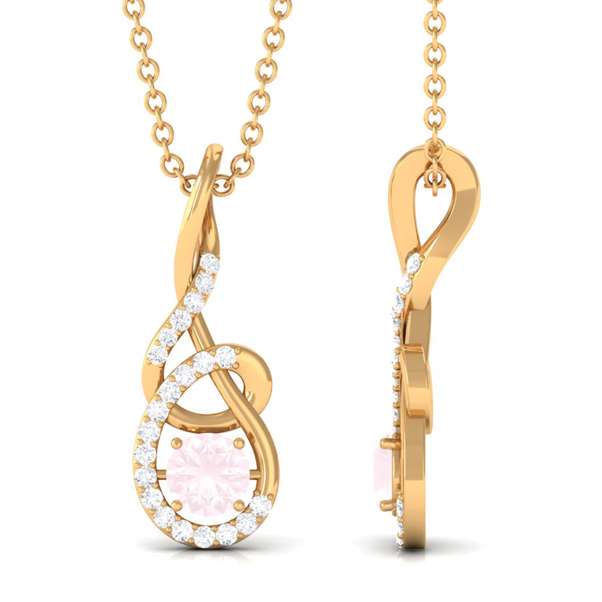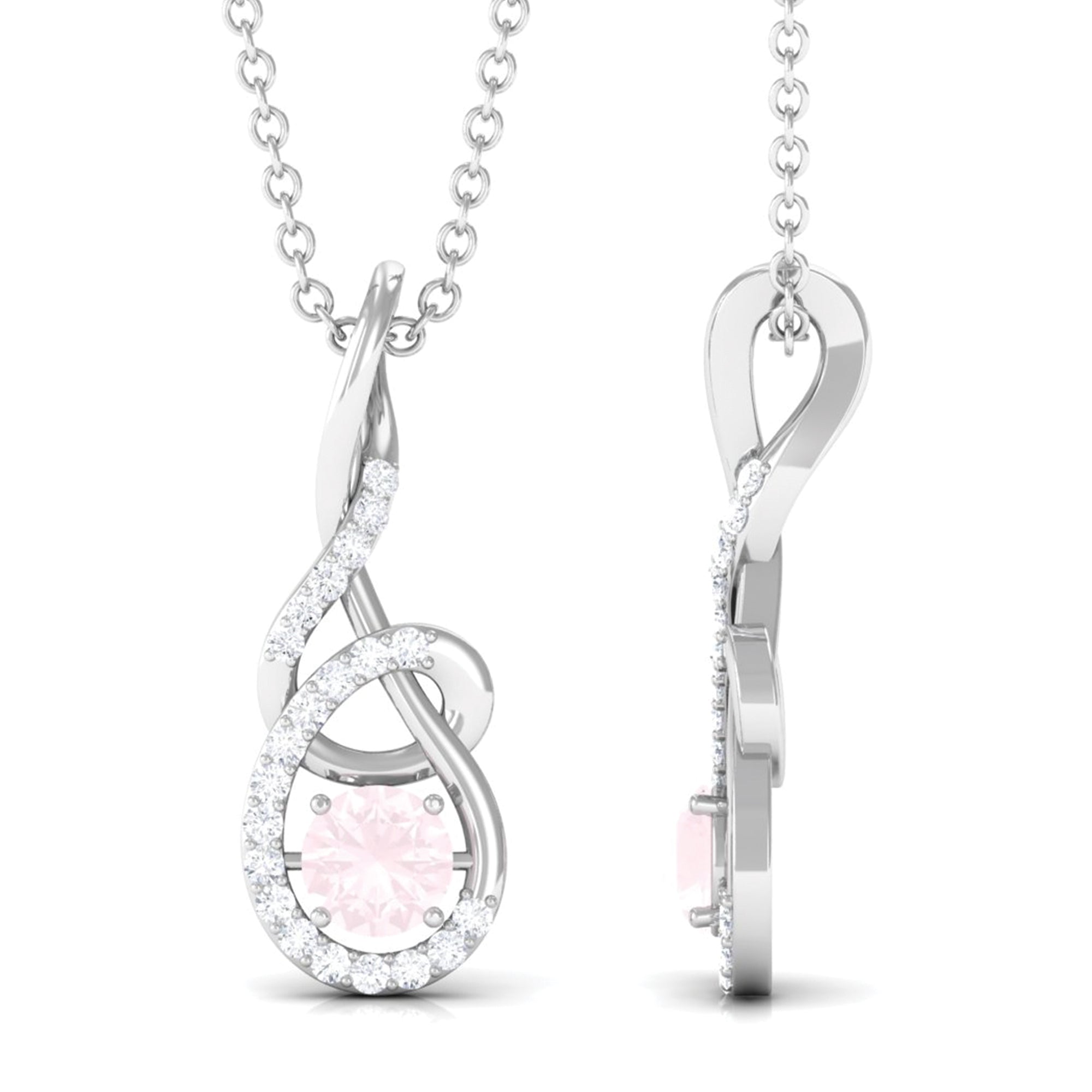Rose Quartz Twisted Pendant with Diamond