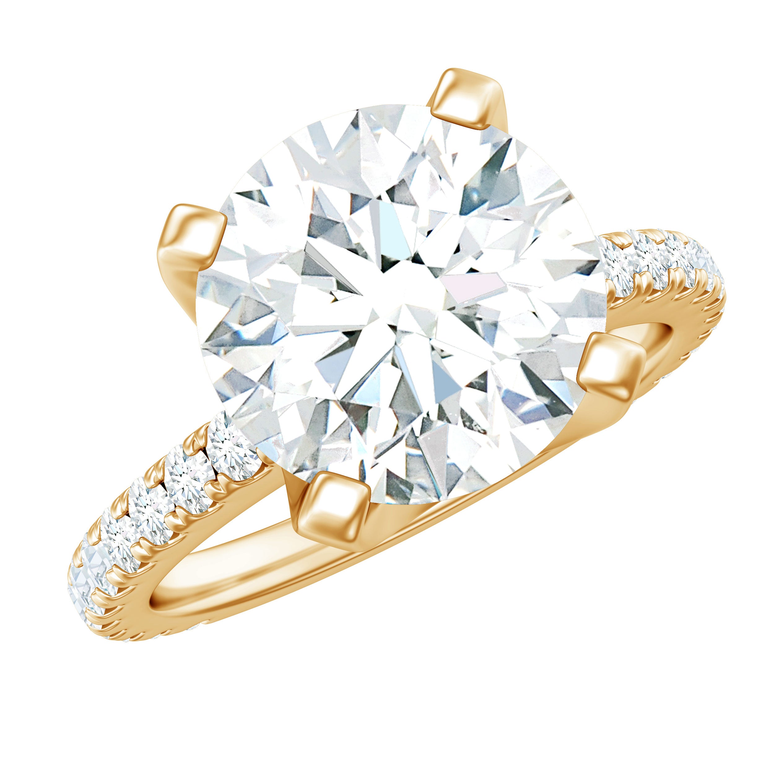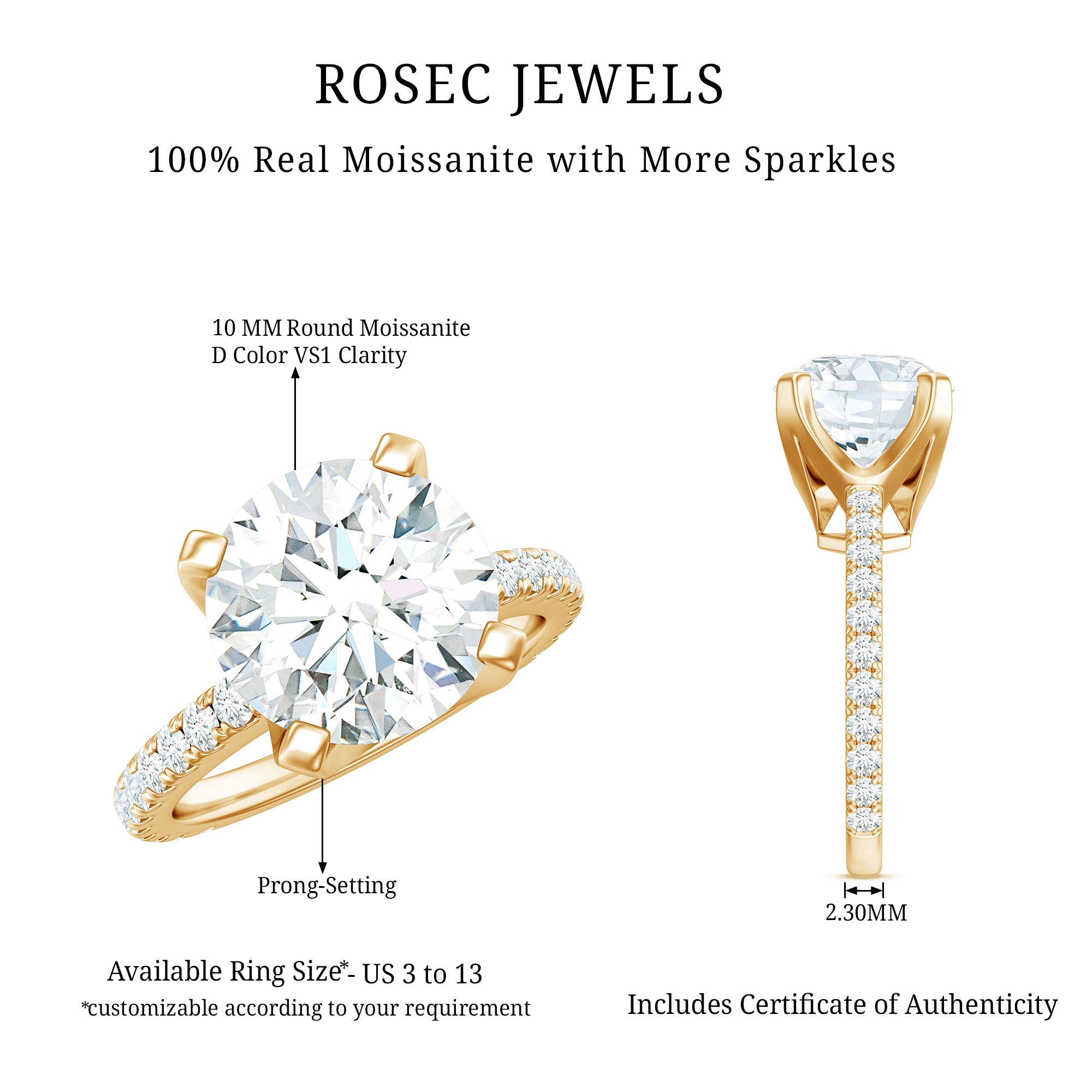 Round 10 MM Moissanite Solitaire Engagement Ring with Side Stones