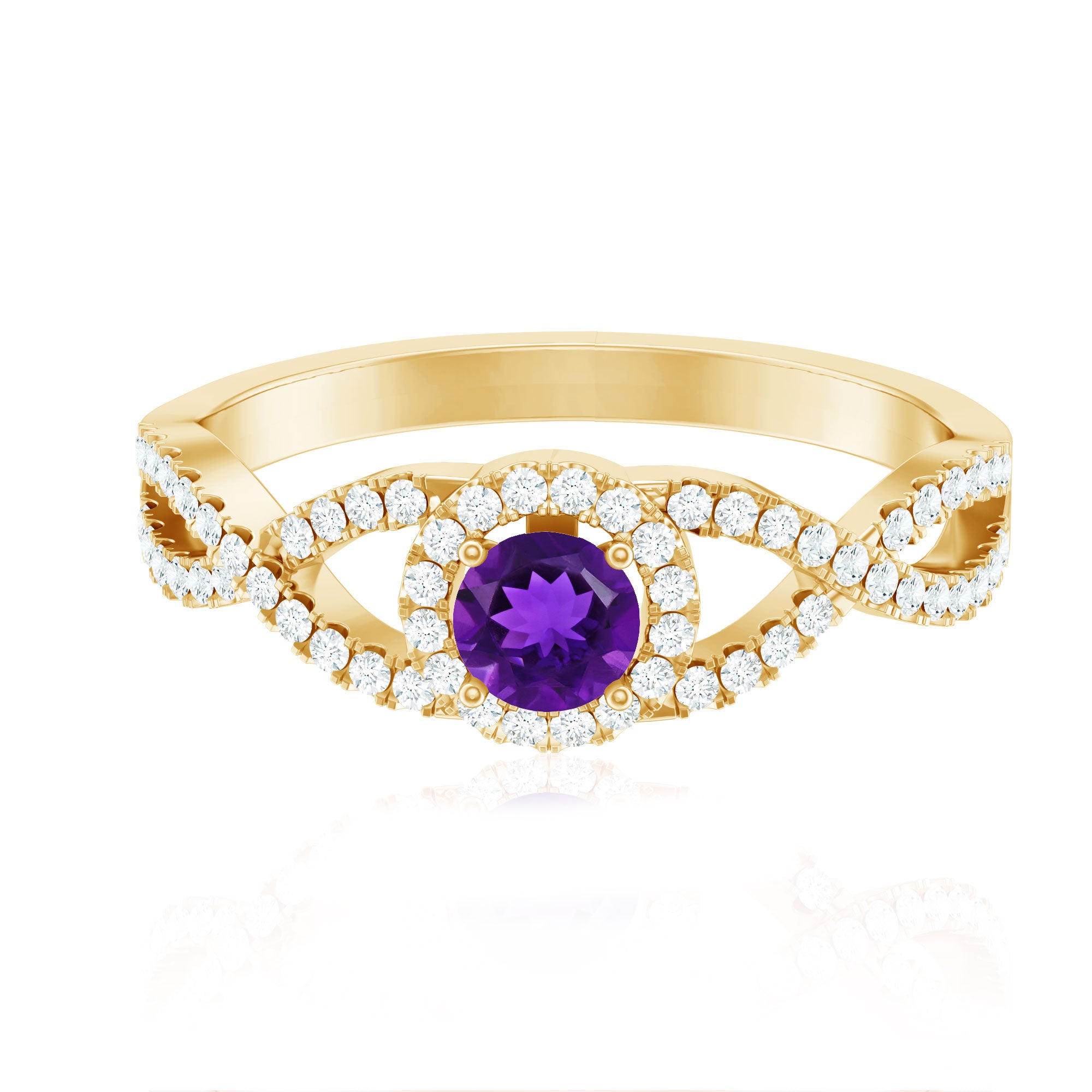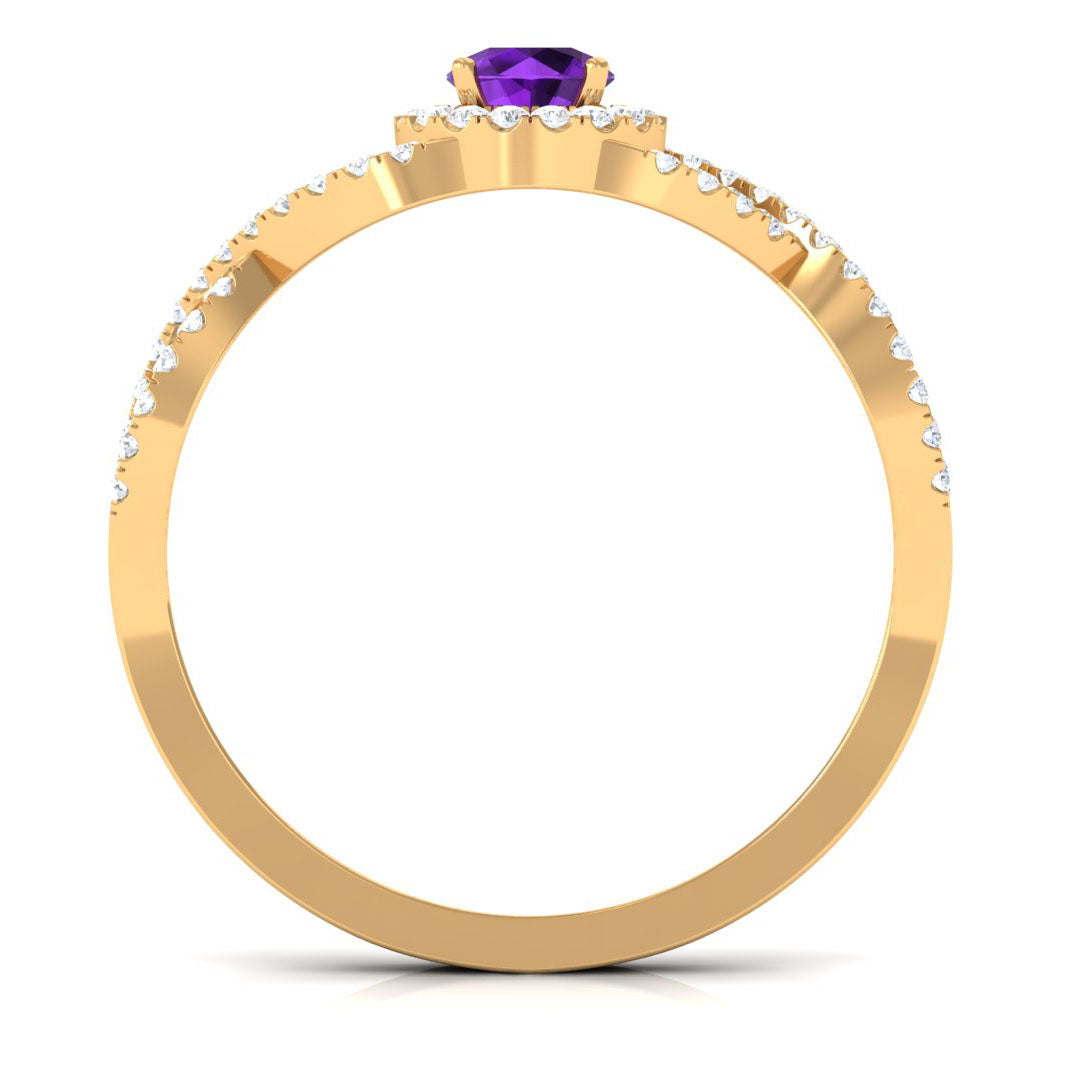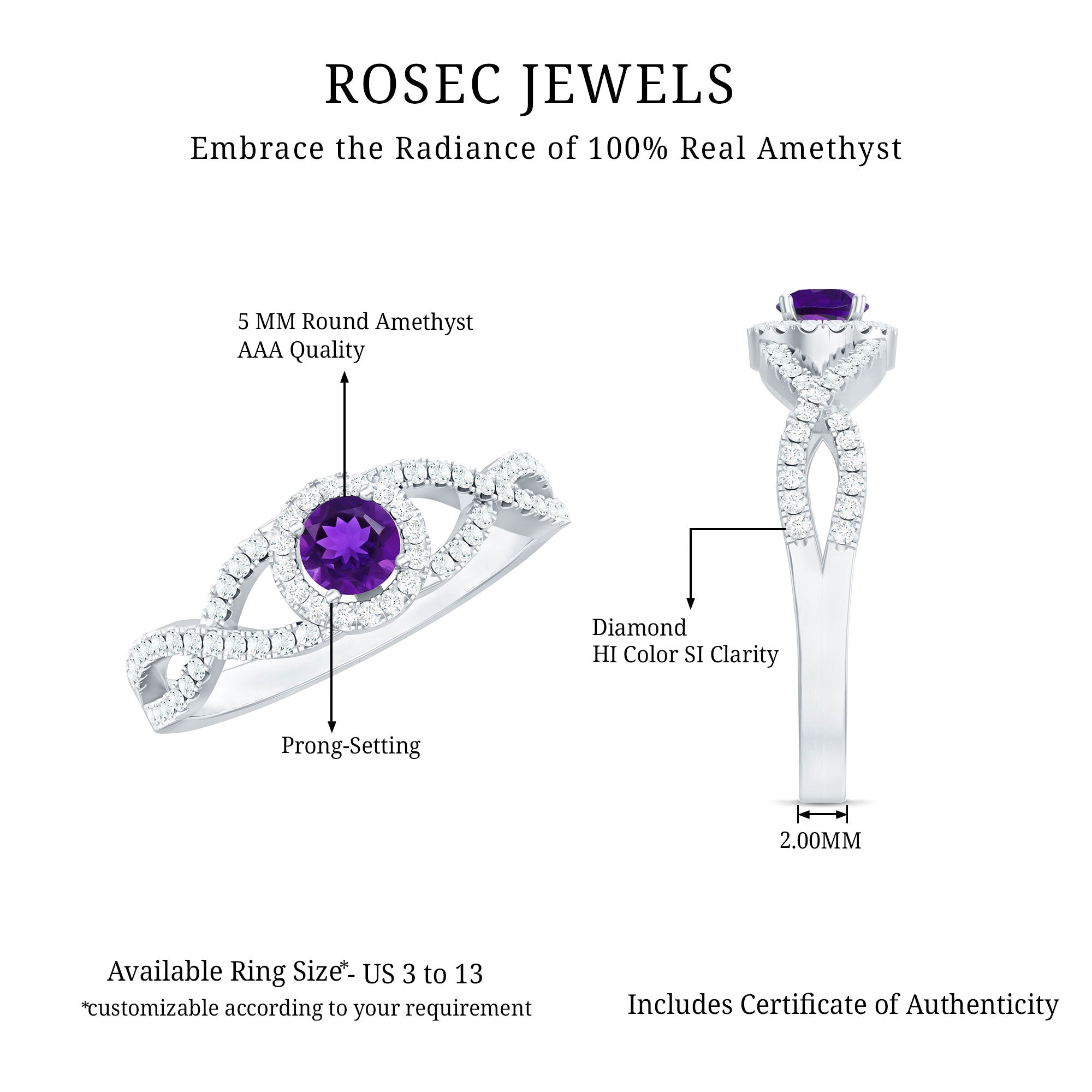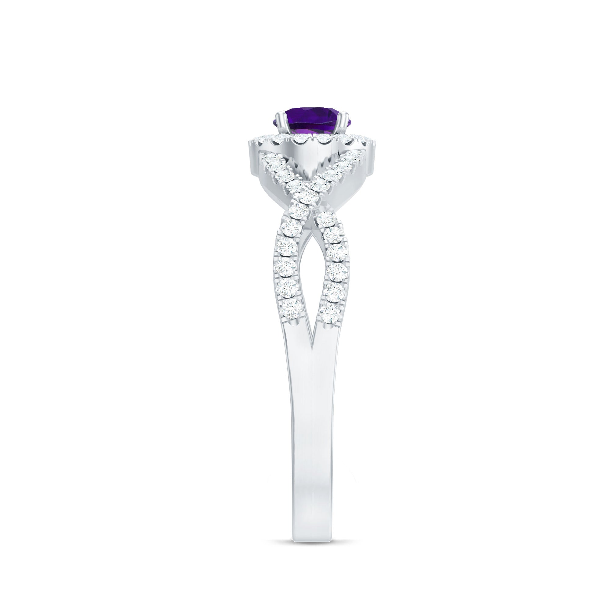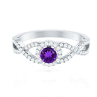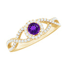 Round Amethyst and Diamond Criss Cross Engagement Ring