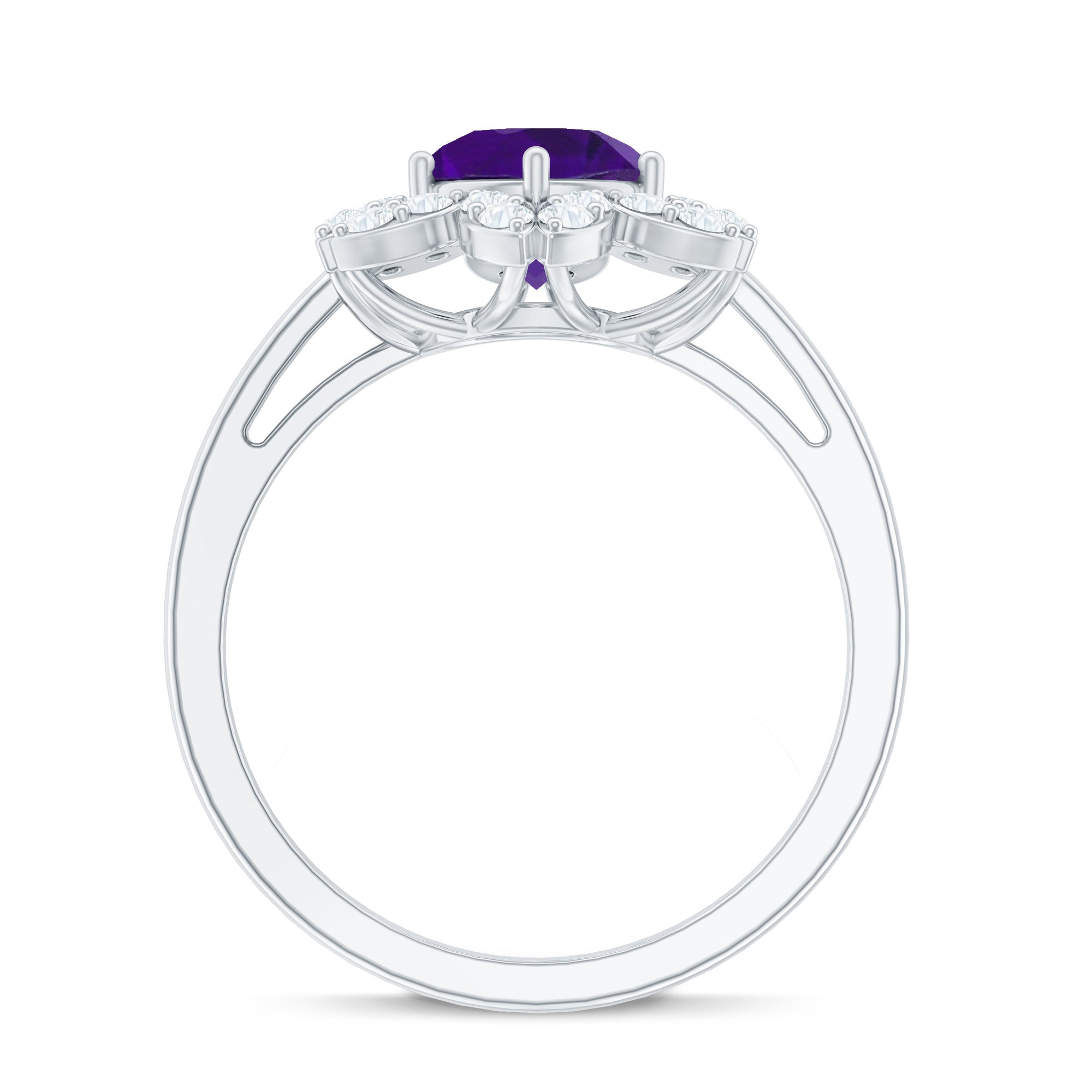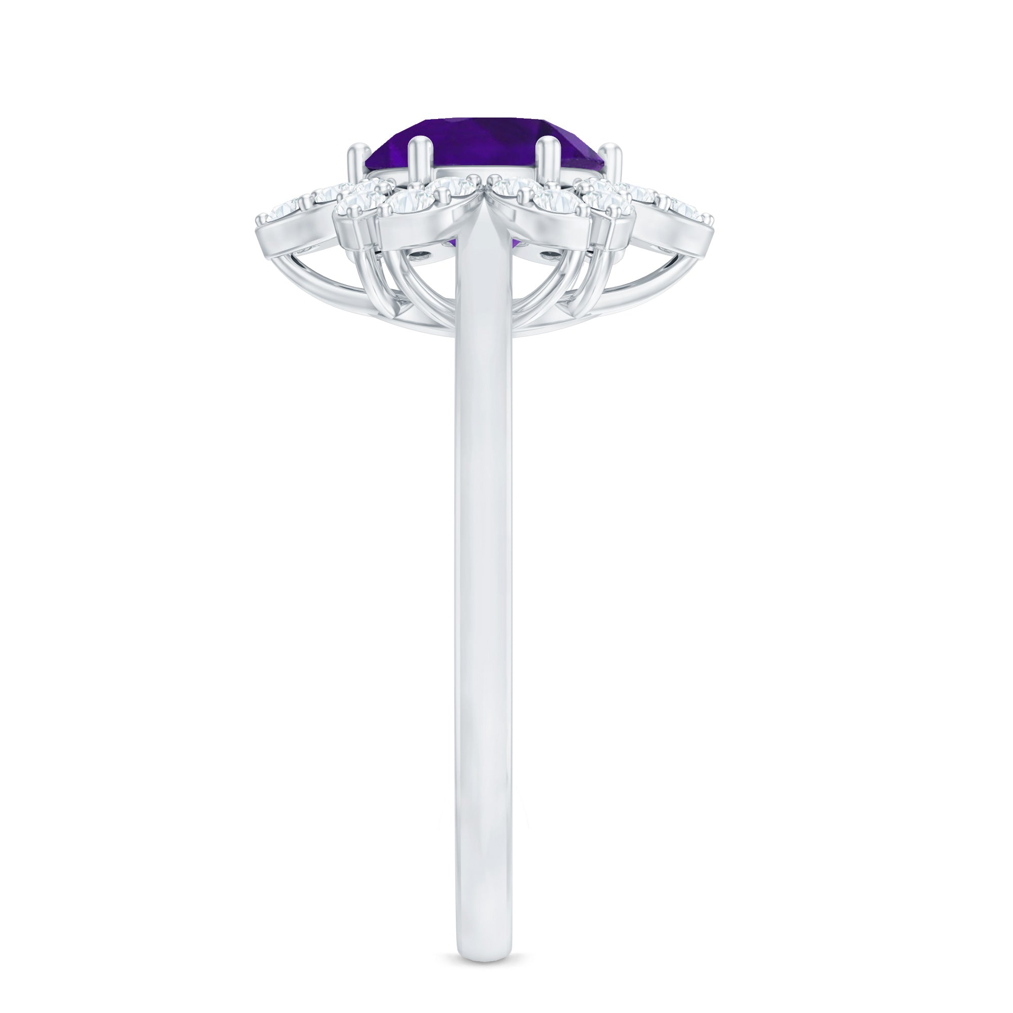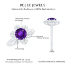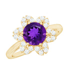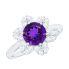 Round Amethyst Flower Engagement Ring with Diamond