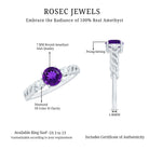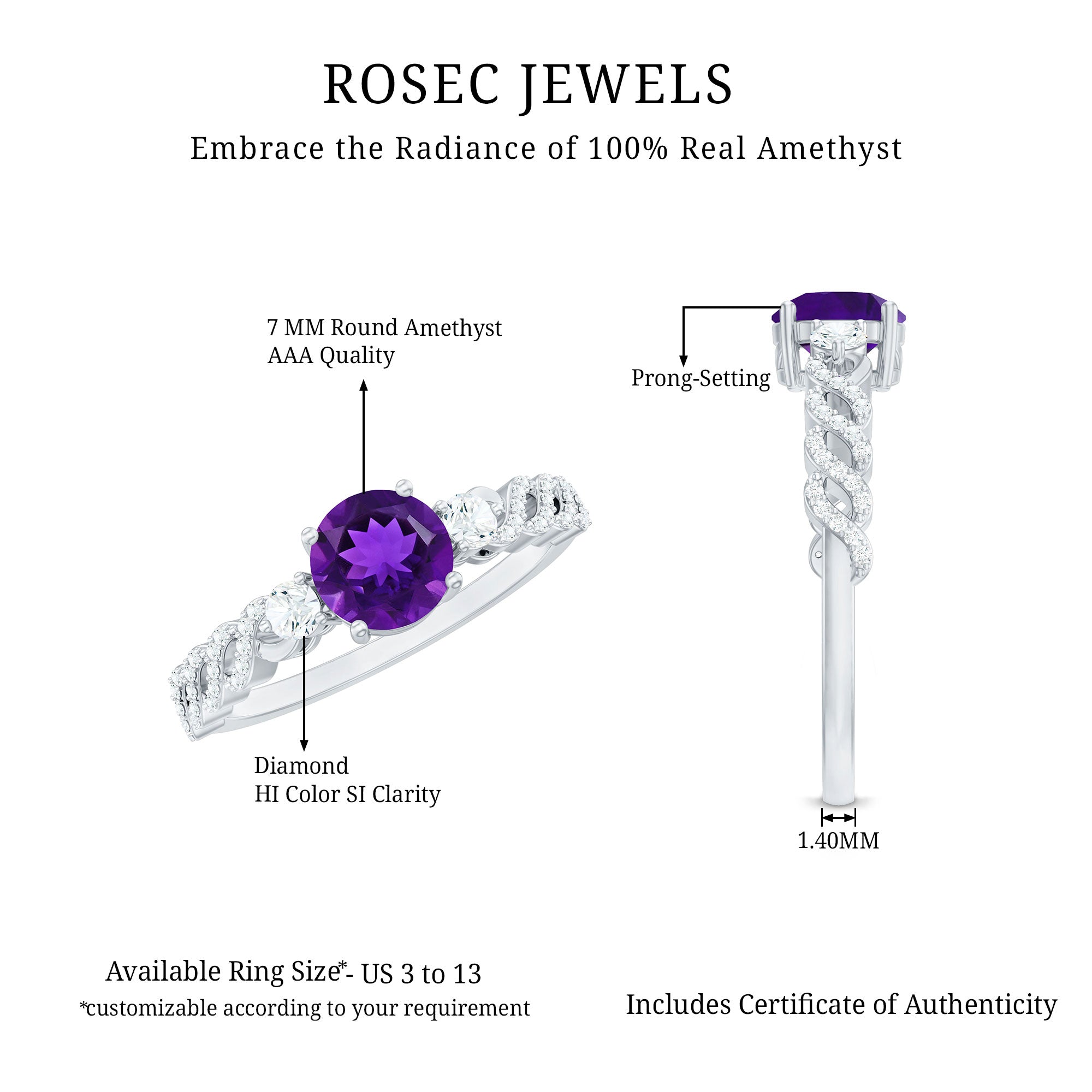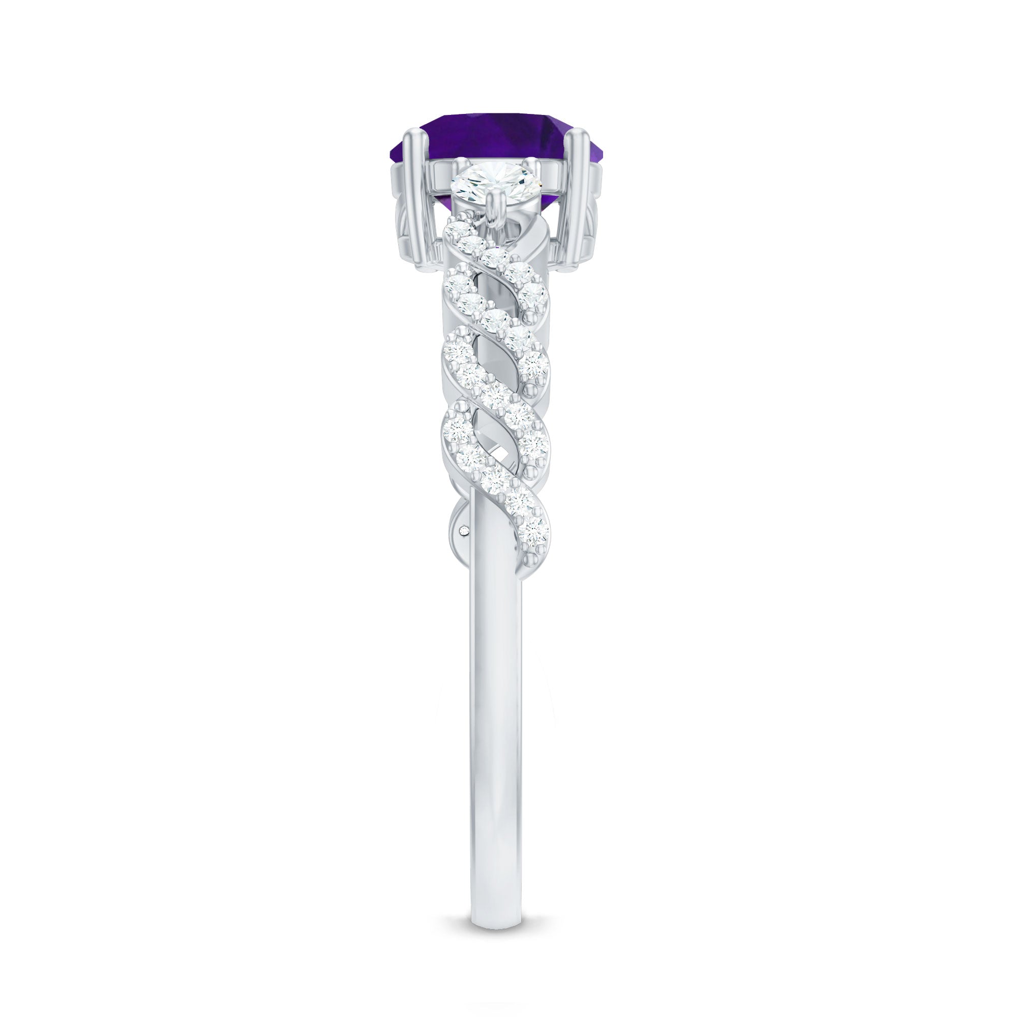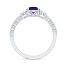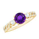 Round Amethyst Solitaire Ring with Diamond Side Stones