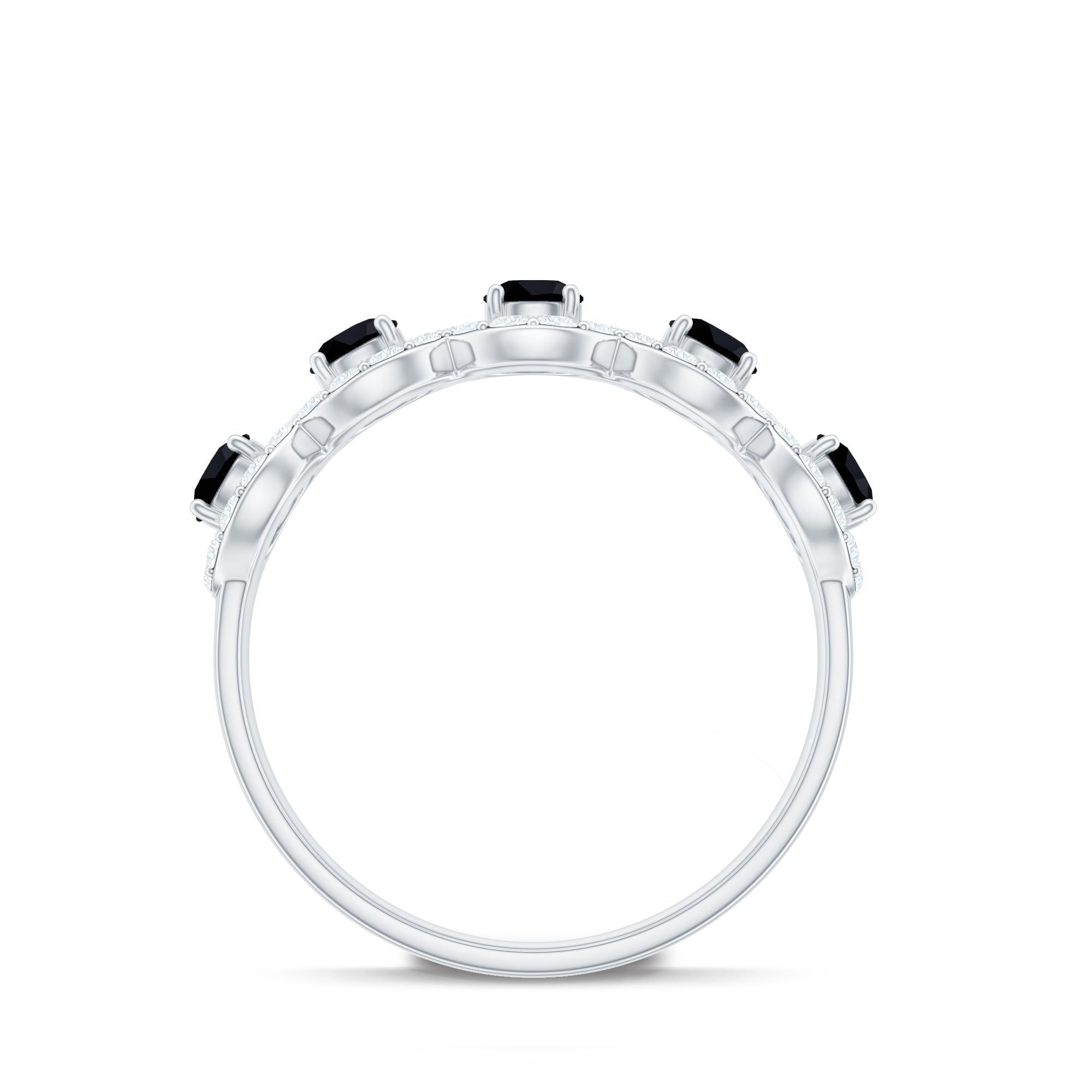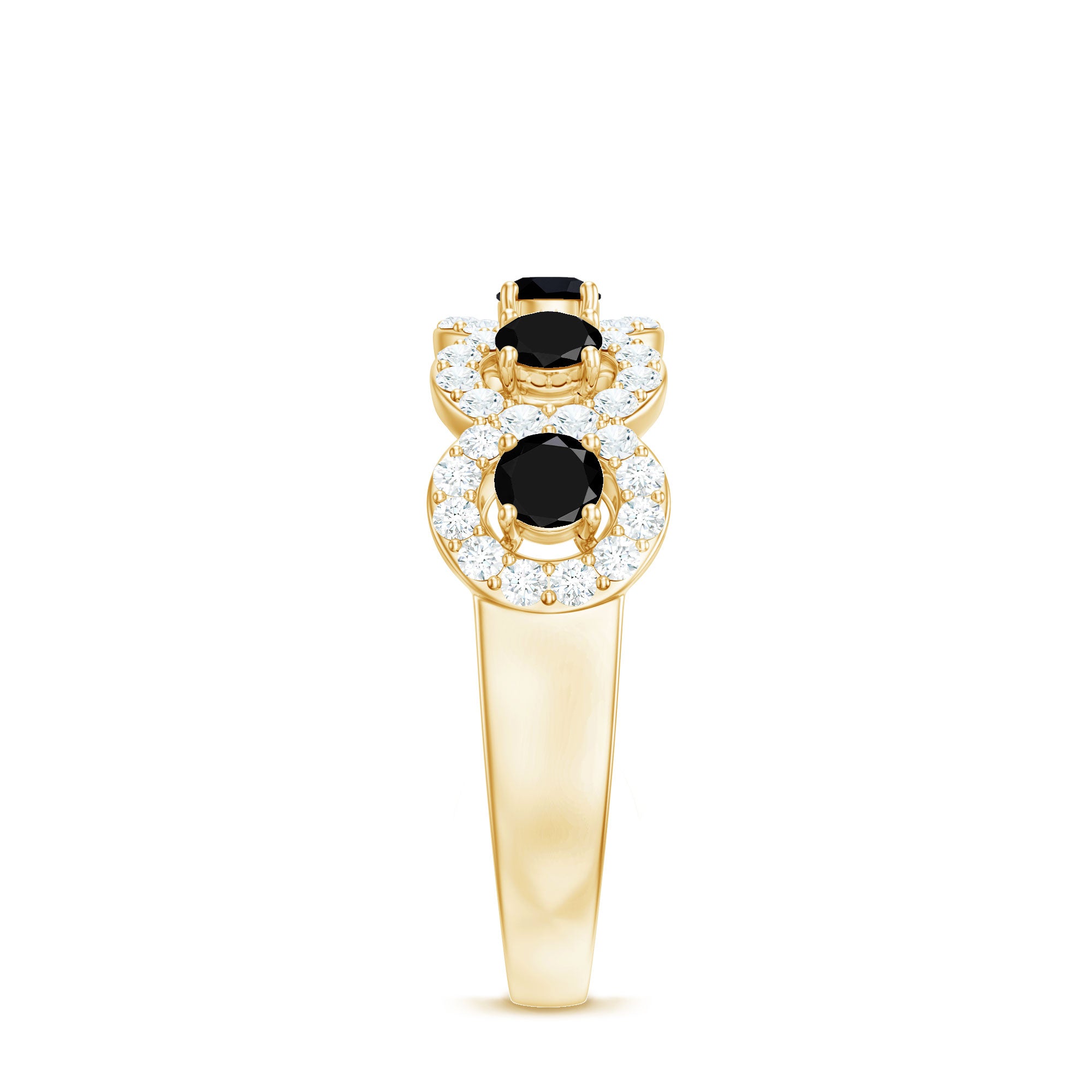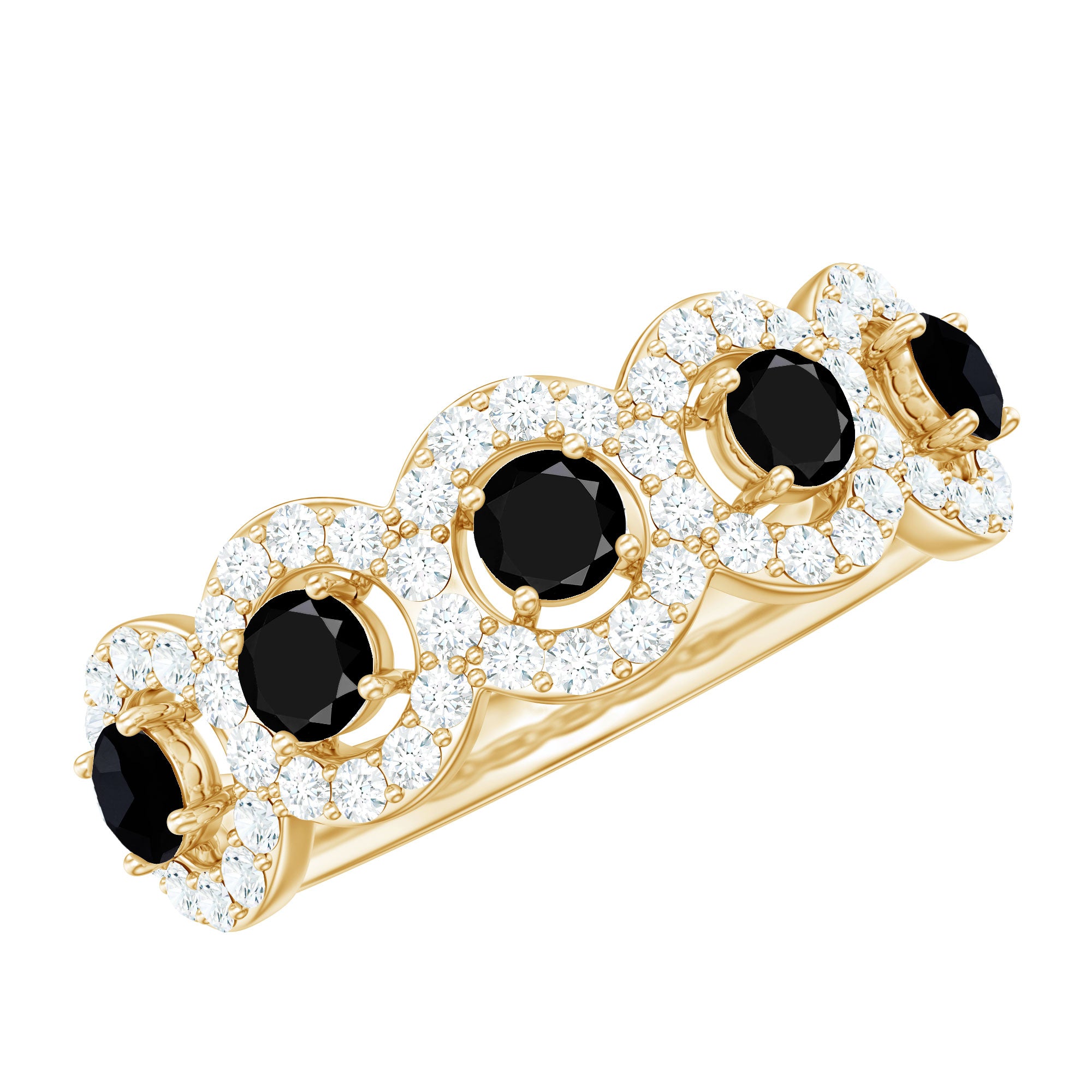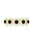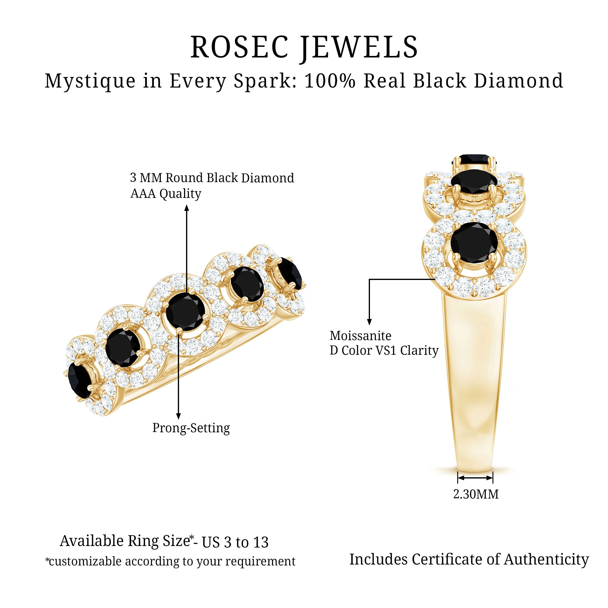Round Black Diamond Classic Halo Half Eternity Band Ring with Moissanite