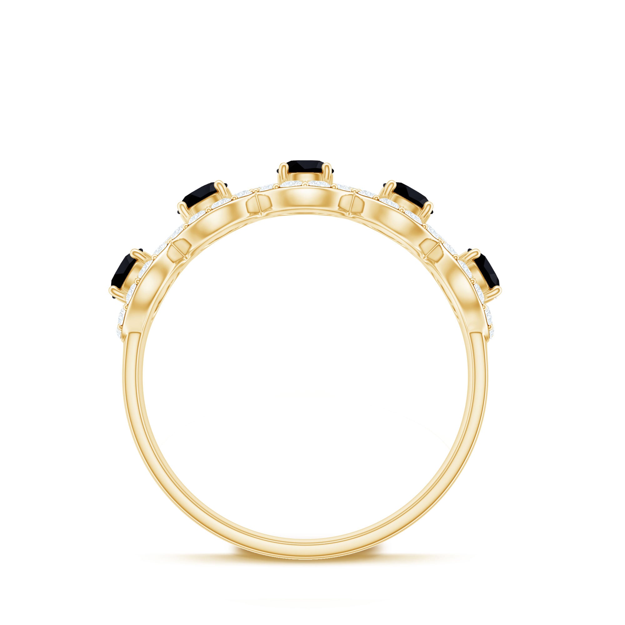 Commemorate a milestone in your life with this Classic Band Ring. This Anniversary Ring for Women sparkles with a Round Cut Black Diamond in a Prong Setting, surrounded by a Moissanite Halo. Made from Gold, this ring offers a luxurious touch, making it a beautiful choice for your beloved.